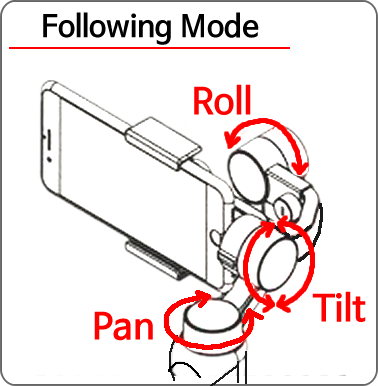짐벌 헤드가 오로지 정면으로만 향한다. 이 경우는 일반 삼각대나 셀카봉이라고 생각하면 된다. 손떨림을 잘 잡아준다.