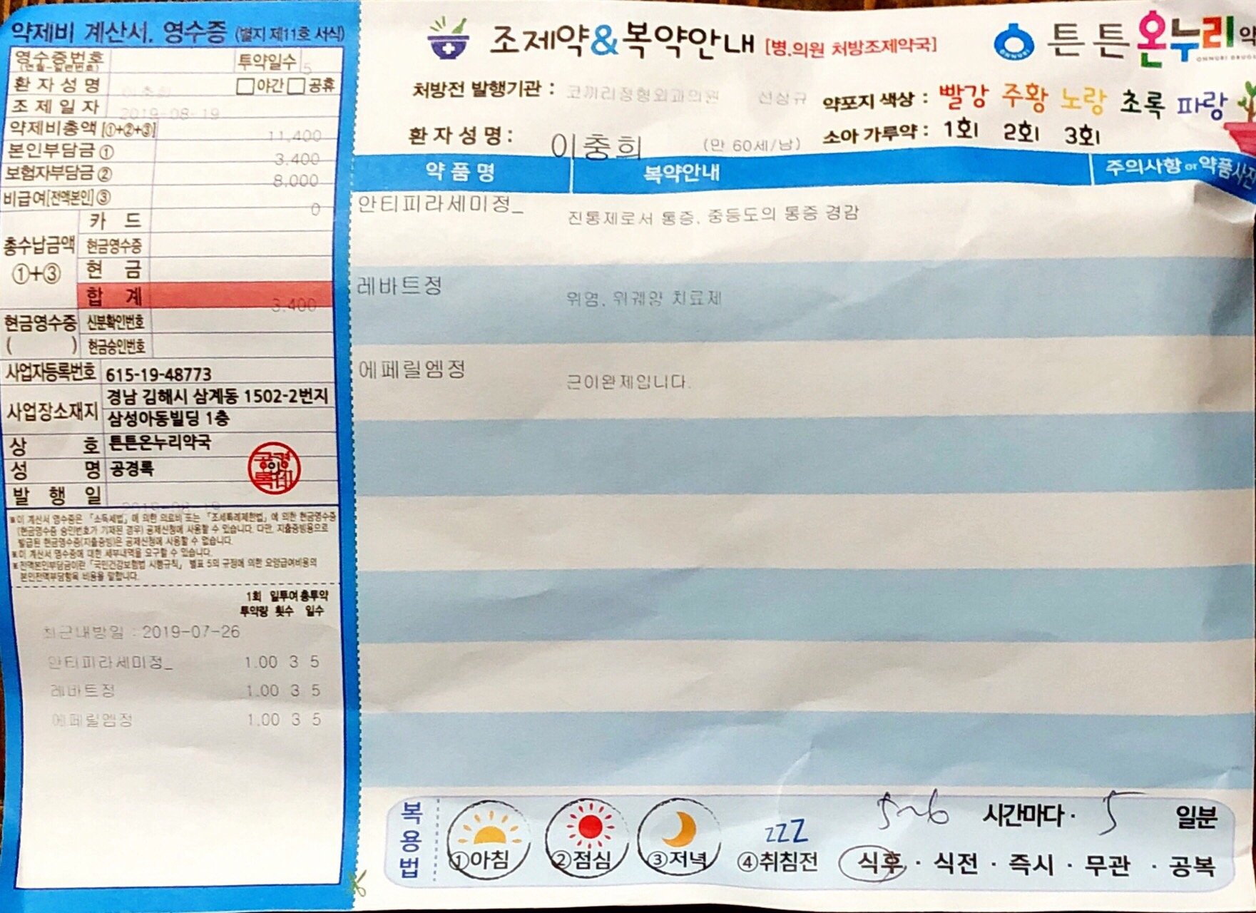 7월초부터 무려 두 달 가까이 DNA 주사니 근육재생주사니 하면서 팔뚝을 360도 돌아가며 여러 수십 대 맞은 근육통은 끝내 낫지 았았다. 오진에다가 대충 조제한 약이었으니 효과가 없기는 마찬가지였다.