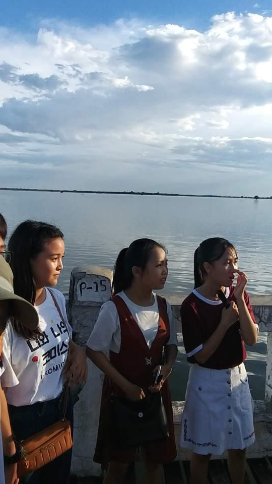 우베인 다리를 건너다가 '너와 나의 코미스'라는 한글 글귀를 보고 말문을 틔운 미얀마 아가씨들.
