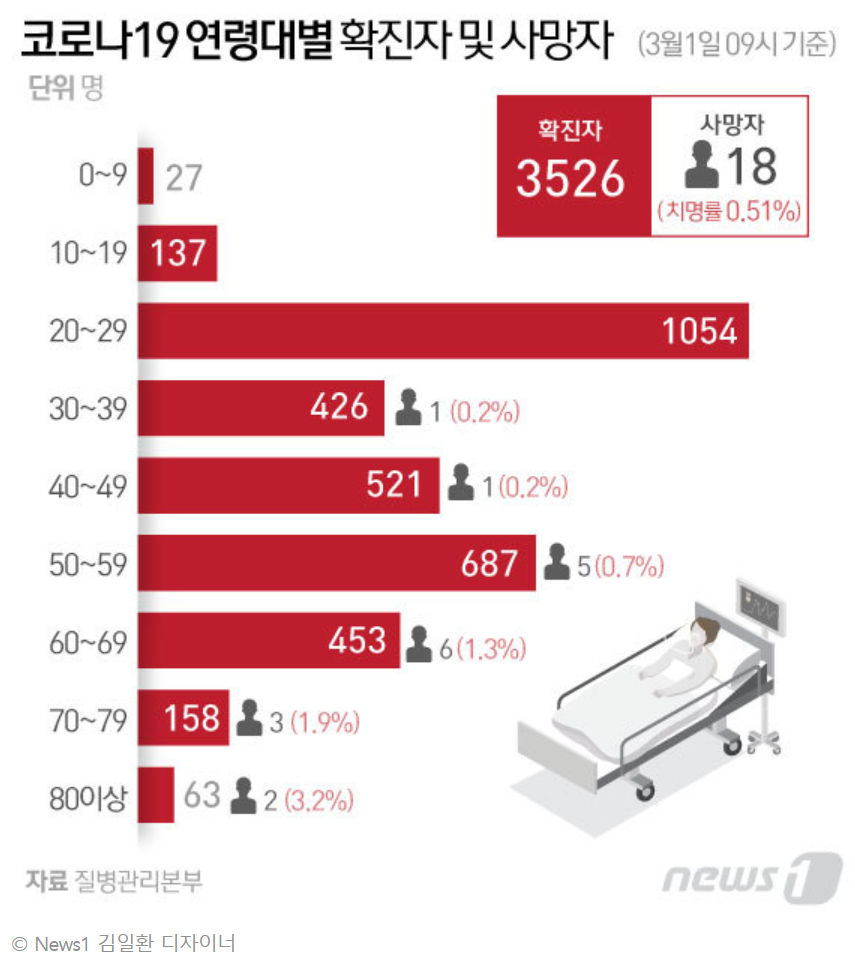 두 번째 스크랩 자료는 확진자의 연령별 분포이다.
