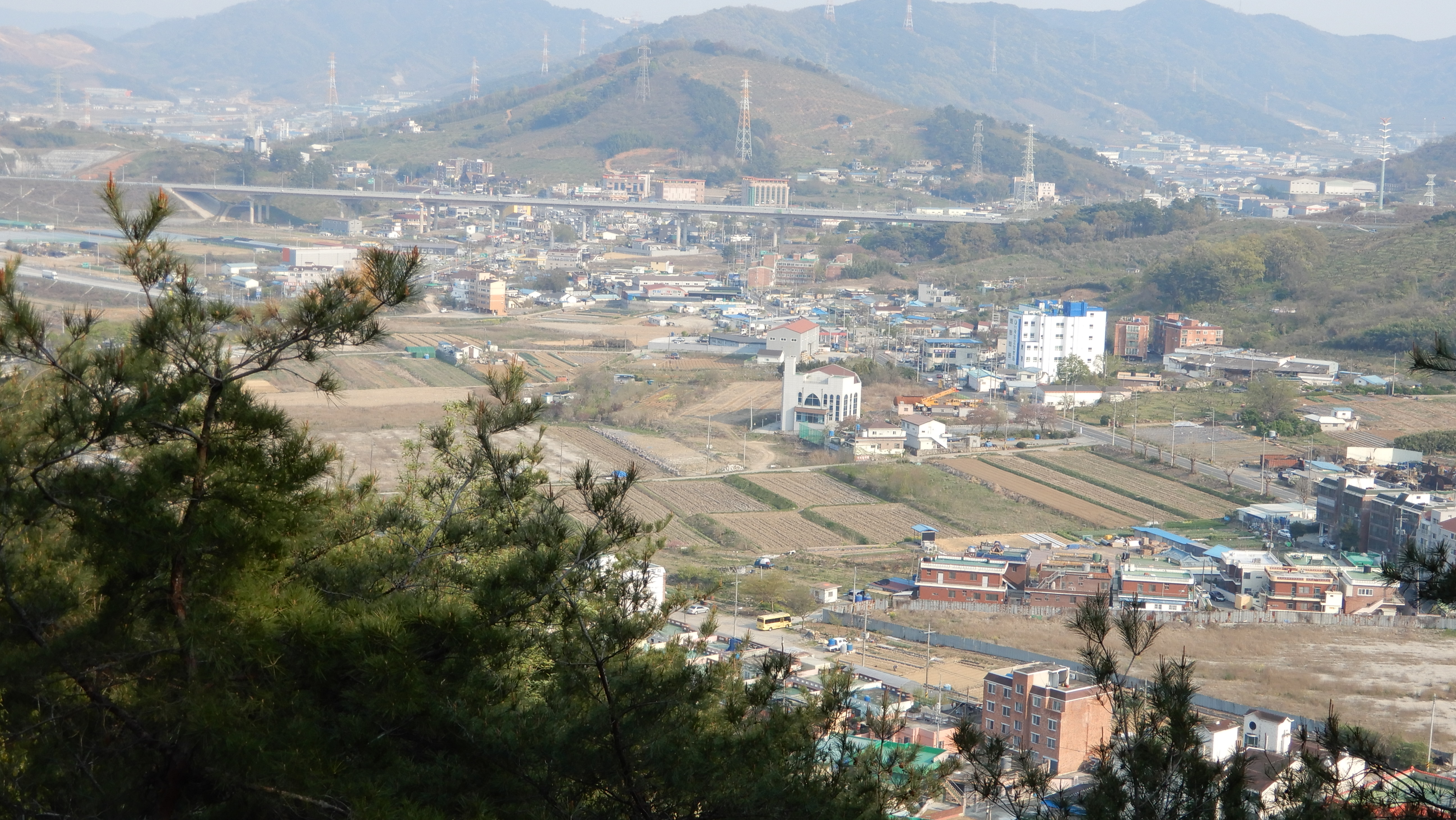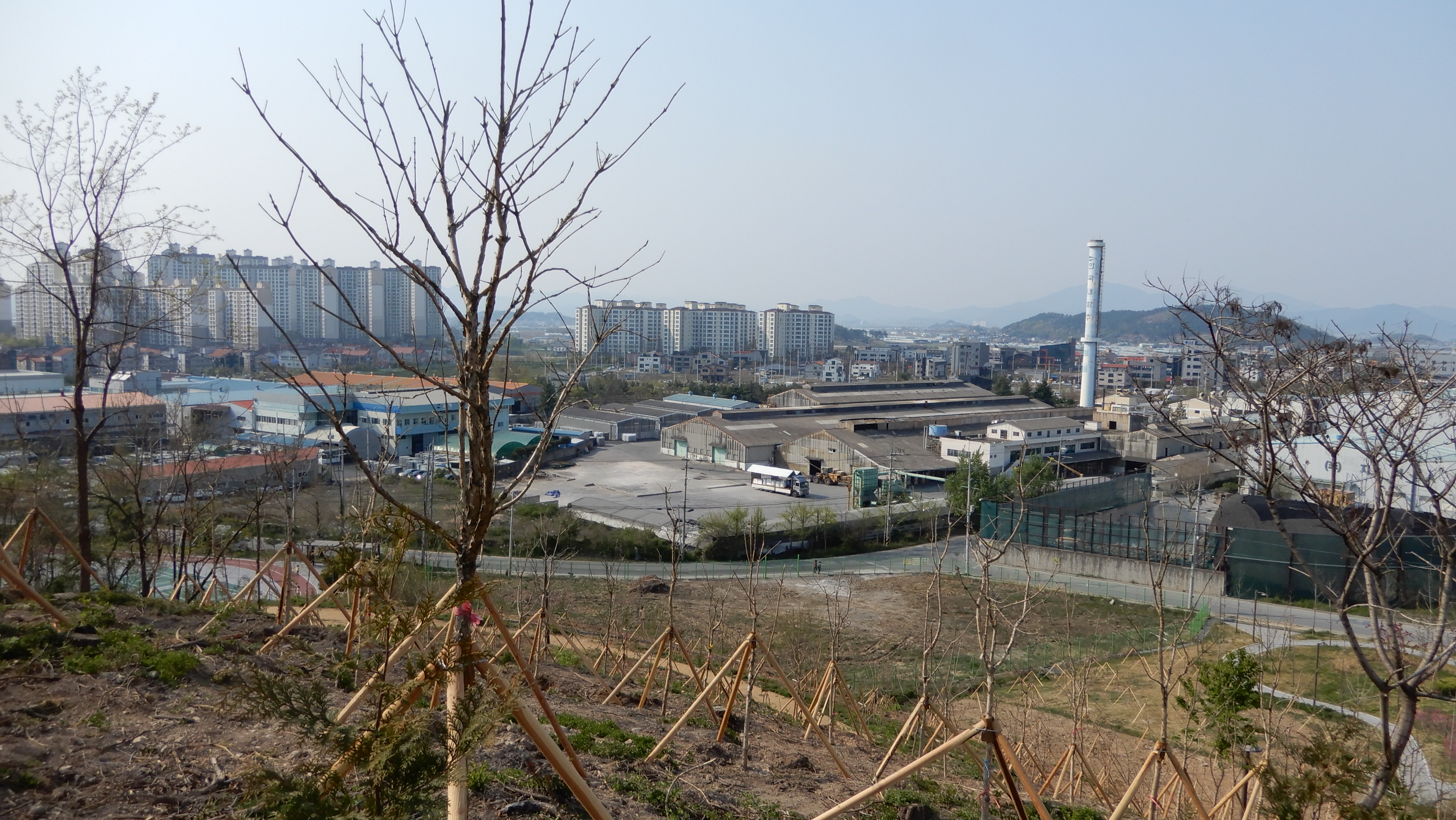 공원에 올라봤다. 본산공단이 한눈에 들어오고, 신도시가 새로 조림한 나무들 사이로 보인다.