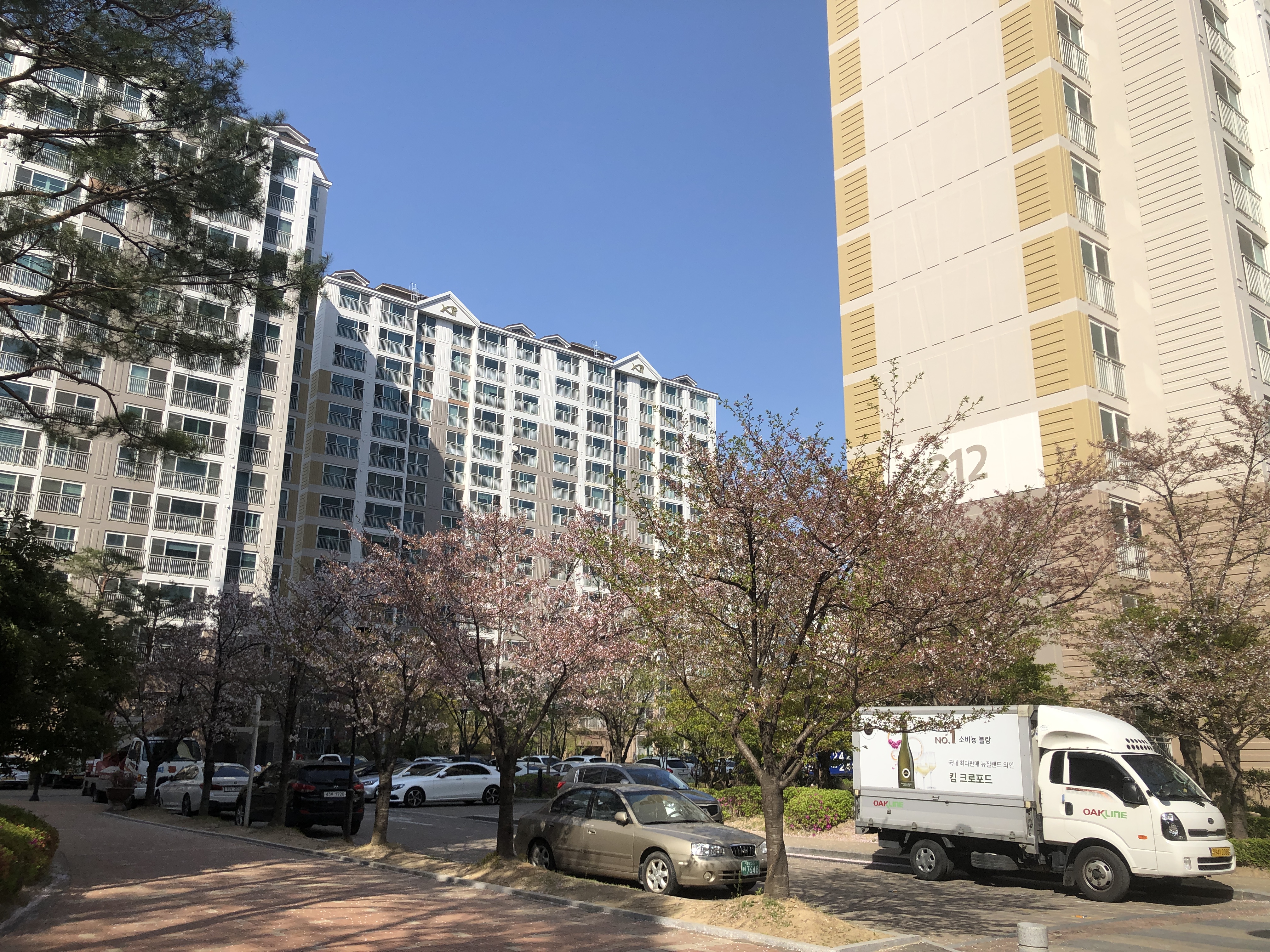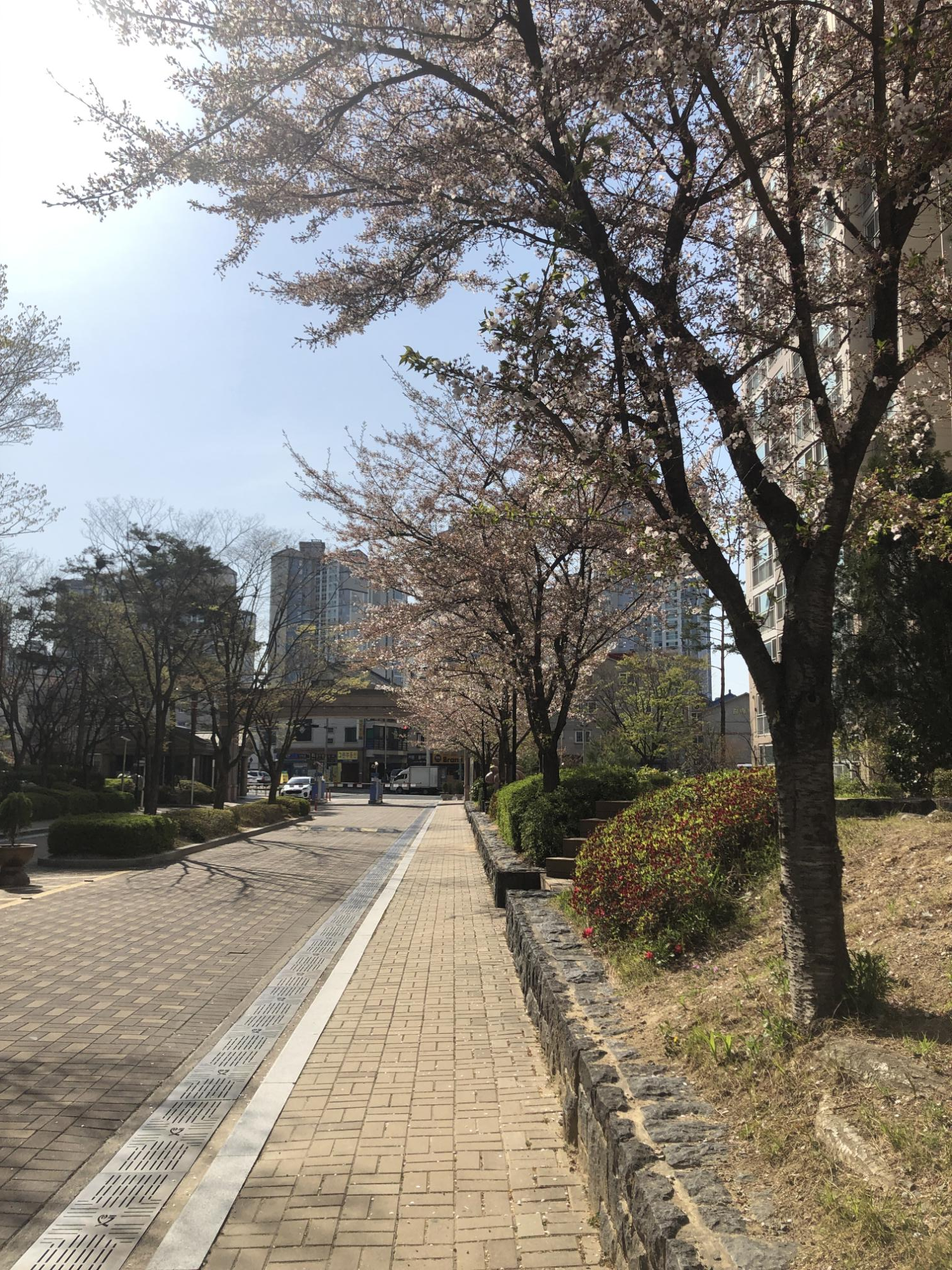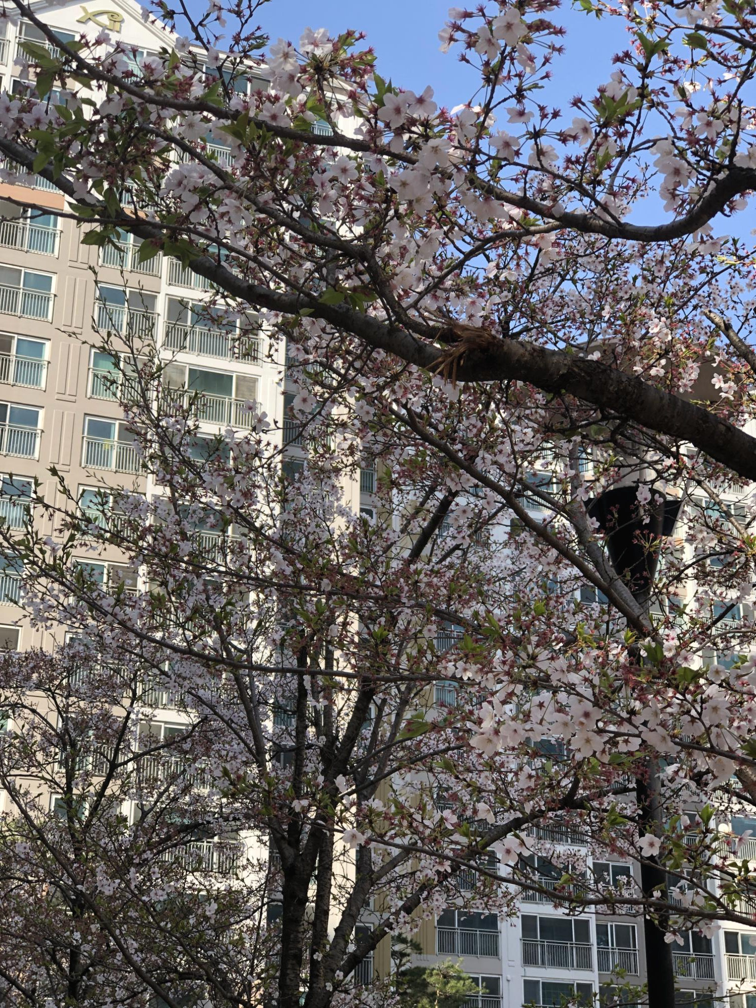 화려했던 벚꽃은 이제 순백의 꽃잎을 거의 다 버리고 새순이 돋아나고 있다. 이즈음의 나무색은 좀 칙칙하다.