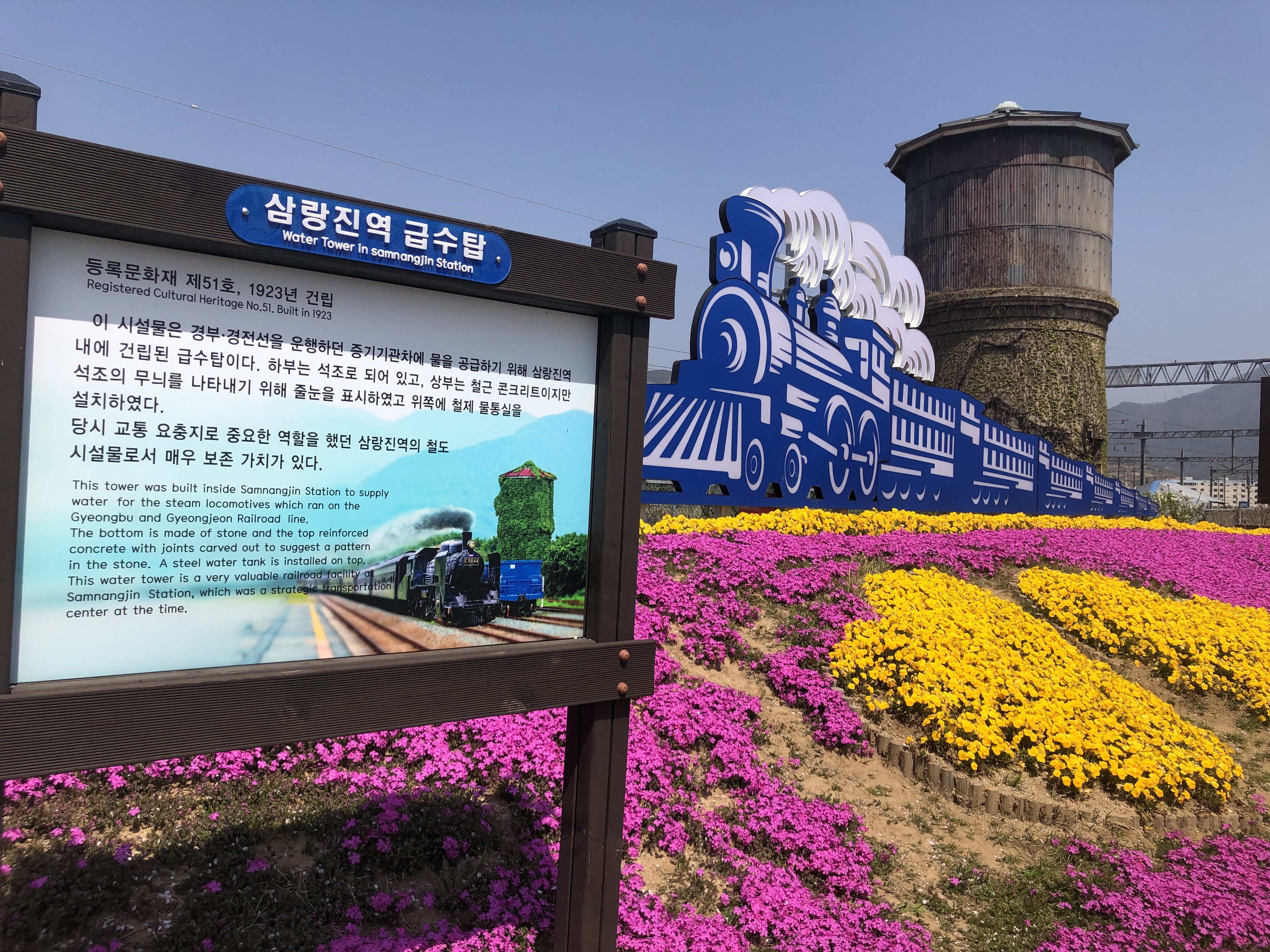 주말에 차를 타고 삼랑진에 가봤다. 삼랑진역 주변의 벚꽃은 이미 반 이상 져버렸고, 양수발전소 상부댐 쪽은 하려한 자태를 뽐내고 있었다. 경부선 철도가 개통된 해는 1905년 1월 1일, 삼랑진 역 급수탑은 1923년에 세워졌단다. 꽤 오래된 유물이다. 지어진 그 당시는 증기기관차가 다니던 시절이고, 이 급수탑에서 기관차에서 증기로 만들 물을 공급받았으리라. 현재의 위치가 그 당시와 동일하지는 않으리라 생각이 되기도 하는데 어쨋든 보존 가치가 있어보인다.