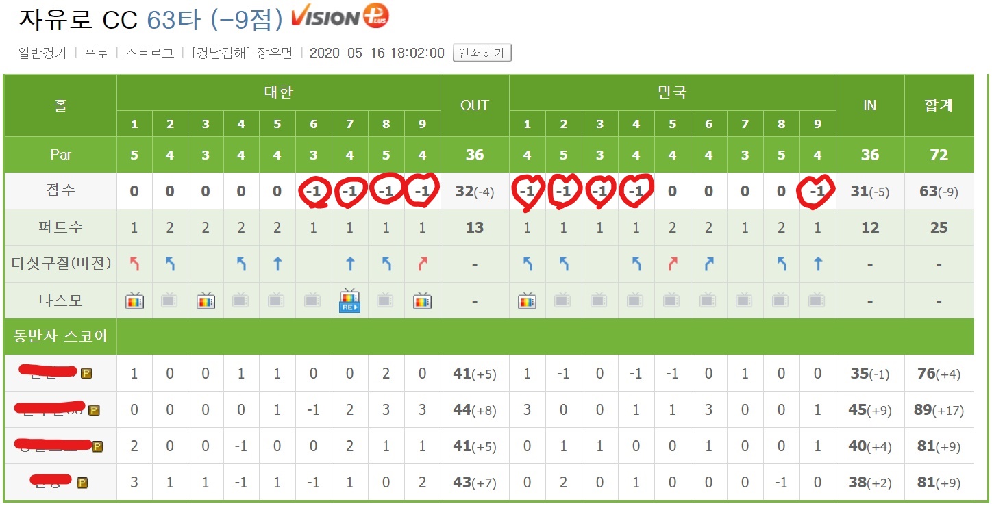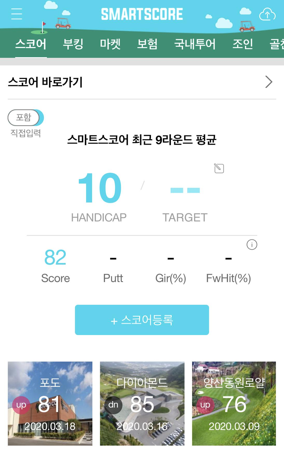 아래는 스마트스코어 앱에 기록된 필드의 스코어이다.