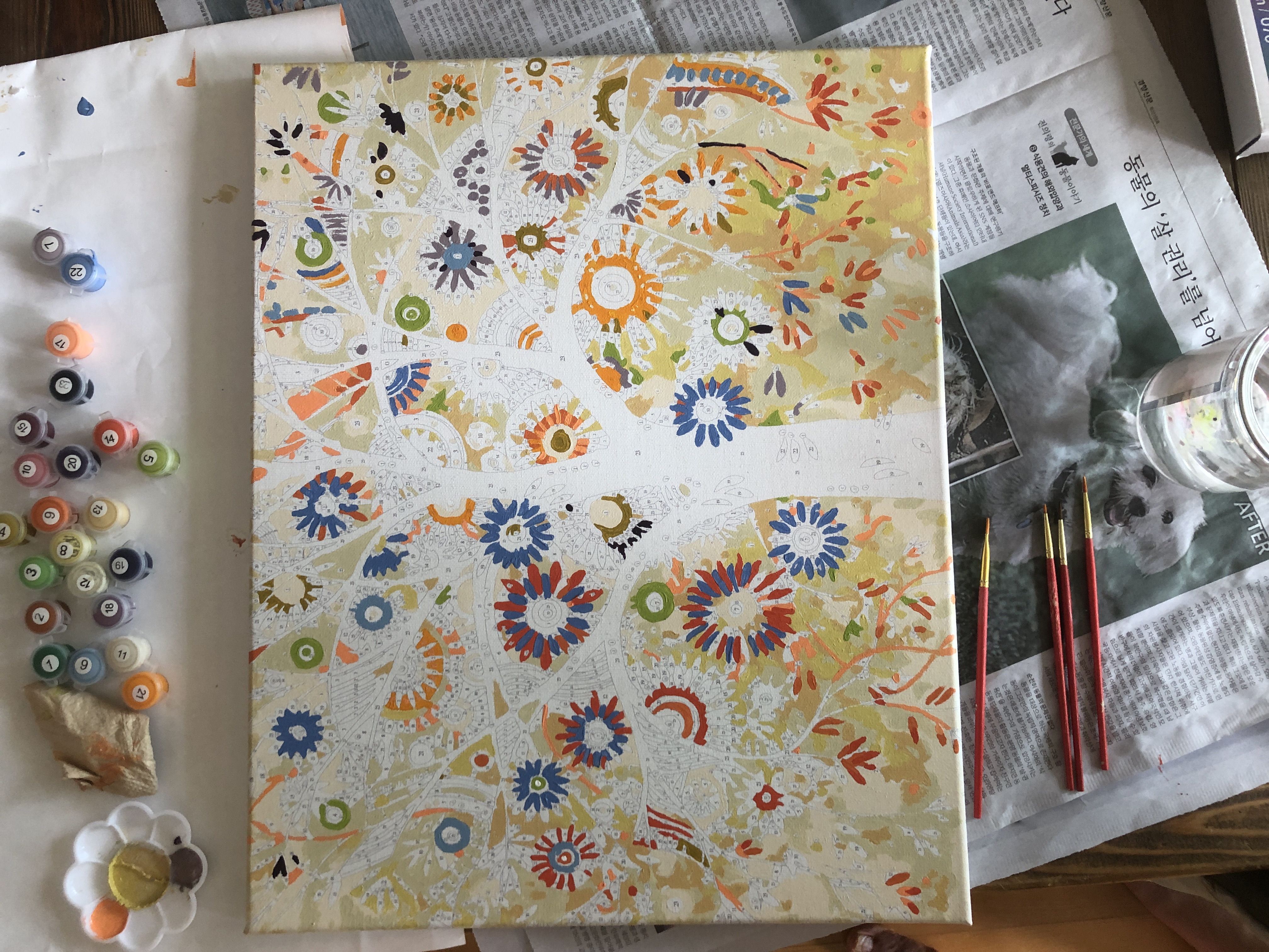 밑그림이 그려져 있고, 구역별로 색칠 번호가 매겨져 있어 번호대로 물감을 칠하면 완성되는 명화!!