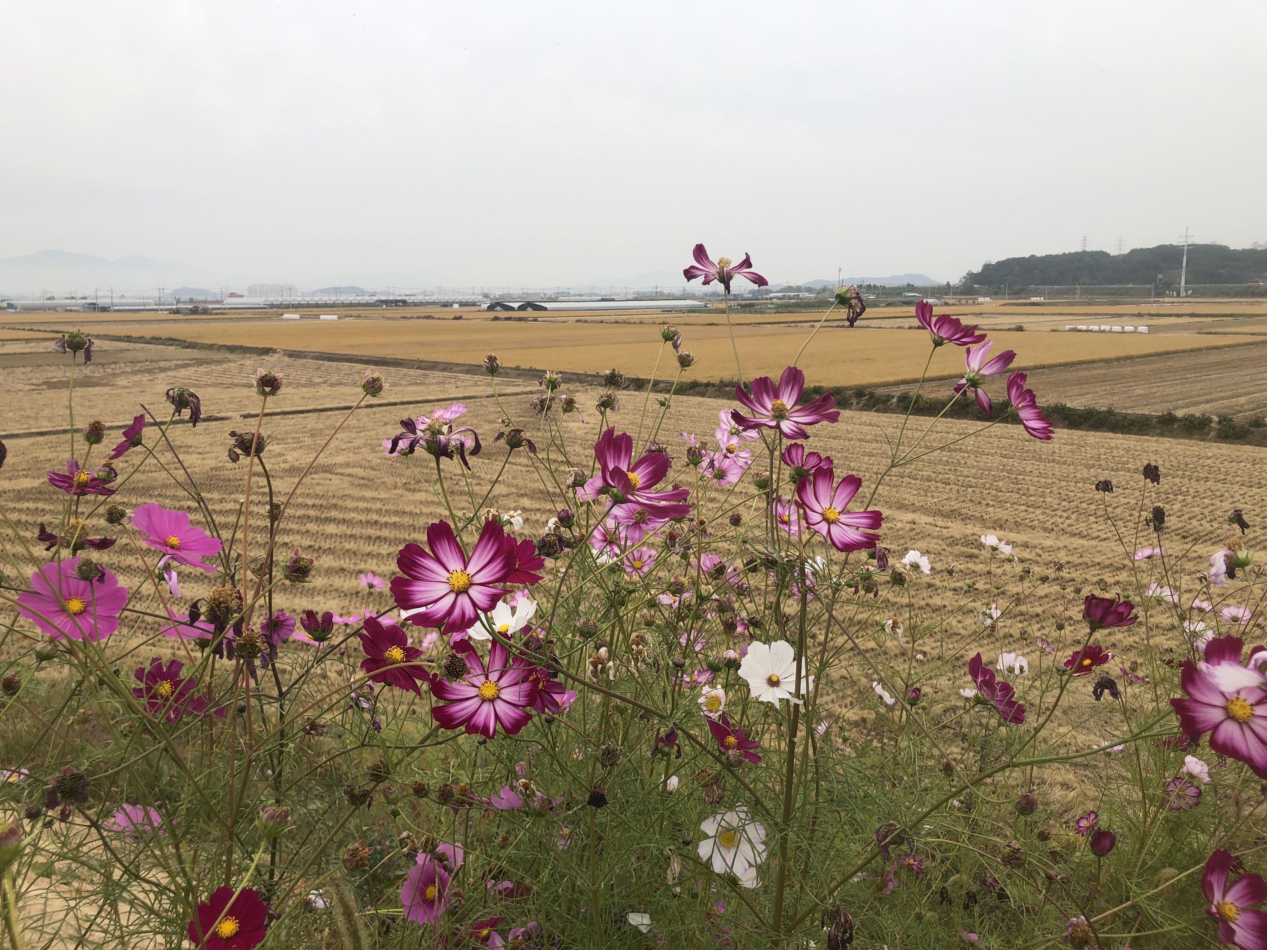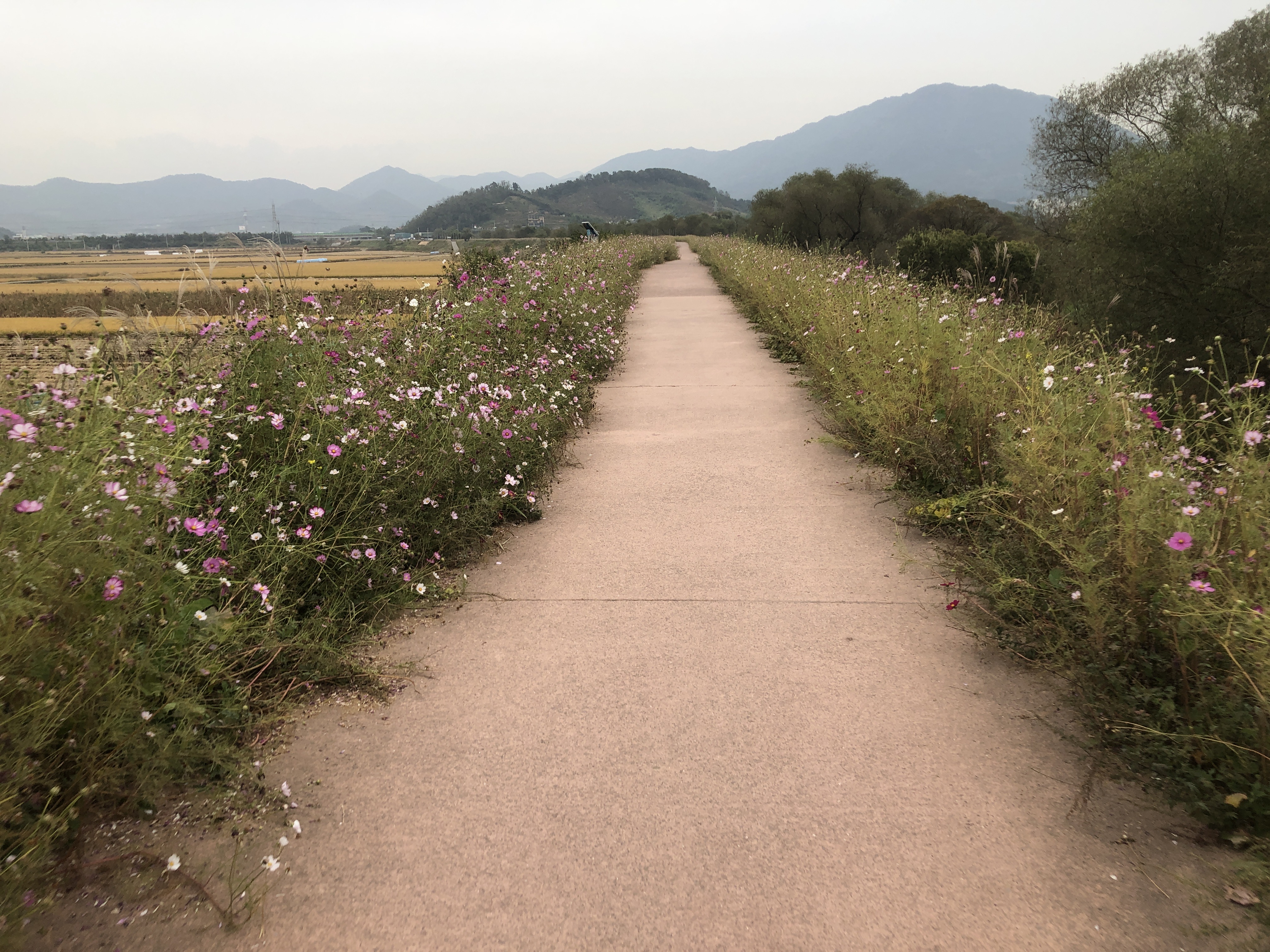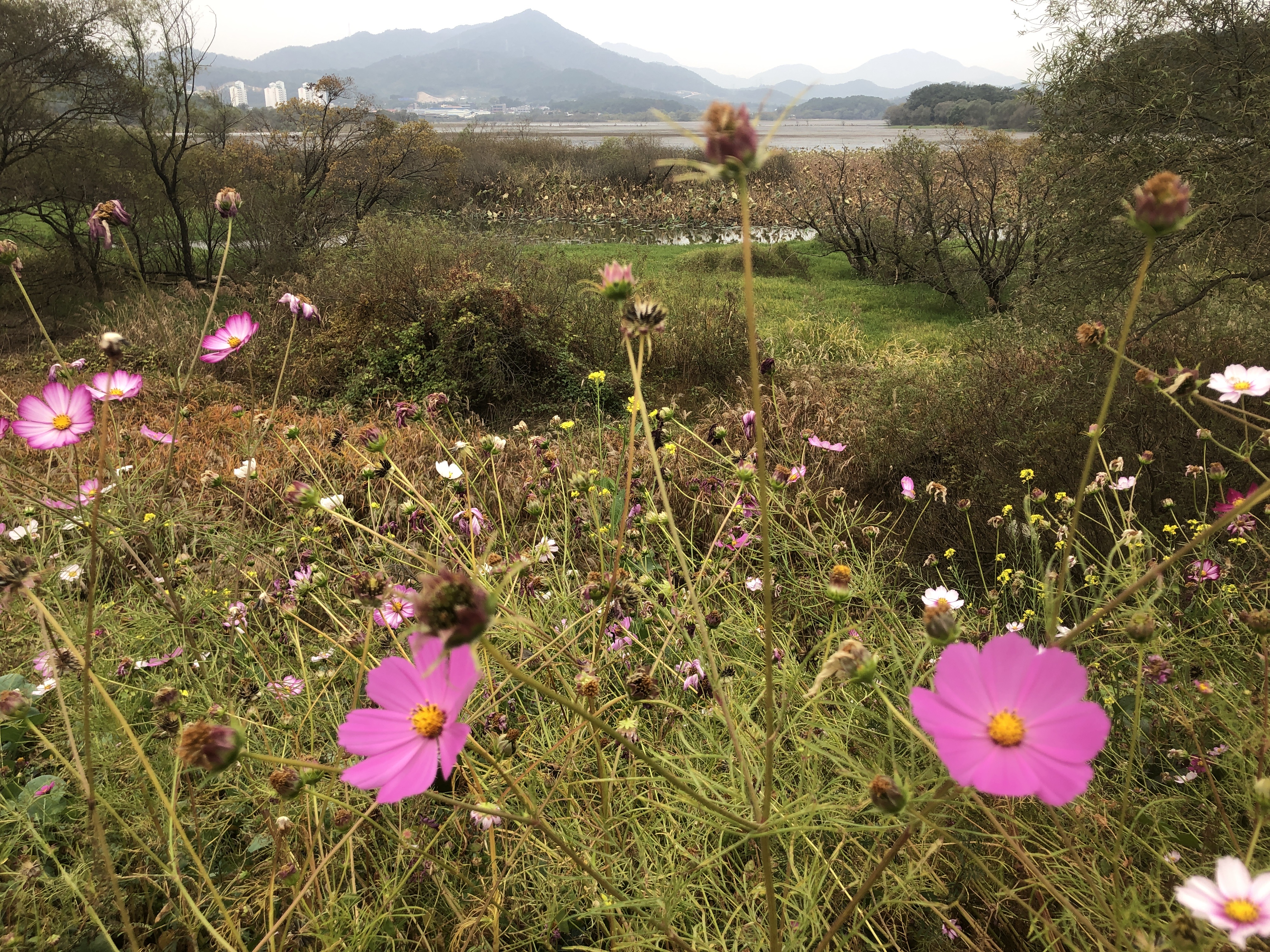 10월 말로 접어드는 시간, 코스모스로 유명한 창원 동읍 무점마을의 동판저수지 둑길이다.