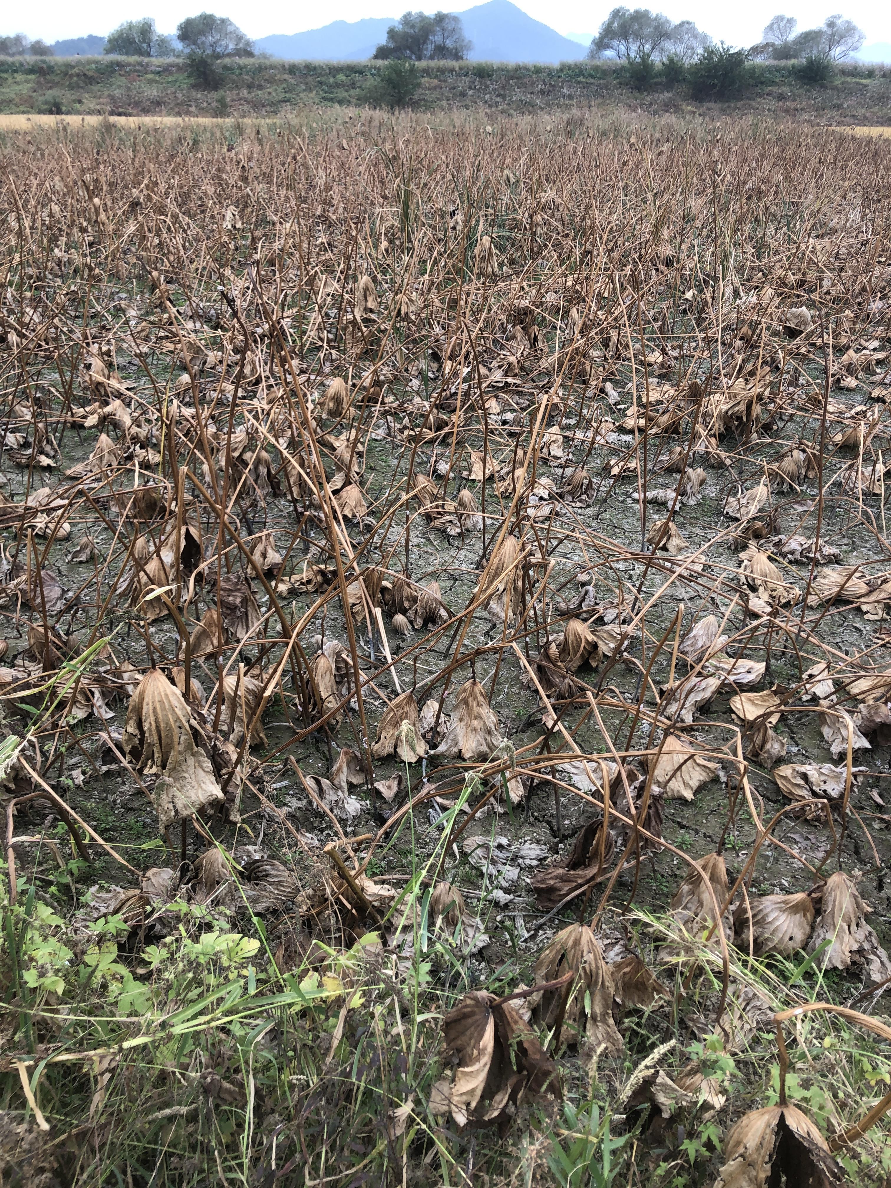 이 연밭은 뿌리캐기를 포기한 것일까? 아니면 더 시들게해서 수확하려나?
