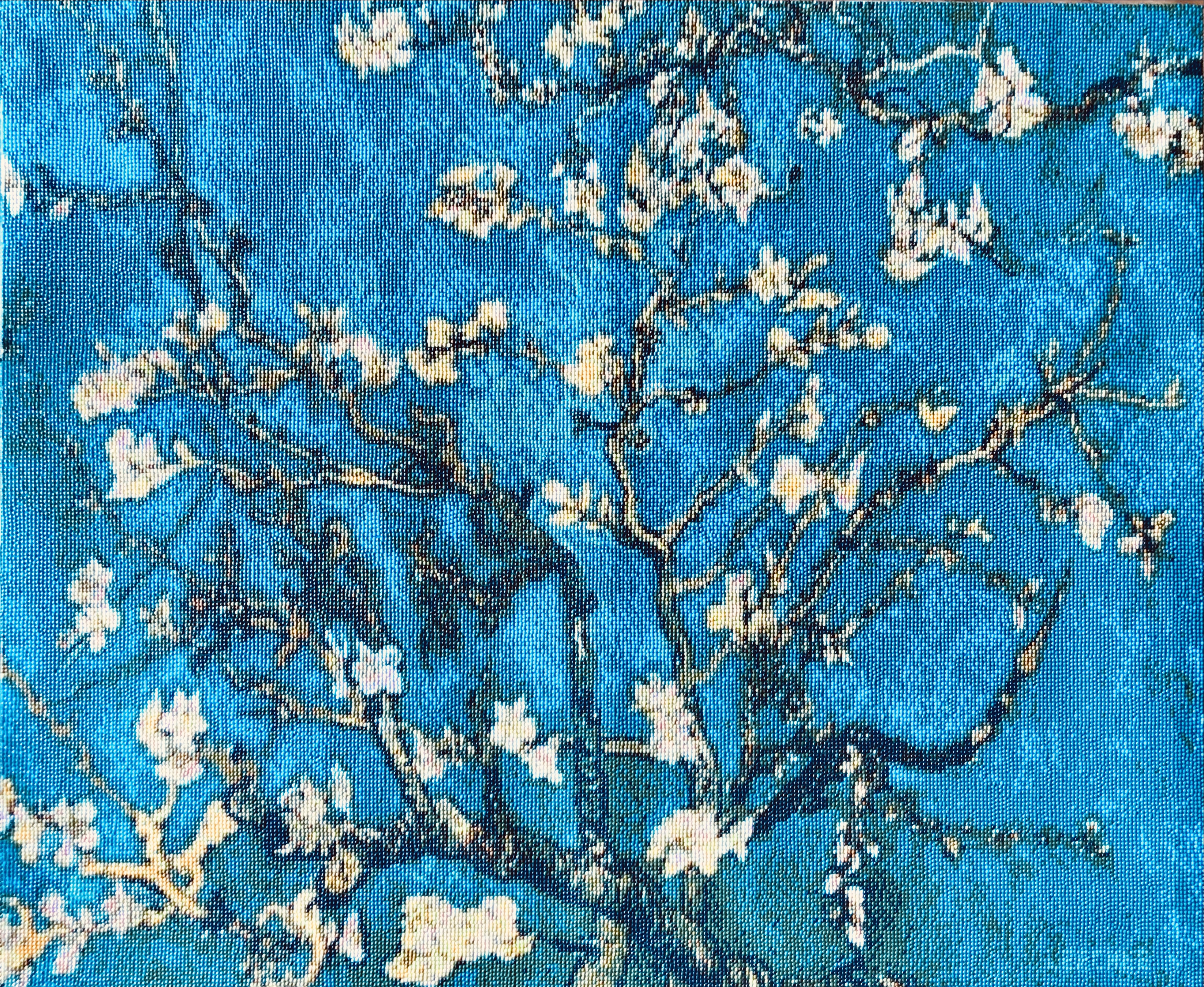 지금은 다섯 번째 작품으로 고흐의 '꽃피는 아몬드 나무'를 제작 중이다. 여태껏 만든 작품 중에서 가장 크다. 그래서 제작 시간도 많이 걸린다. 위의 오베르의 밀밭이 1주일 정도 걸렸는데, 아몬드 나무는 보름 넘게 작업 중이다.