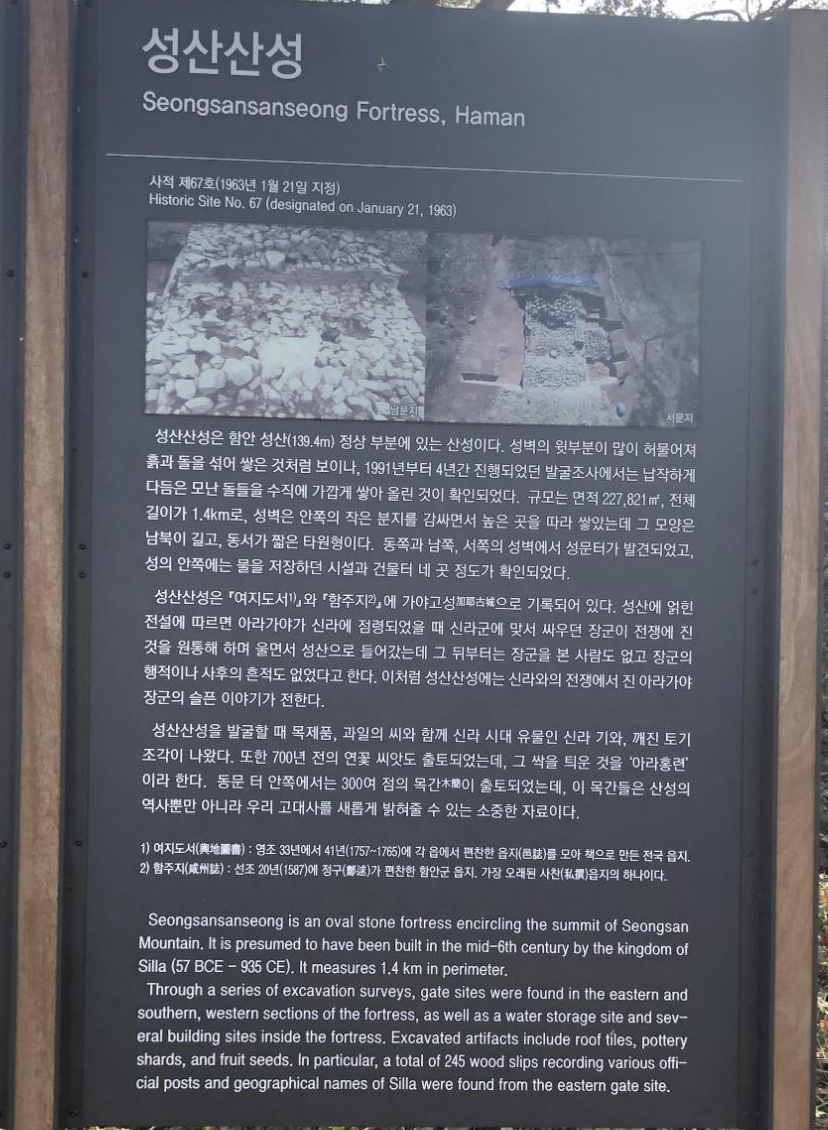 발굴 사업이 한창 진행 중인 성산산성에 가보았다. 가야시대의 산성이라고 한다.