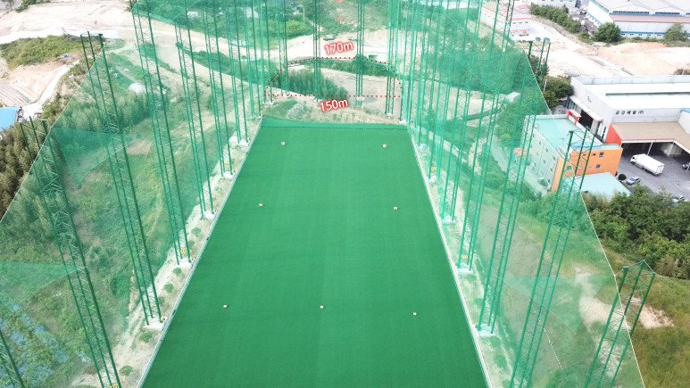 2층과 3, 4층에 인도어 연습 타석이 있고, 2층에서 보면 약간 오르막으로 되어 있어, 200미터 표시점은 3층을 기준으로 한 것 같고, 2층에서는 약 220미터 정도 되지 않을까 생각된다.