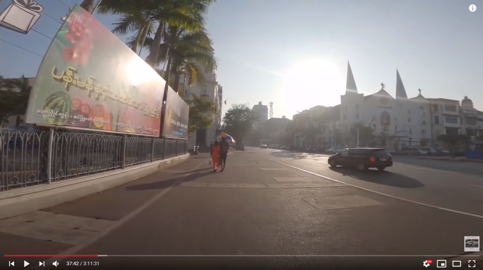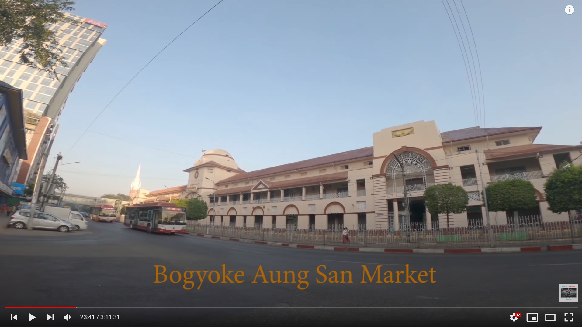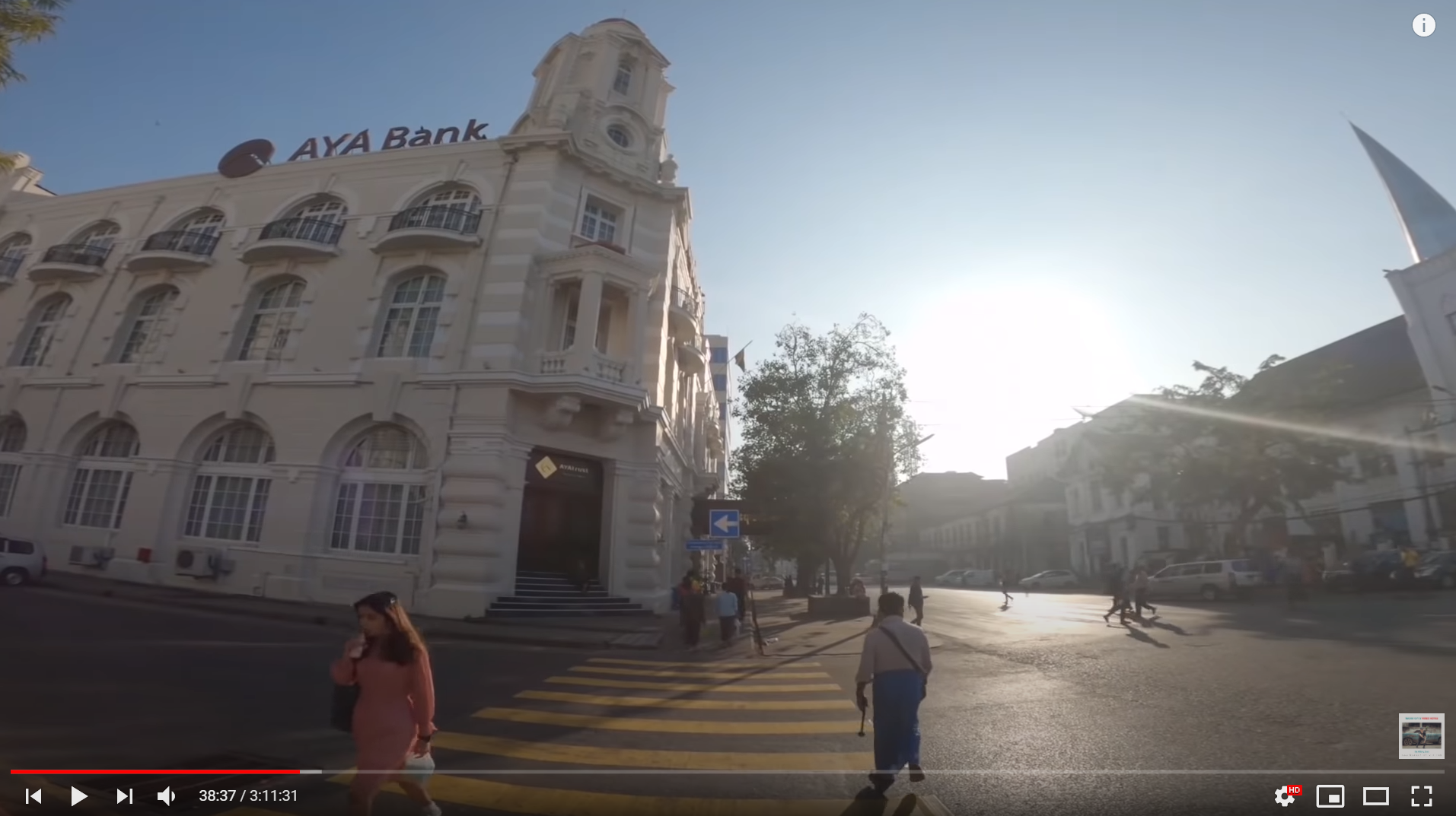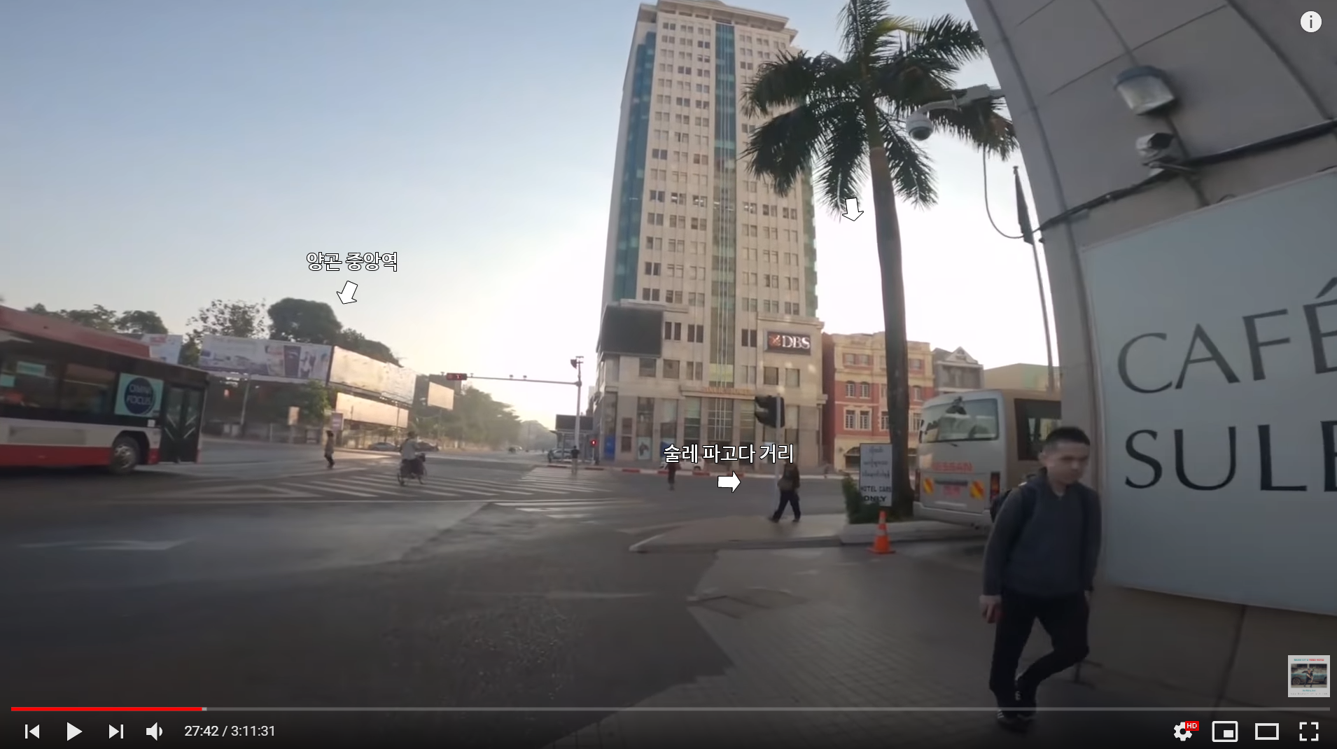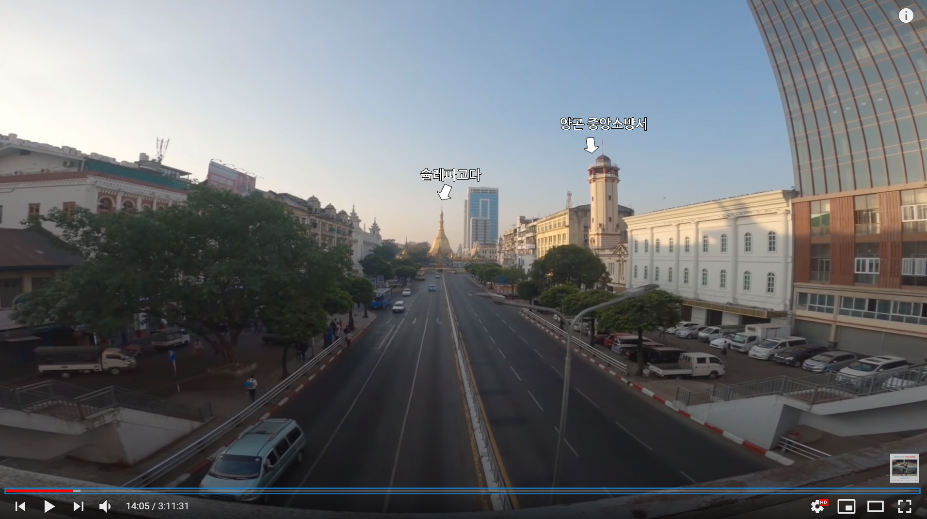 이 영상의 제작자는 고프로 액션캠을 들고 걸어서 양곤의 다운타운을 탐방하고 있다. 영상의 길이는 무려 3시간 11분이다. 그 길이가 너무 길고 해설이 필요한 부분이 많아 세 부분으로 나누어 포스팅한다.