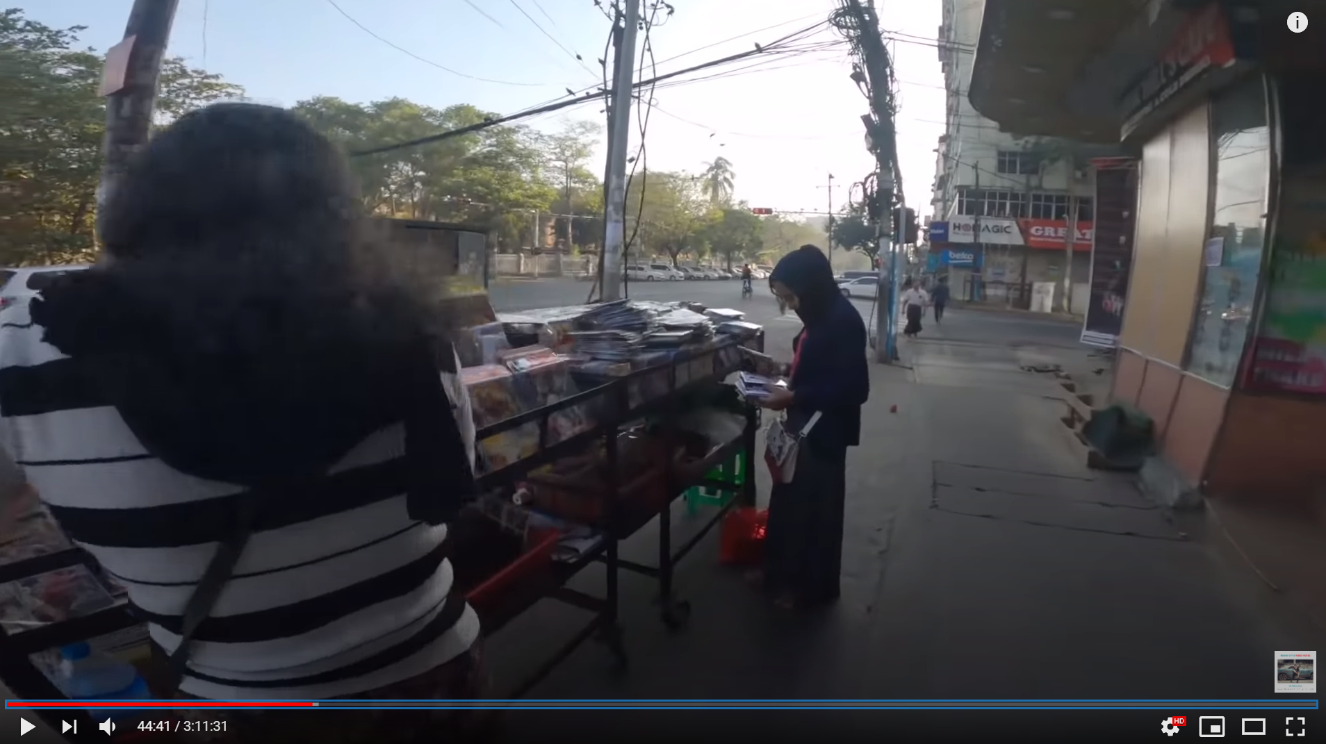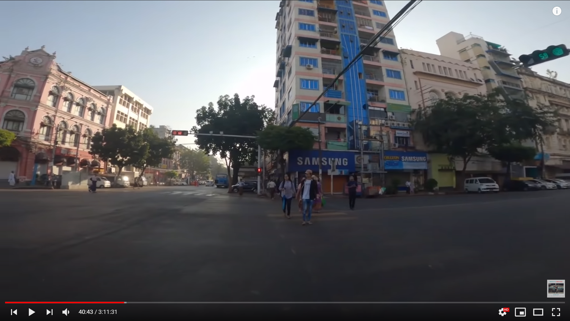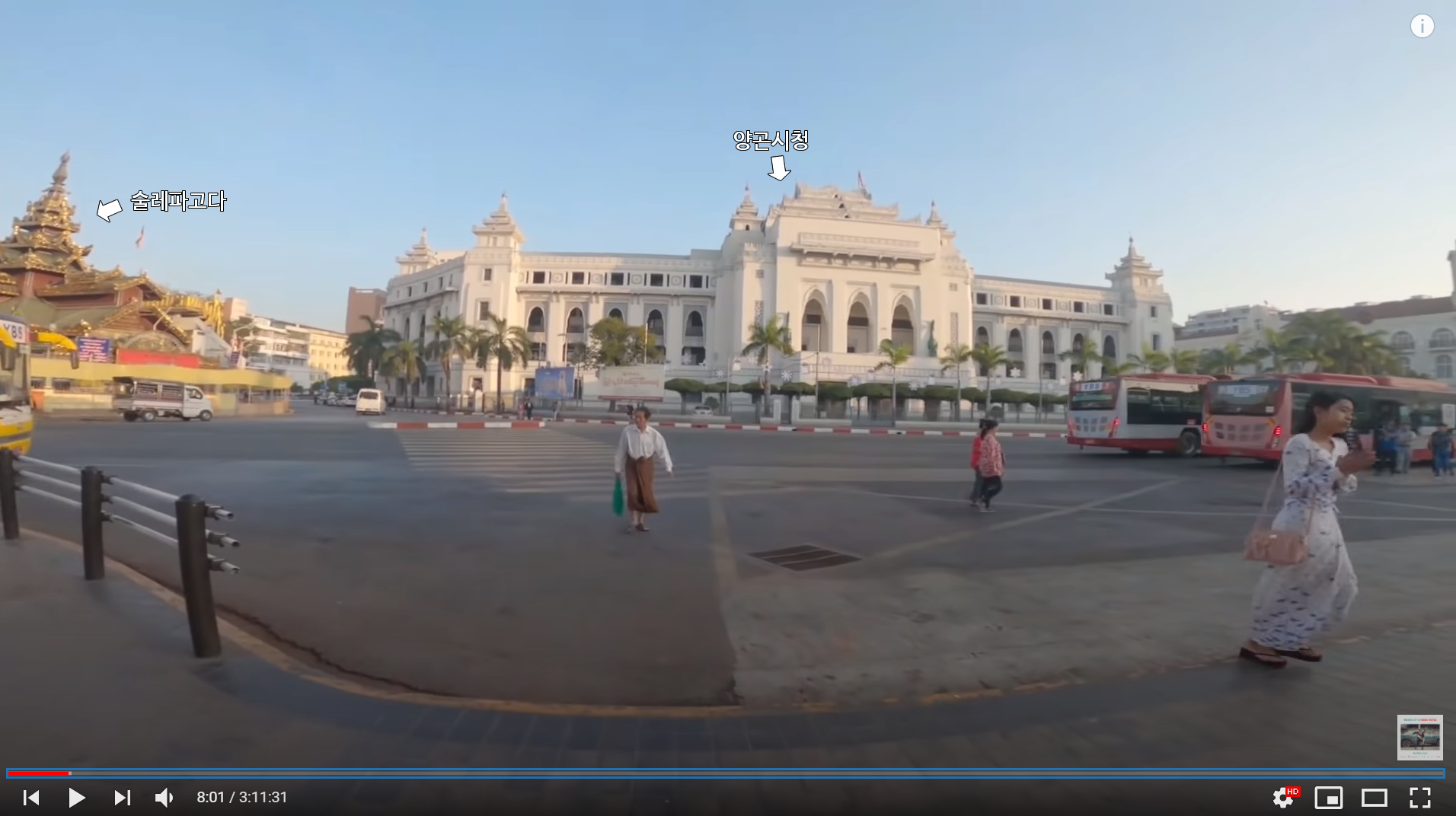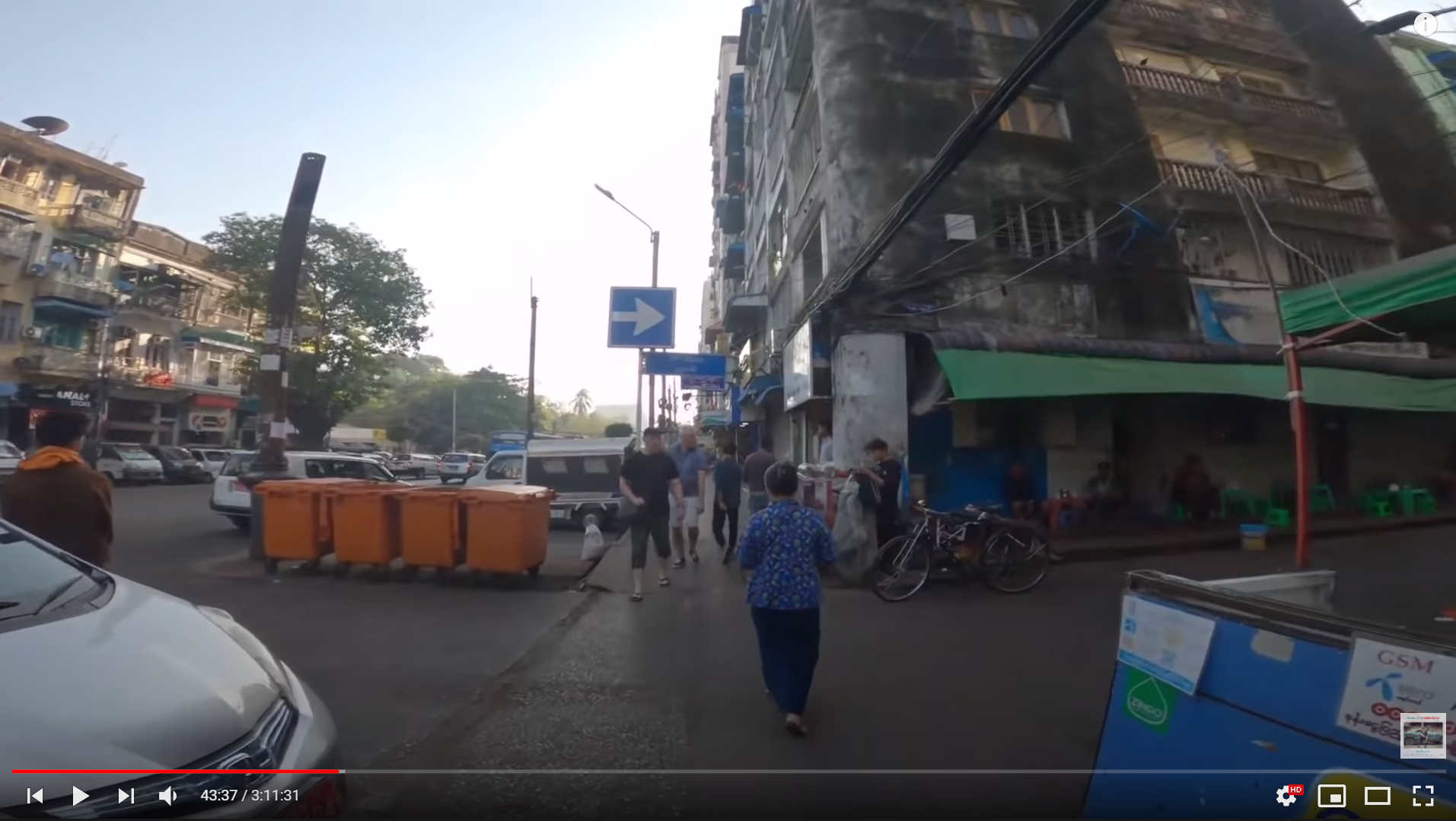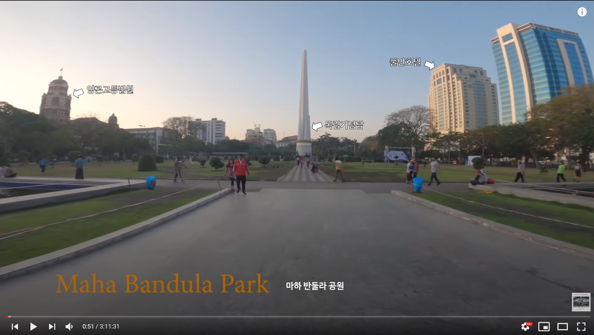 이 영상의 제작자는 고프로 액션캠을 들고 걸어서 양곤의 다운타운을 탐방하고 있다. 영상의 길이는 무려 3시간 11분이다. 그 길이가 너무 길고 해설이 필요한 부분이 많아 세 부분으로 나누어 포스팅한다.