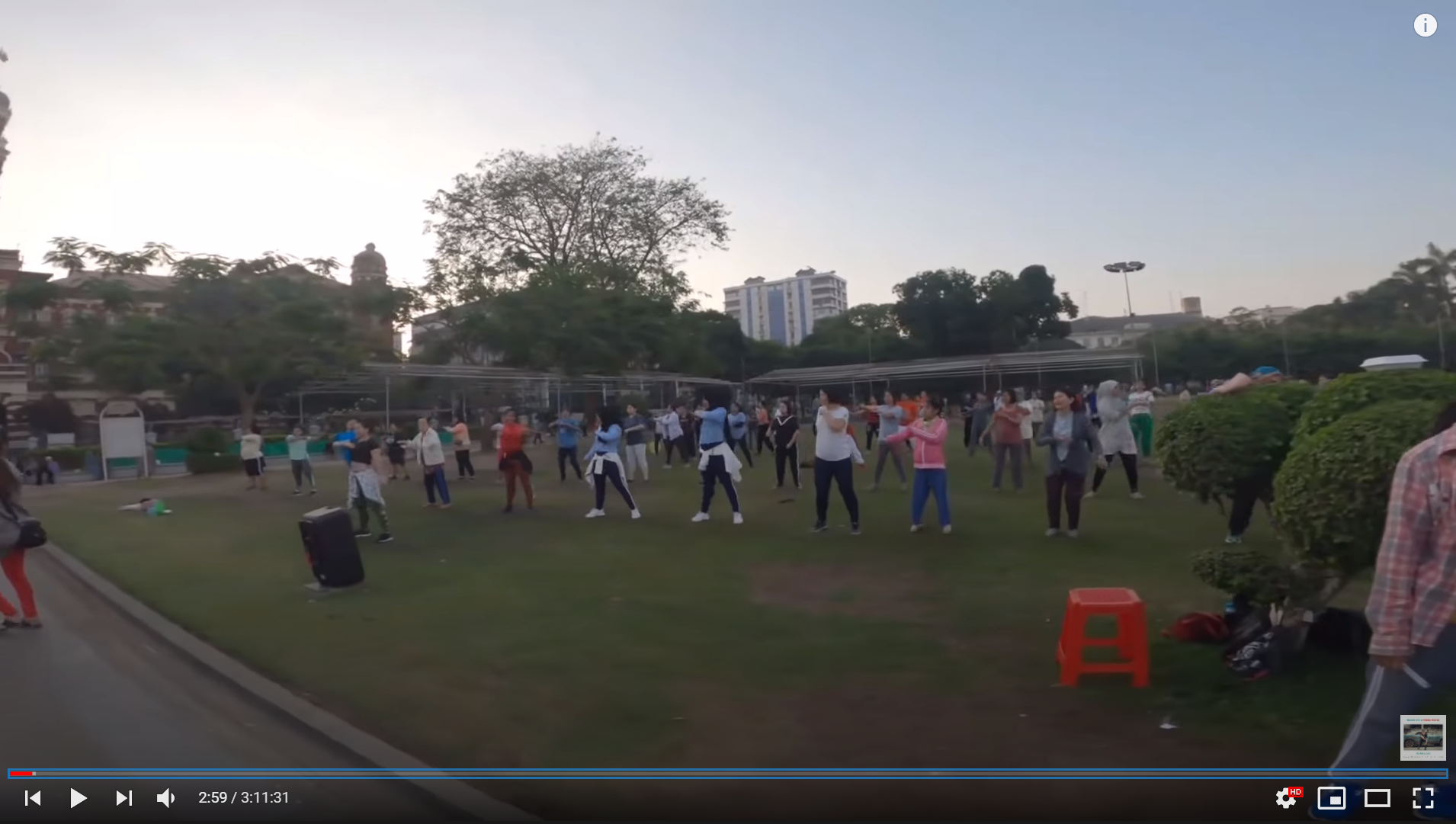 공원 안에서 집단 에어로빅을 하는 사람들의 모습이 이채롭다. 이전에 우리나라에서도 동네방네 공터마다 사람들을 모아놓고 음악 틀어놓고 춤추며 하던 그 모습이 떠오른다.