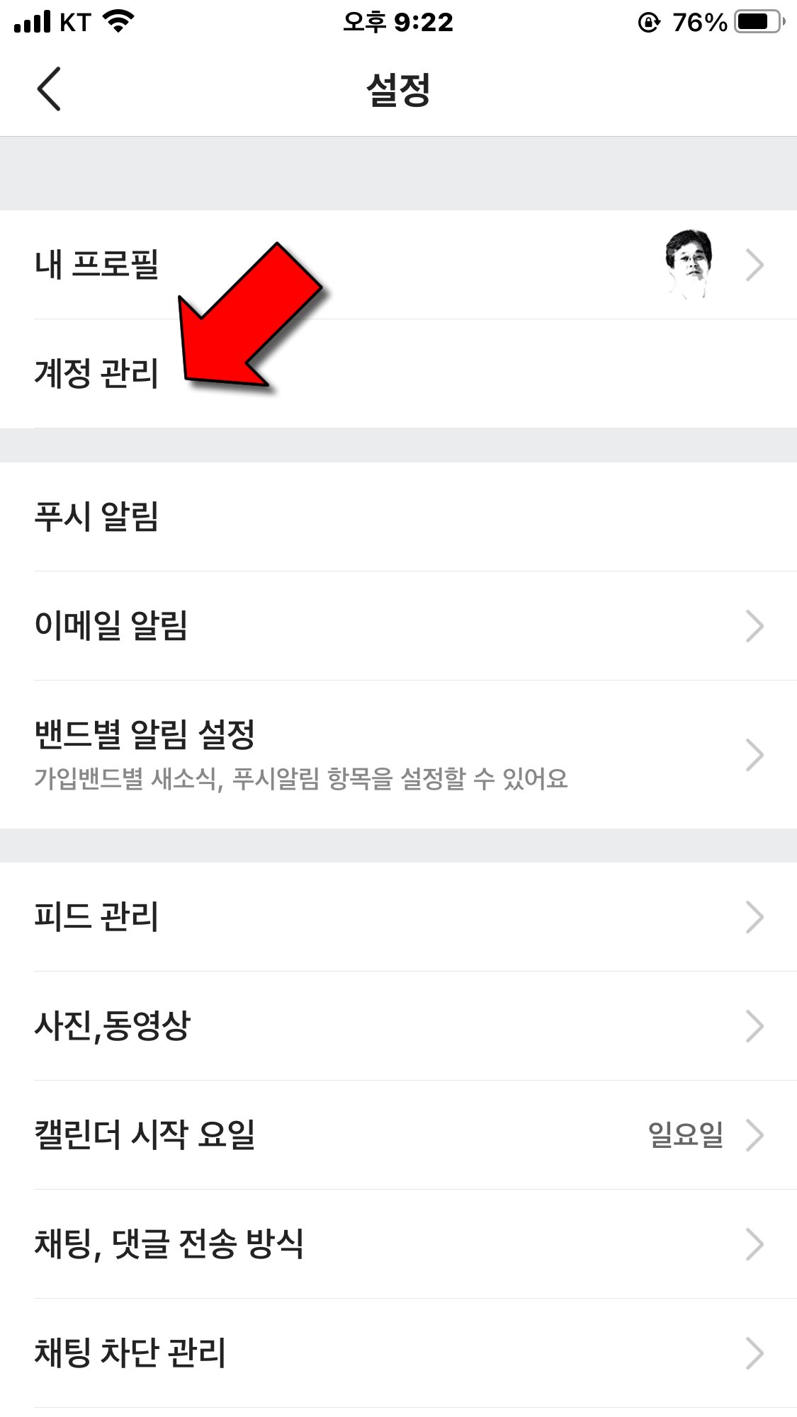 3) [계정관리]를 누릅니다.