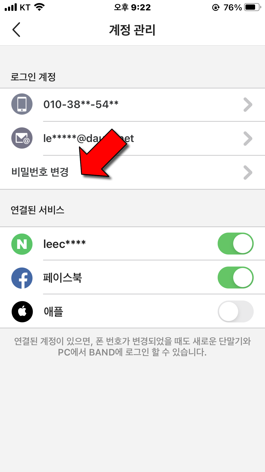 4) [비밀번호 변경]을 누릅니다.