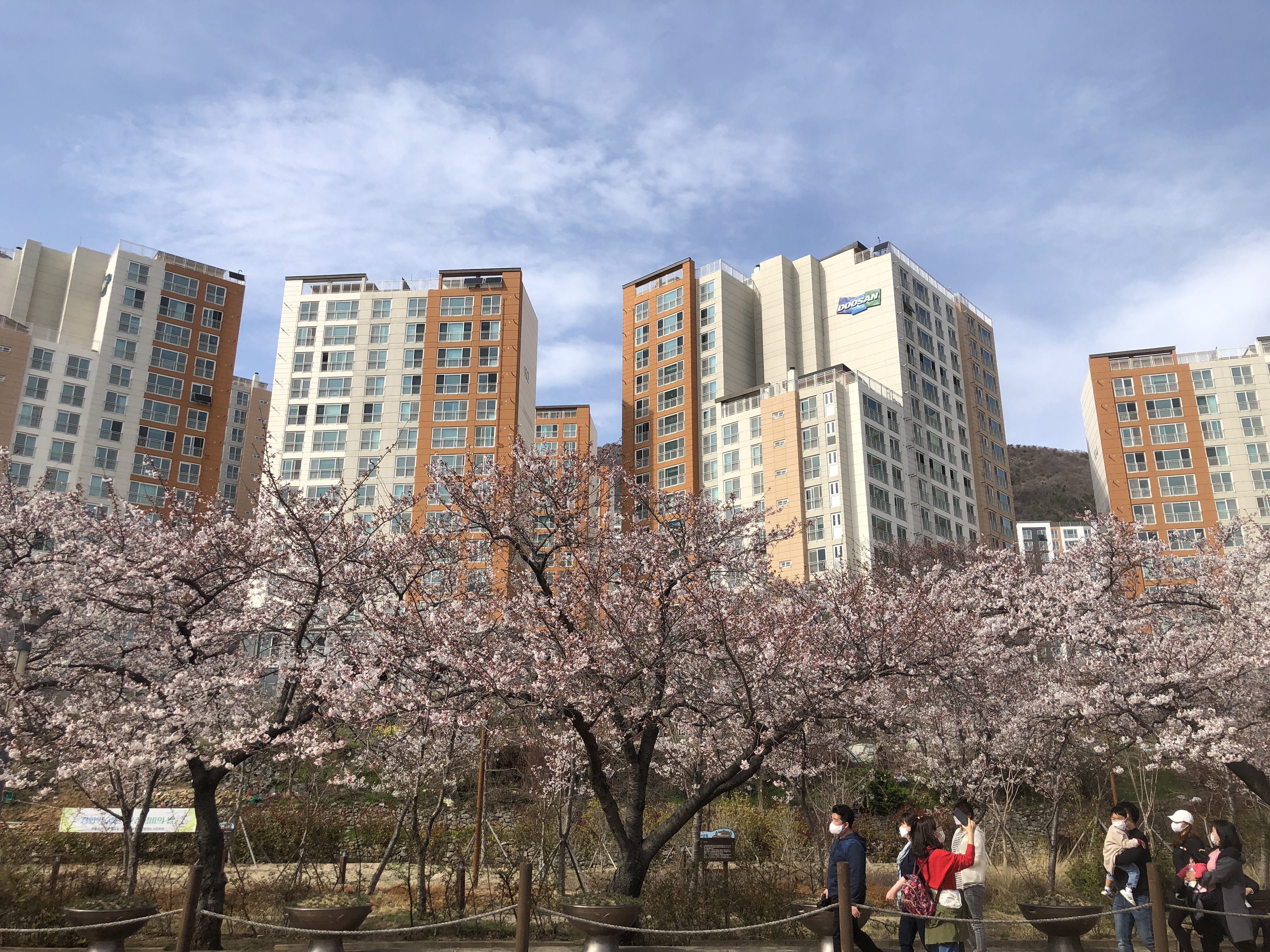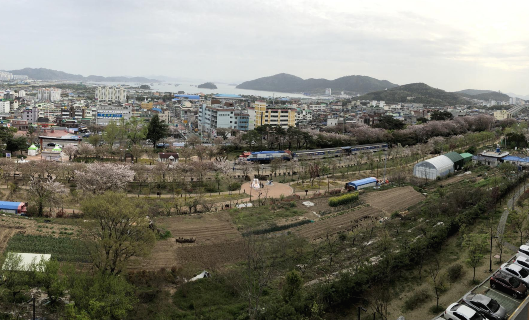 봄 한철 잠깐이긴 하지만 벚꽃이 흐드러지게 피어 전국적인 관광 명소가 되는 폐기차역 공원이 아파트 바로 앞에 있다.