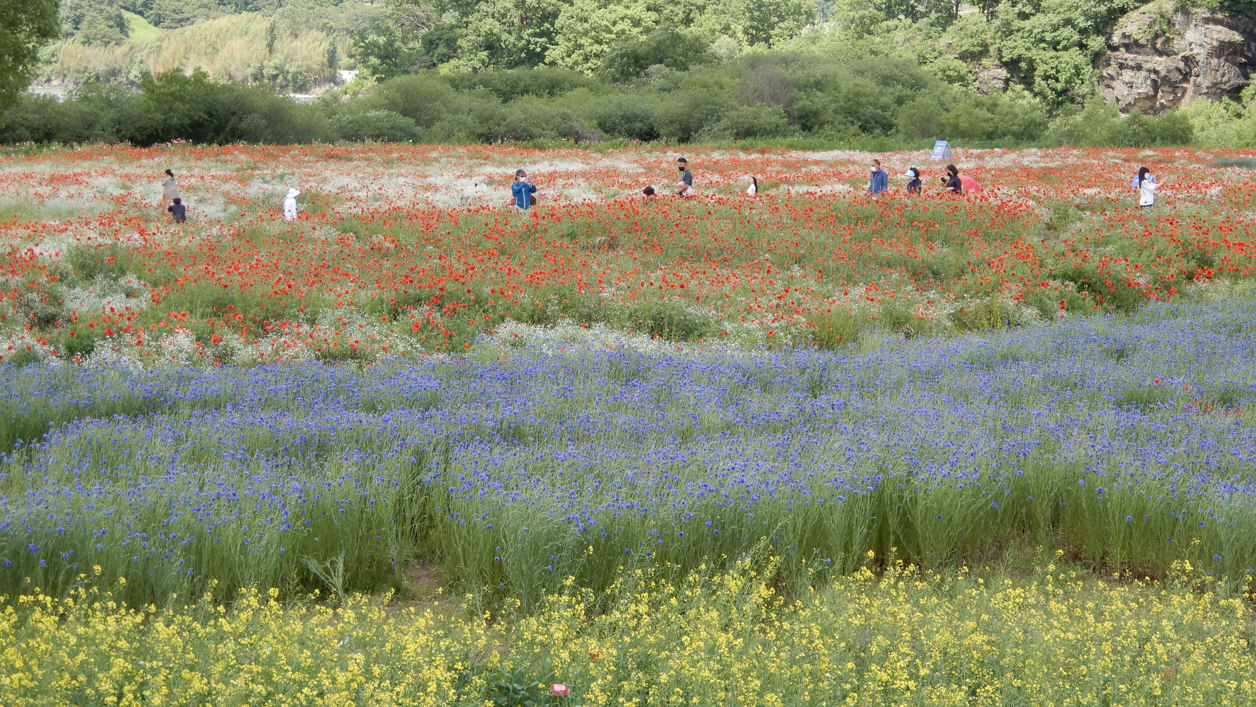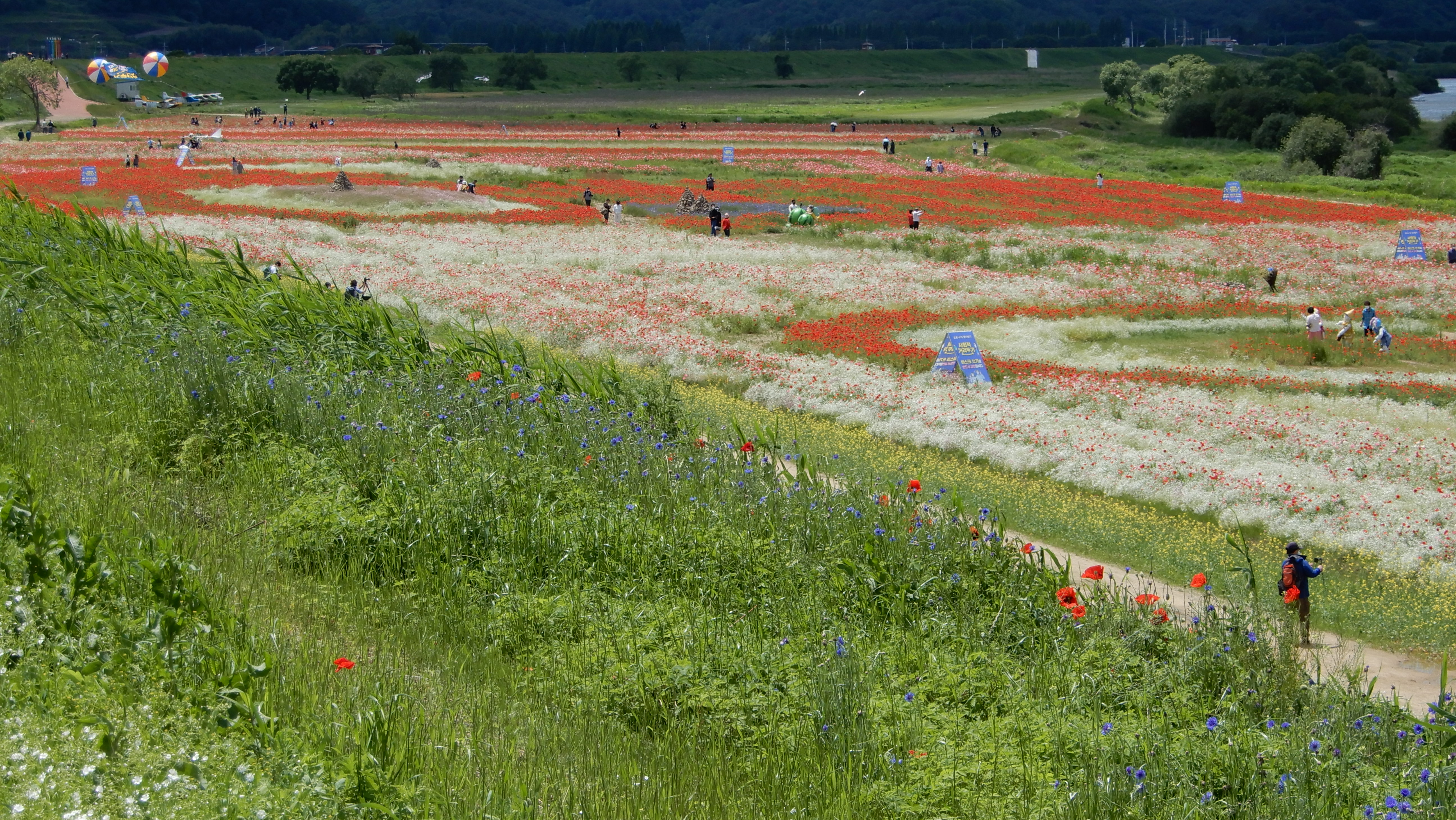 그러나 올해는 달랐다. 경비행장 쪽은 예년과 같은 모습이었지만 악양루 쪽은 모조리 꽃밭으로 꾸며놓았다. 그 규모가 어머어마하다.