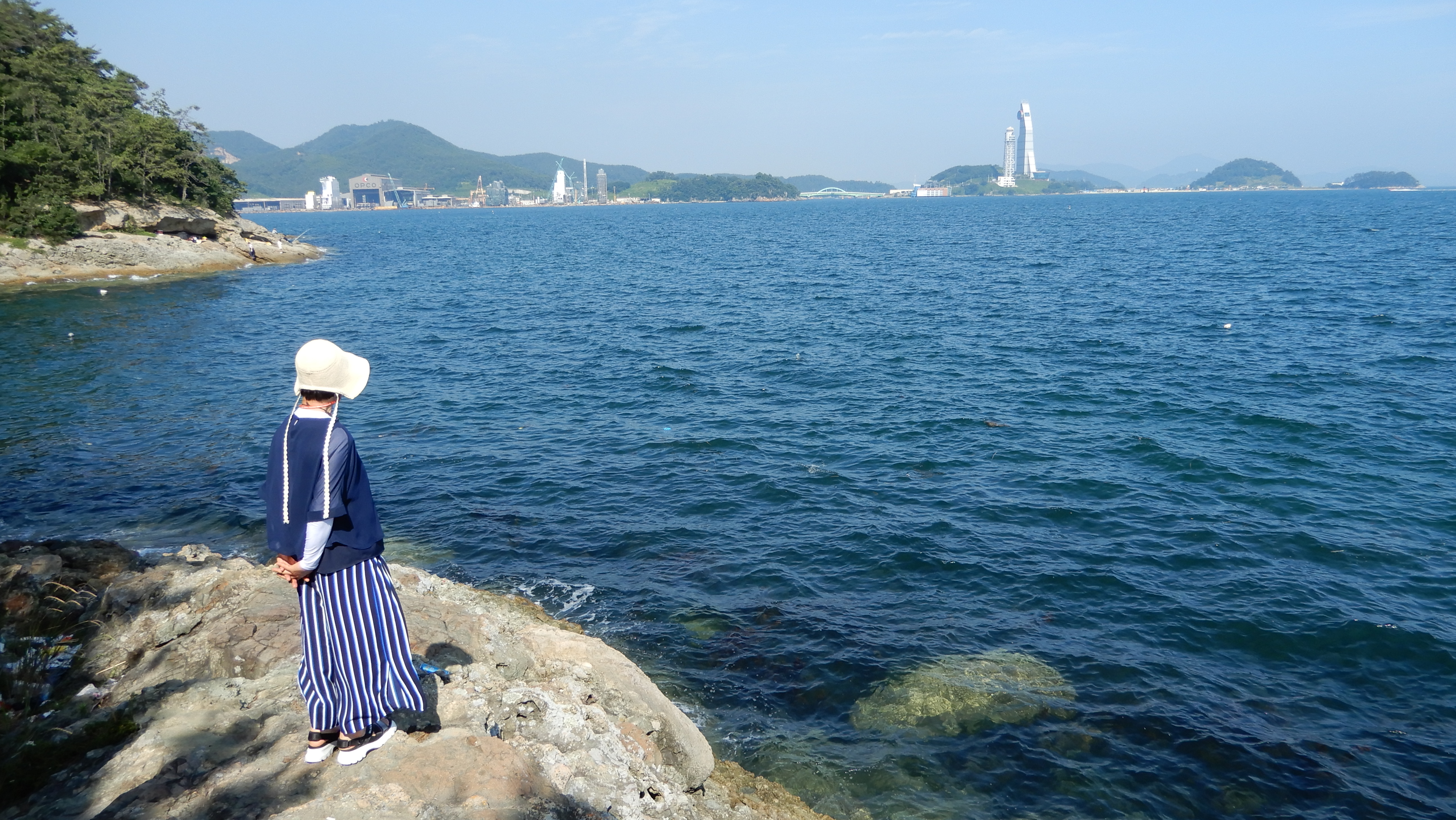 이순신 장군의 합포해전이 있었던 합계 마을 바닷가 데크길을 따라가다 보면 지금은 폐쇄된 군인들이 지키던 해안 초소가 나오고, 네댓명이 담요 한 장씩 덮고 잤을 법한 시멘트 침대를 지나 낚시꾼들이 남기고 간 비닐이며 패트병, 깡통이 수북히 쌓인 웅덩이를 피해 엉덩이를 붙이면 낮 동안 달구어진 바위의 온기가 느껴진다. 거기서 해풍을 맞으며 맞은편 태양광 빌딩과 바다를 줄에 매달려 건너는 놀이기구를 무심히 바라본다.