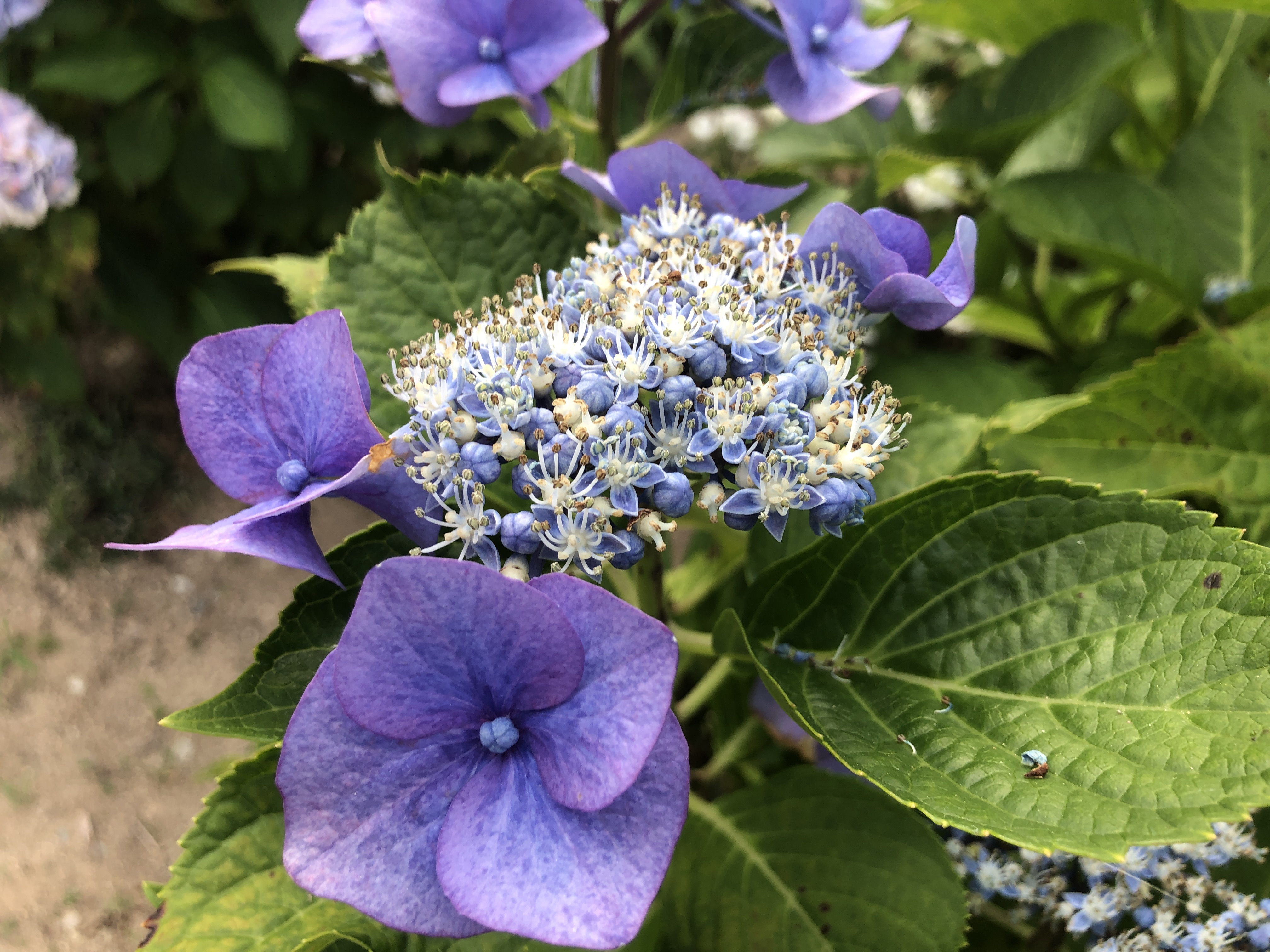 해양드라마세트장 주차장 부근에 수국 밭이 있다. 거제에서 봤던 수국은 연보라색이 가장 많았는데 이곳은 색깔이 다양하다. 청보라색, 자색, 분홍색, 흰색, 빨간색... 수국의 꽃은 처음에 흰색으로 피기 시작하지만 점차 청색이 되고 다시 붉은 색을 더하여 나중에 보라색으로 변한다. 토양이 알칼리 성분이 강하면 분홍빛이 강하고, 산성이 강하면 남색이 되어 땅의 성질을 바꾸어 꽃의 색깔을 바꿀 수 있다고 한다.