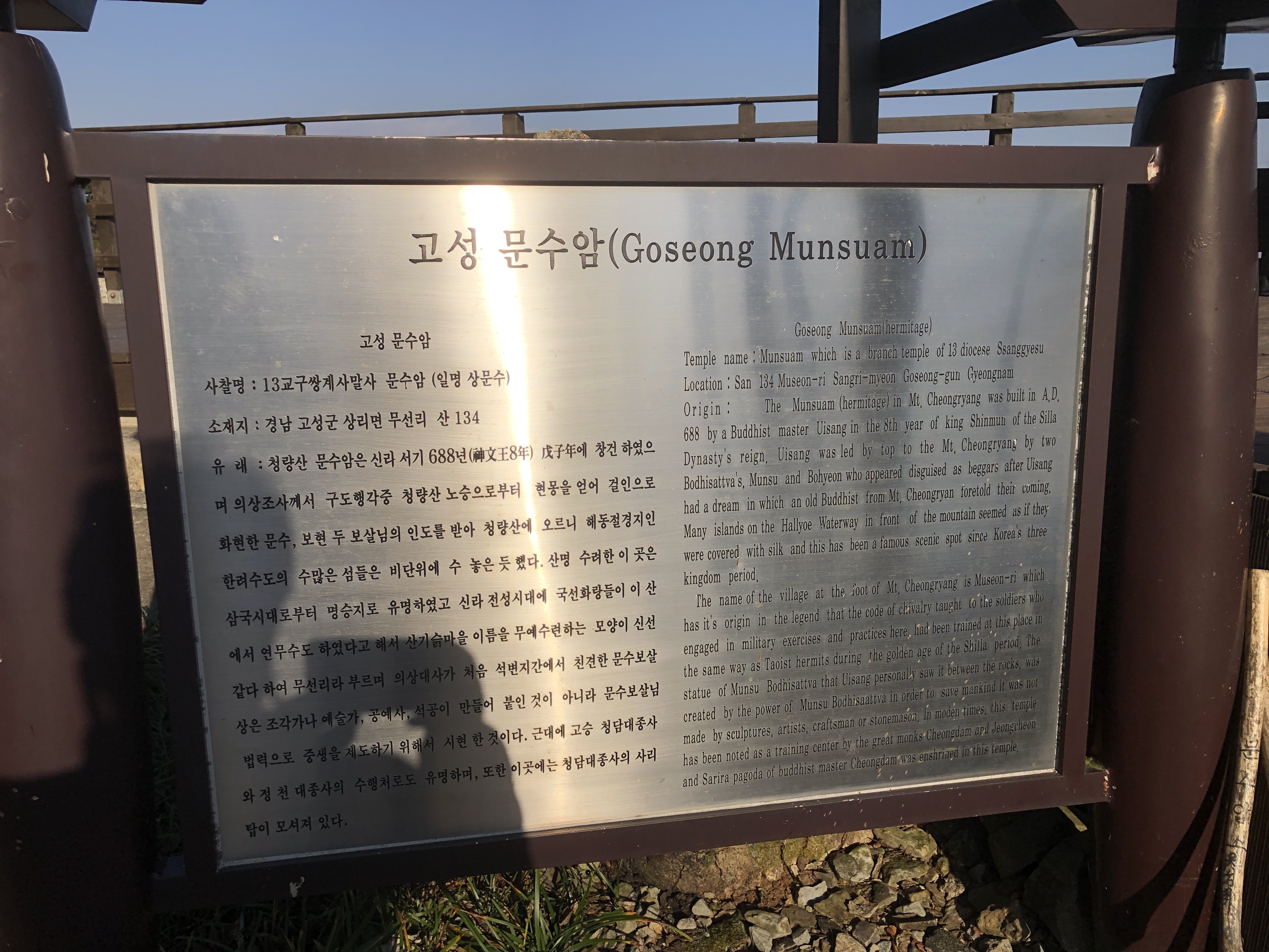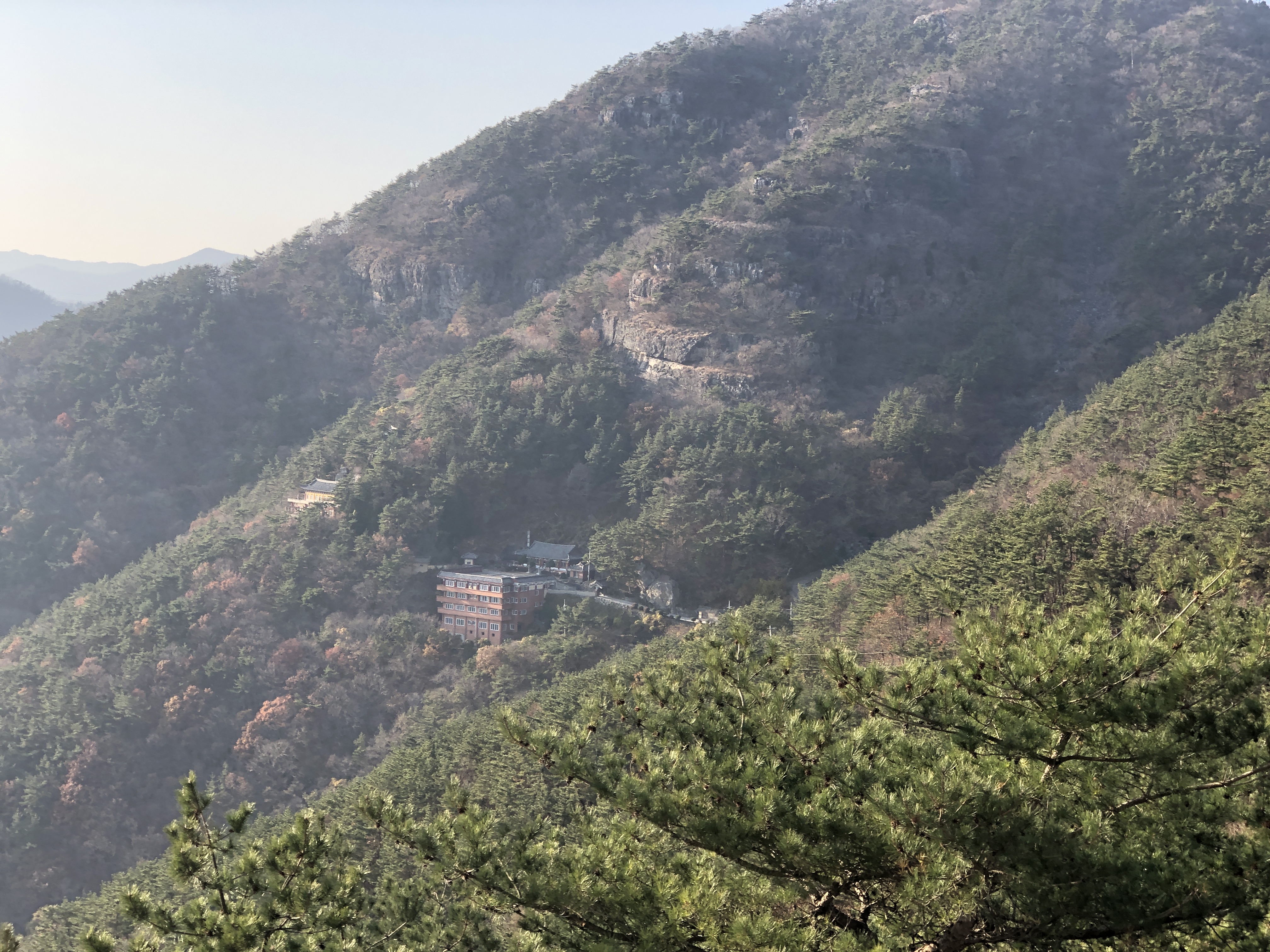 다음 행선지는 문수암, 거의 산정에 위치해 있어 전망이 확트이었다. 이렇게 시원스런 전망을 가진 암자는 전국적으로도 몇 안될 것 같다. 법당과 종무소 등이 45도 이상되는 절벽에 아슬아슬 붙들려 있다.