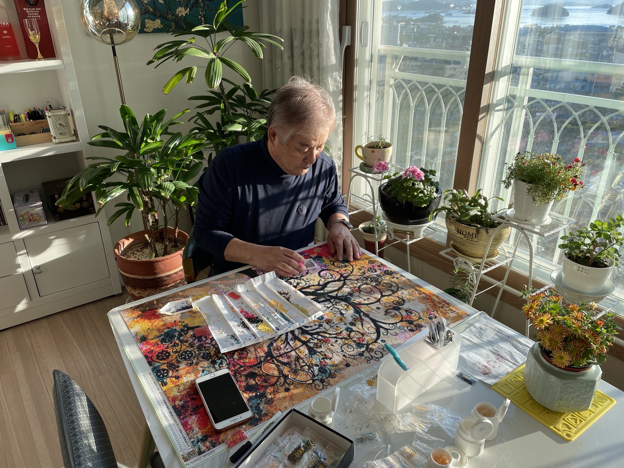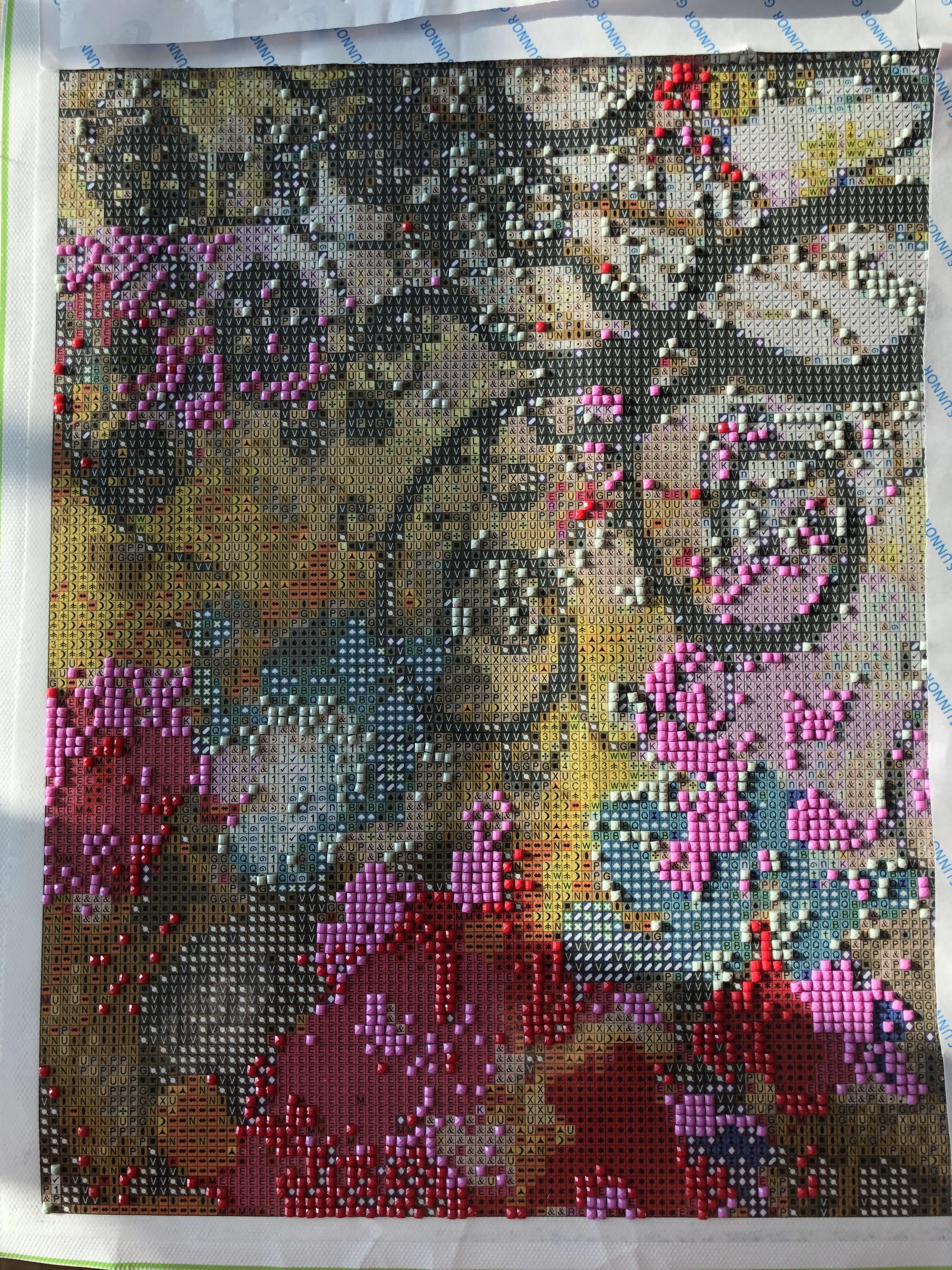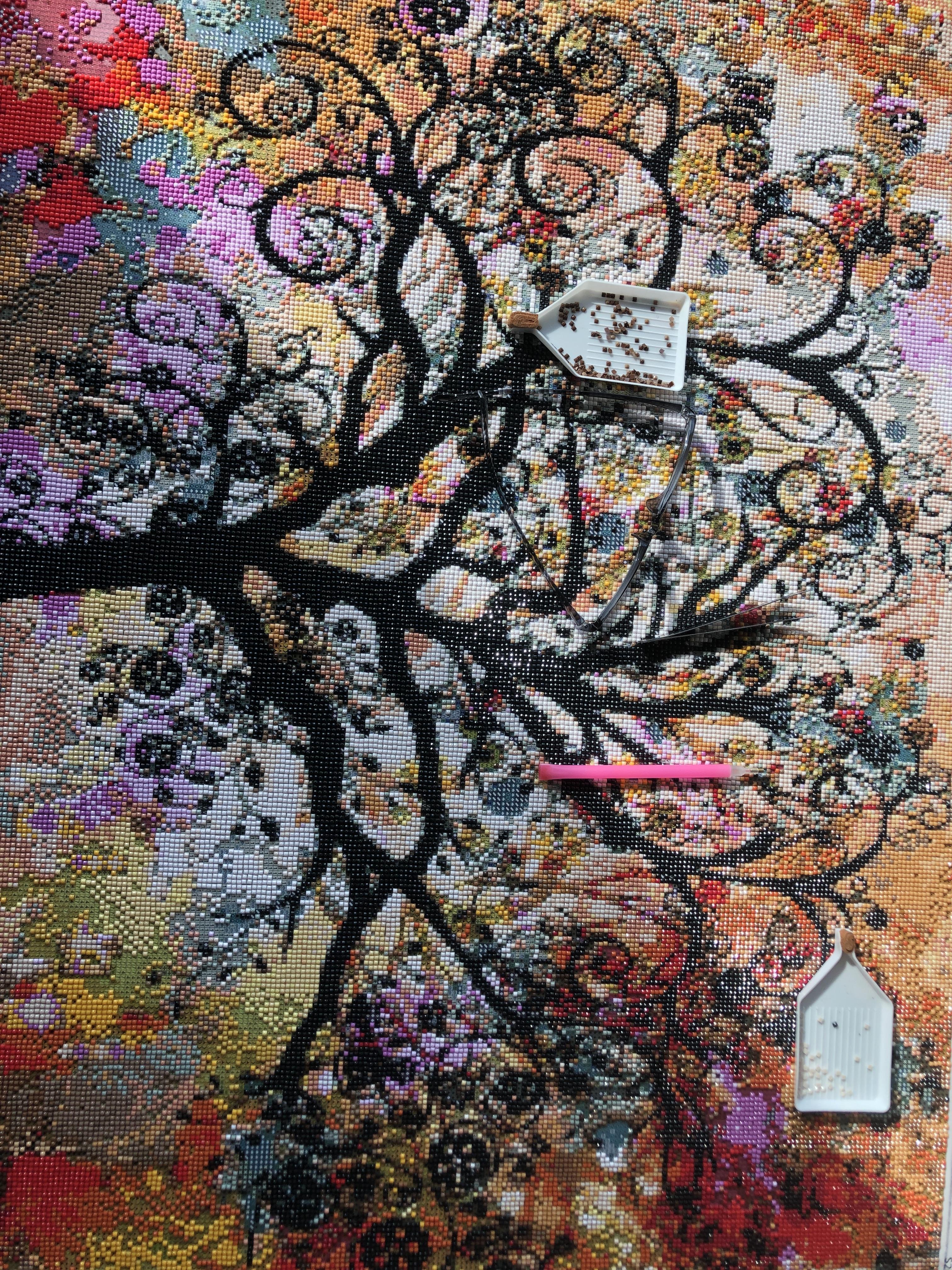 120*90cm 짜리 대작을 비롯해 몇 작품을 작년에 하고, 오래 쉬었다. 어깨가 엄청나게 아픈 작업이다. 1그램 쯤 되는 도트(일명 비트 혹은 드릴라고도 함)를 들어서 옮기는 데 어깨가 아픈 이해가 안되는 작업!