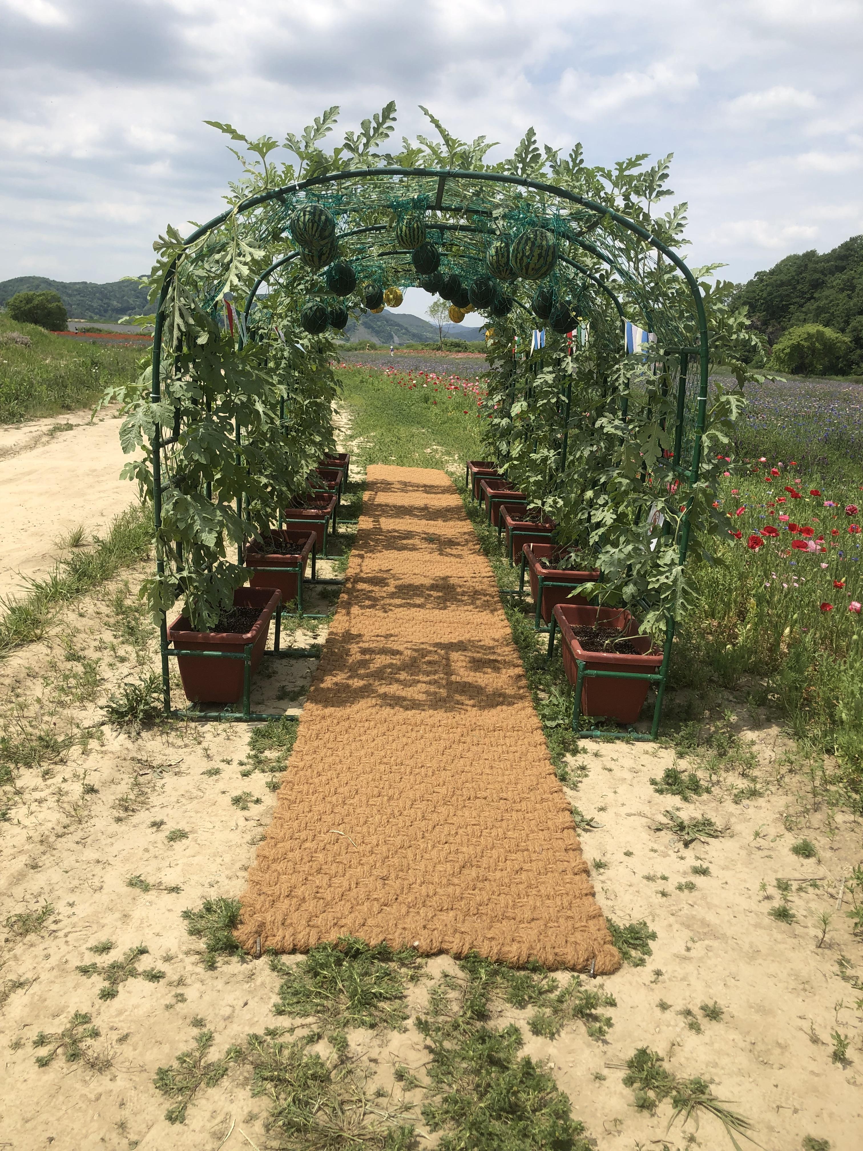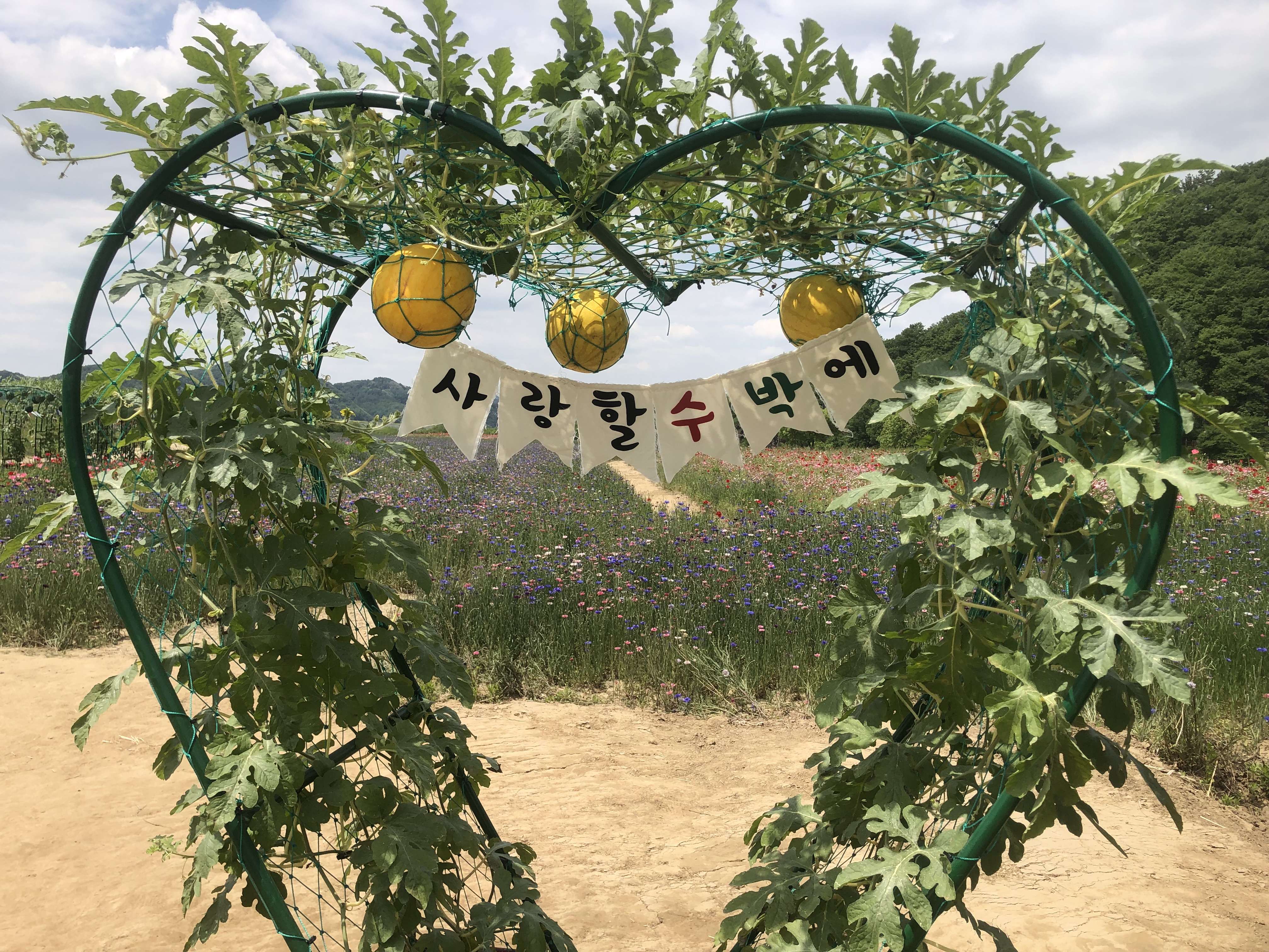 주차장에 차를 대고 화원 쪽으로 향하니 수박이 인사를 한다.
