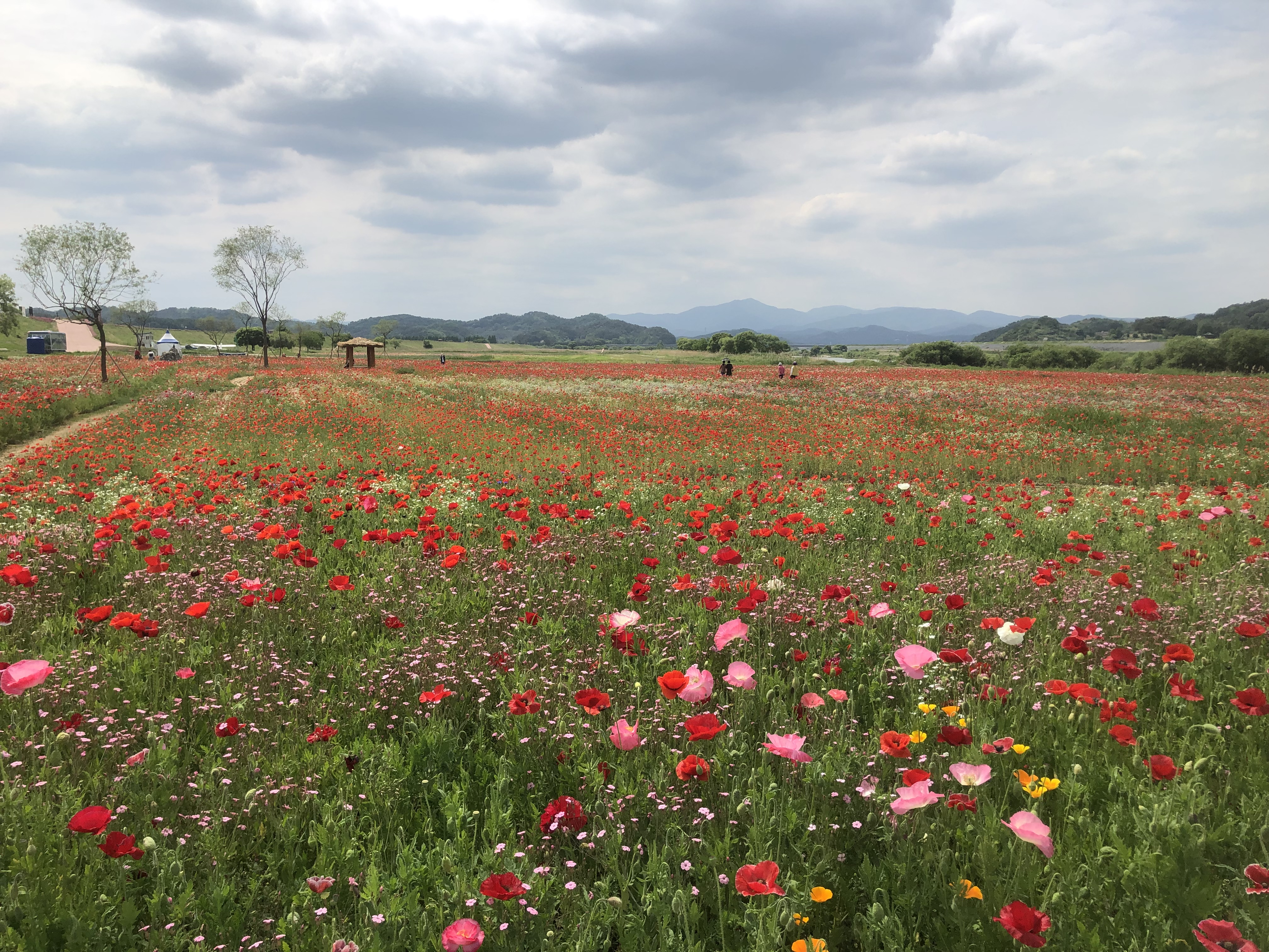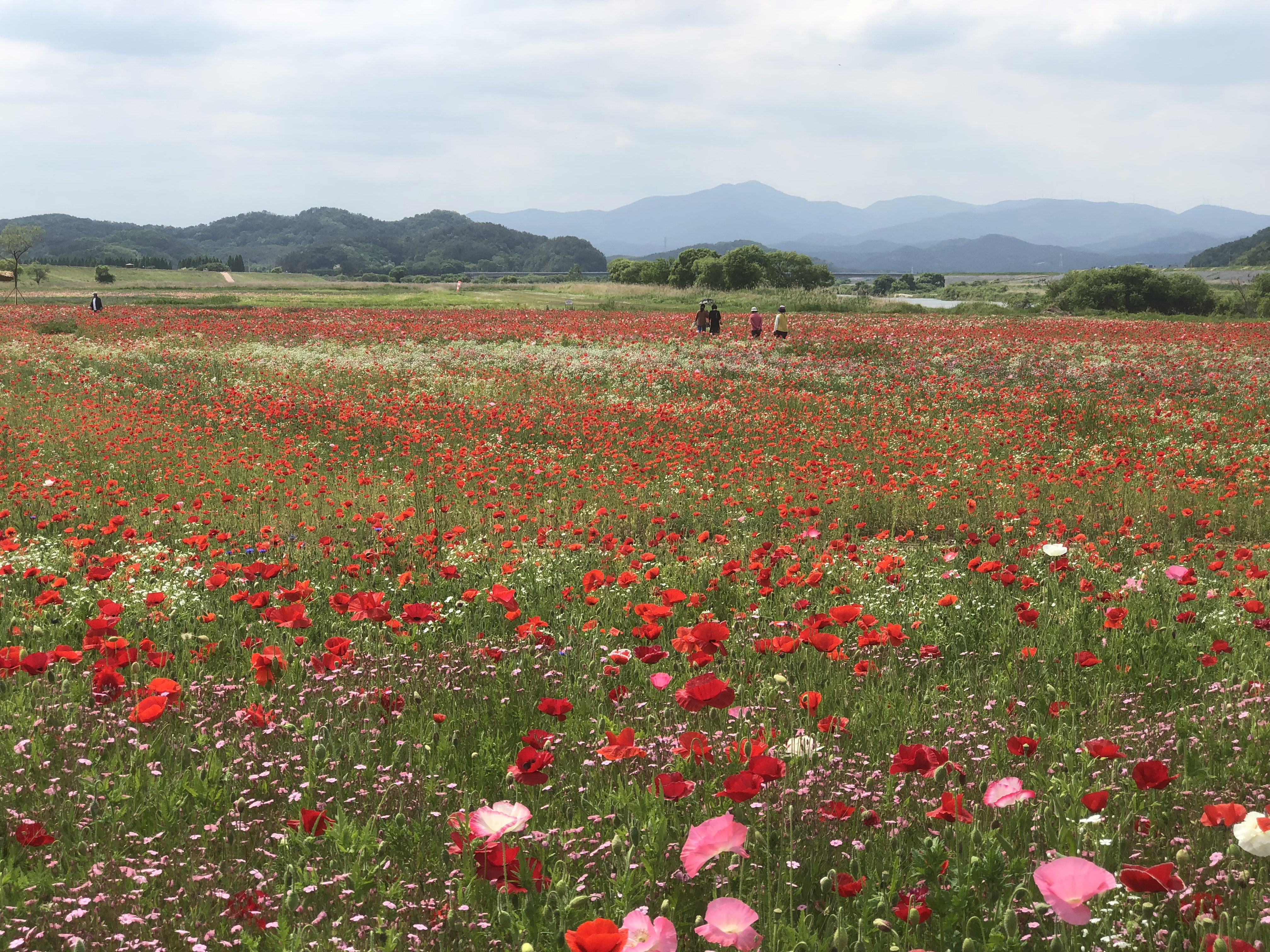 5월의 약양둑방 화원은 꽃양귀비가 대세다. 둑방너머 남강변 둔치 약 6km에 꽃양귀비가 지천이다.