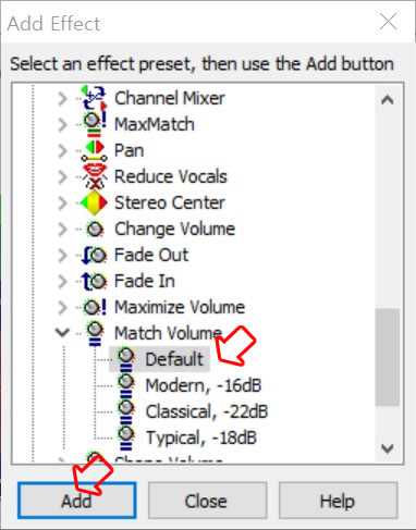 6) 아래 쪽으로 스크롤 막대를 움직여 [Match Volume]을 클릭하여 그 중에서 [Default]를 선택한다.