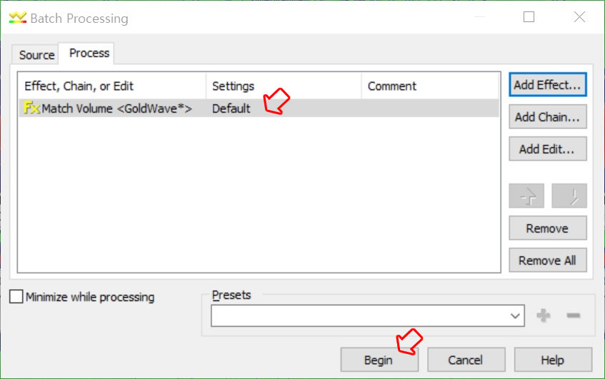 아래 쪽에 있는 [Begin] 버튼을 누르면 처리 작업을 시작한다.