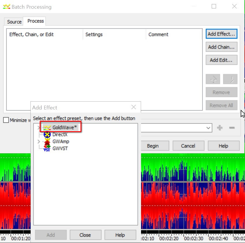 5) [Add Effect] 창에서 [Goldwave]를 선택한다.