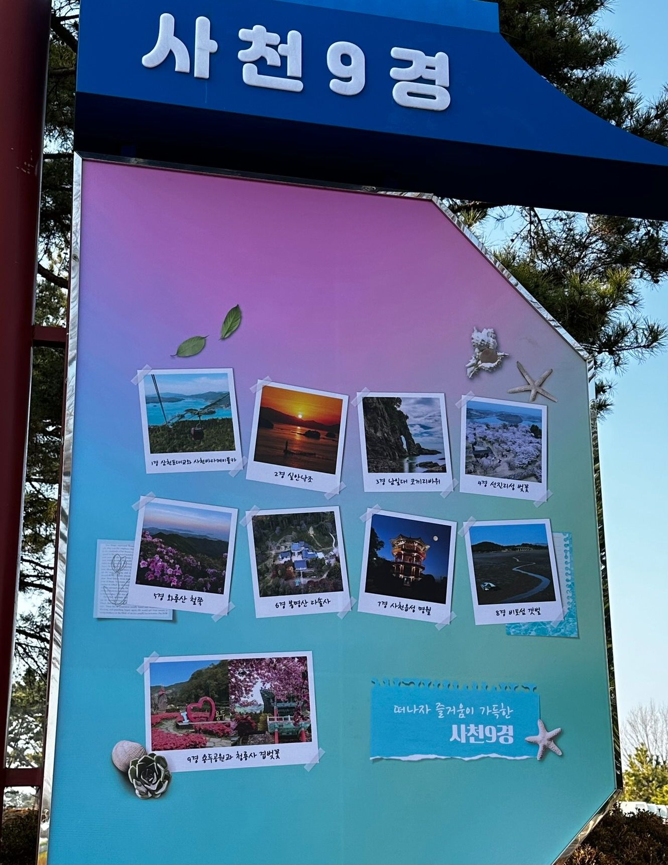 사천 9경 안내판도 있다. 1경이 삼천포대교와 사천 케이블카, 이곳이 오늘 여행의 최종 목적지이다.