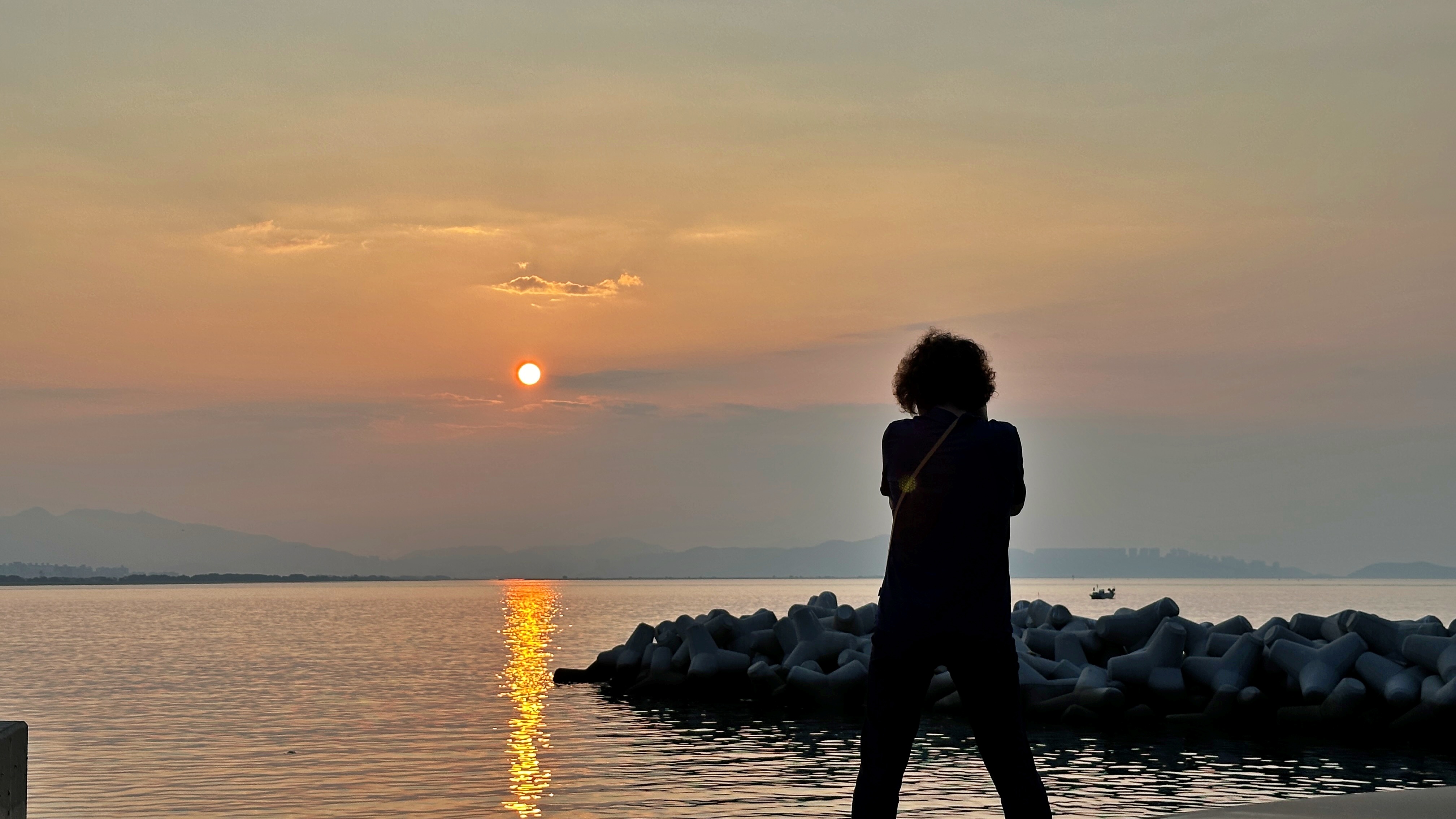 오전 6시에 나섰지만 이미 해는 중천에 떠 있다. 해 뜨는 방향도 겨울과는 다르다. 겨울에는 다대포 끝자락보다 오른쪽이었는데, 지금 8월 초순은 부산 송도, 영도 방향이다.