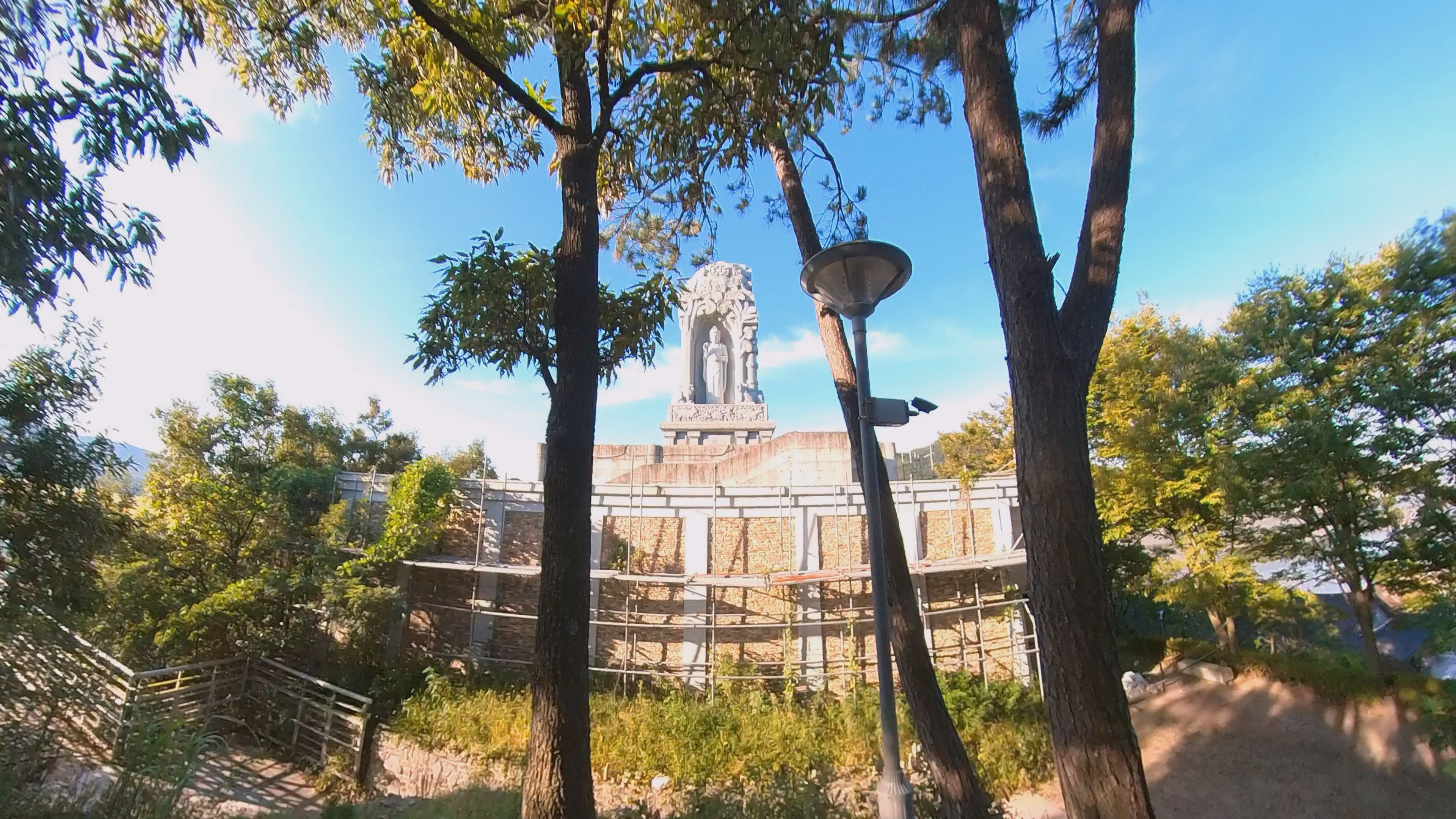 마라난타사. 백제에 불교를 전해준 인도 승려 마라난타를 기려서 세운 절인지 탑인지 모를 건물이다. 이름을 '마라난타사(寺)'라고 붙여놓은 걸보니 절인가 보다. 그런데 공사가 마무리 안되었다. 외벽을 둘러싸고 있는 비계의 모습으로 봐서 중단된지 적어도 1년 이상은 되어 보였다. 이 건물을 제외한 나머지 시설들이 완공이 되어 개방되고 있고 여기만 덜 되었다. '화룡점정'에서 점이 빠진 모양새다. 들어간 예산을 생각해보면 문외한 내가 봐도 1%만 더 들이면 완공될 것 같은데, 참 안타까운 모습이다.