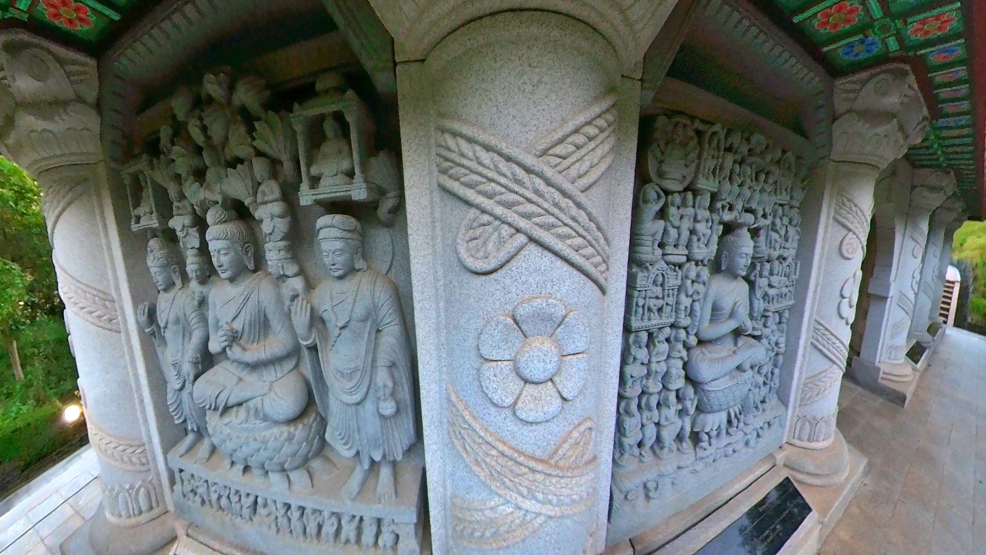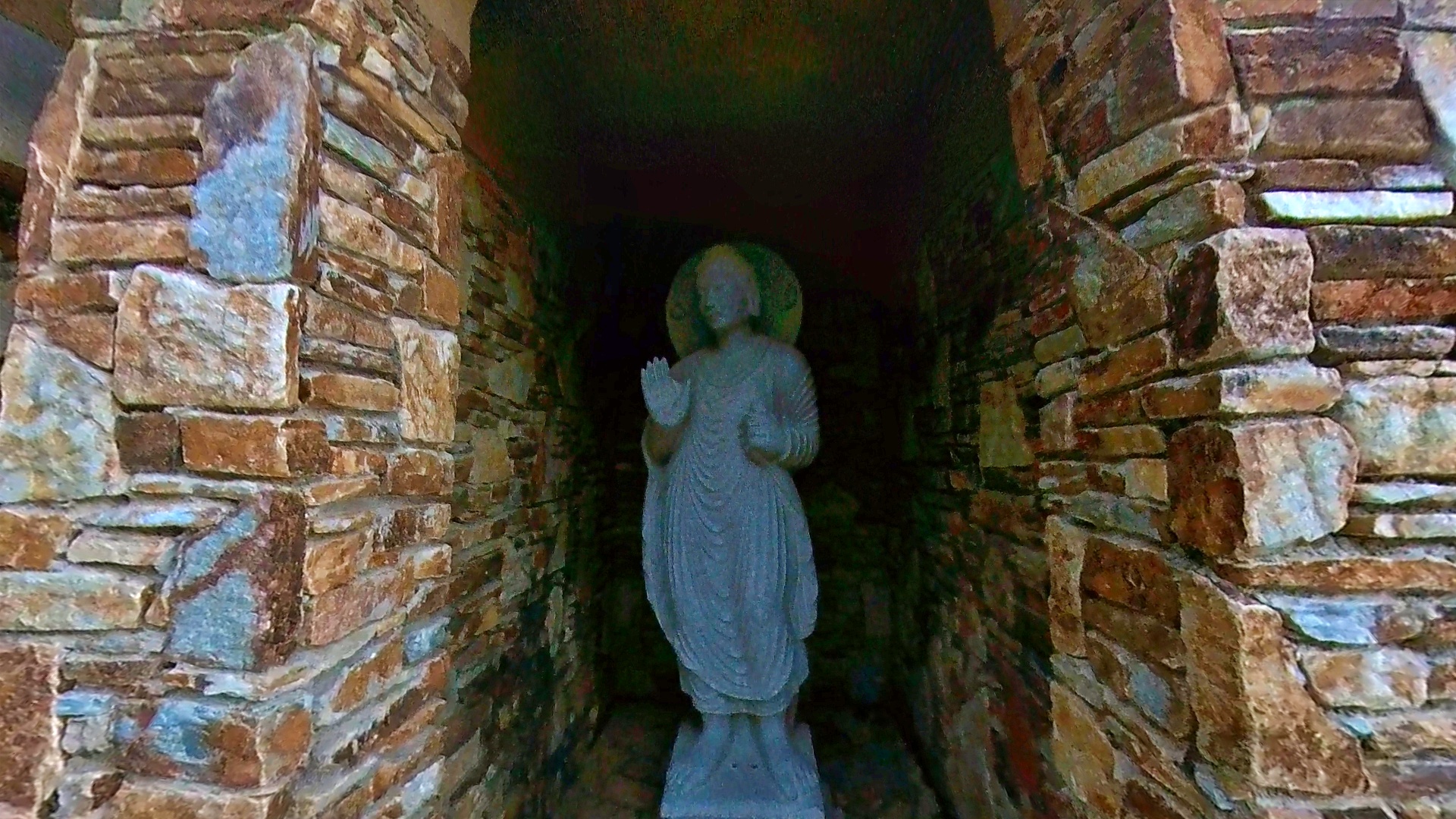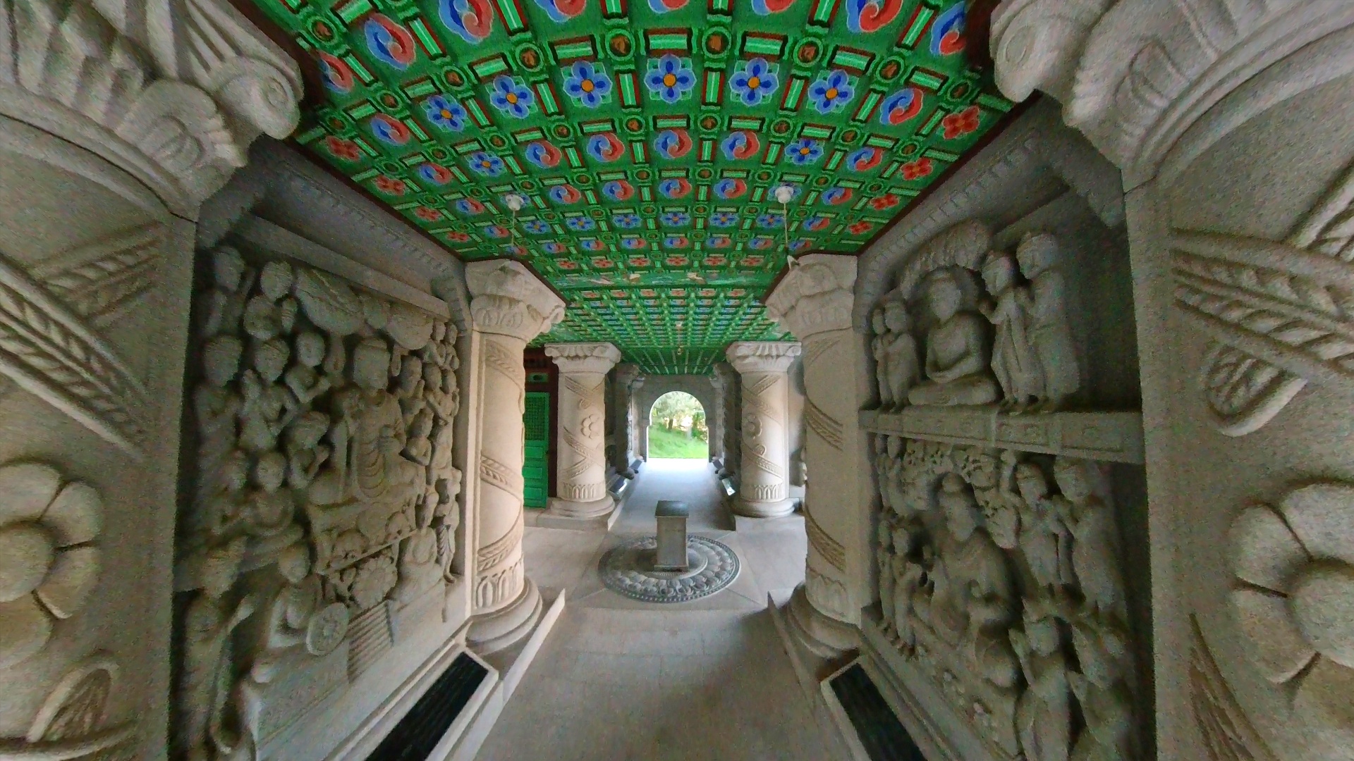 부용루 내부 한가운데에서 찍은 360도 사진부처님 반신상과 부용루탑원. 불상과 소탑을 봉안한 감실로 구성되어 있다.감실 안 불상. 간다라 풍이다.중앙 광장에서 본 부용루와 마라난타 사