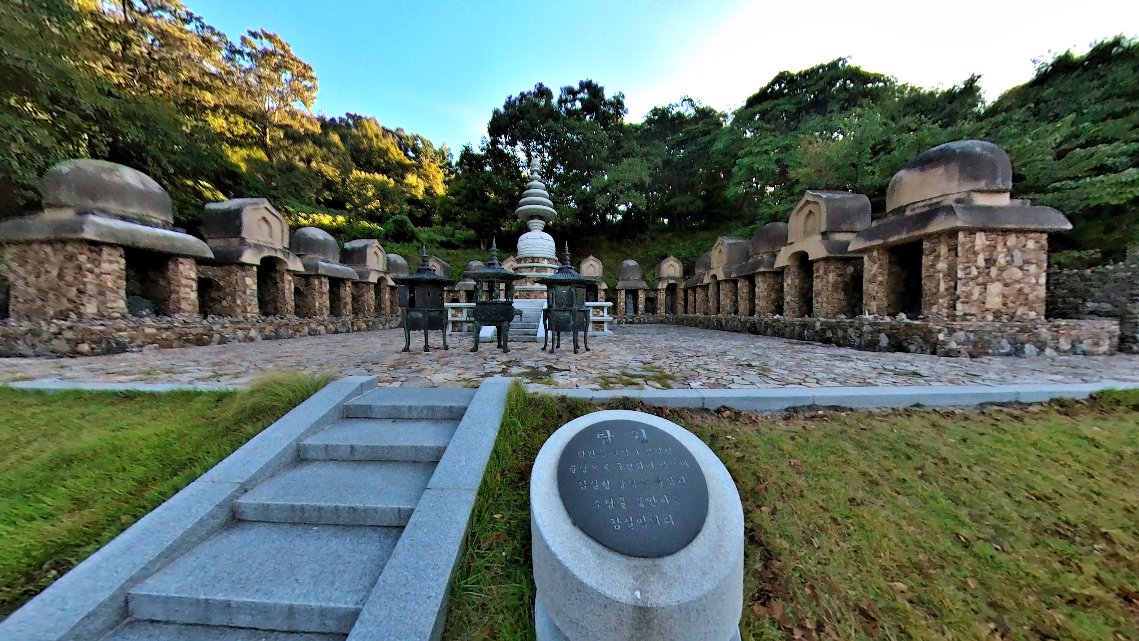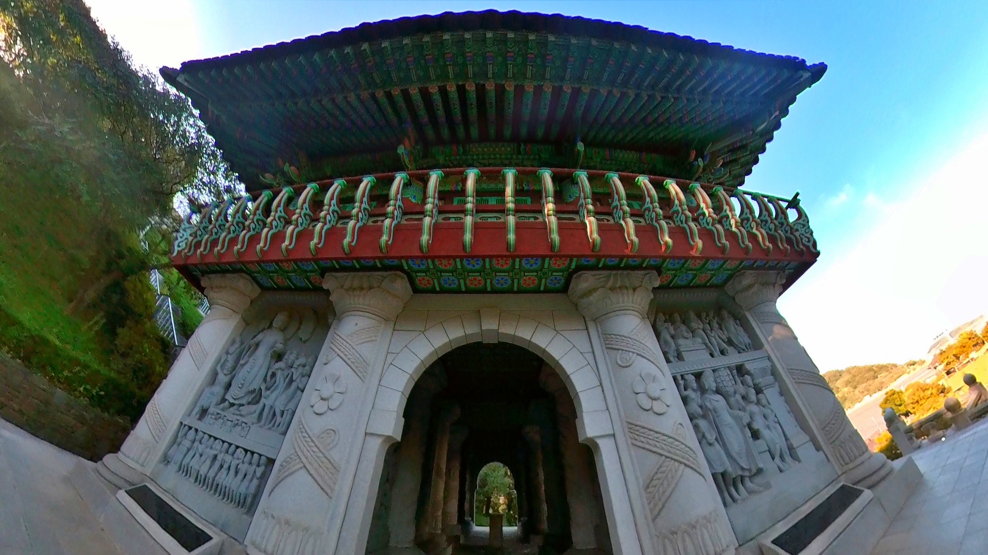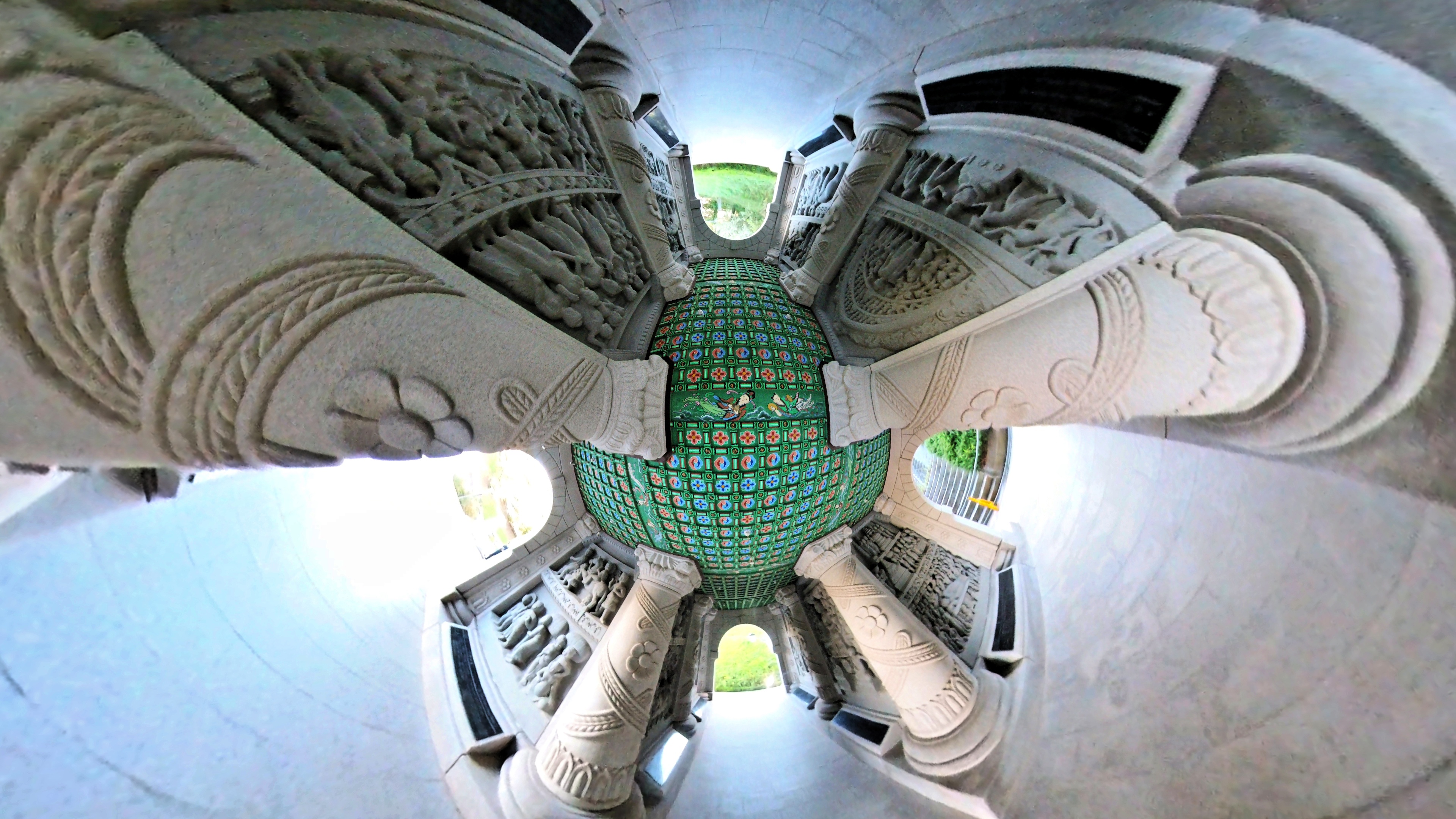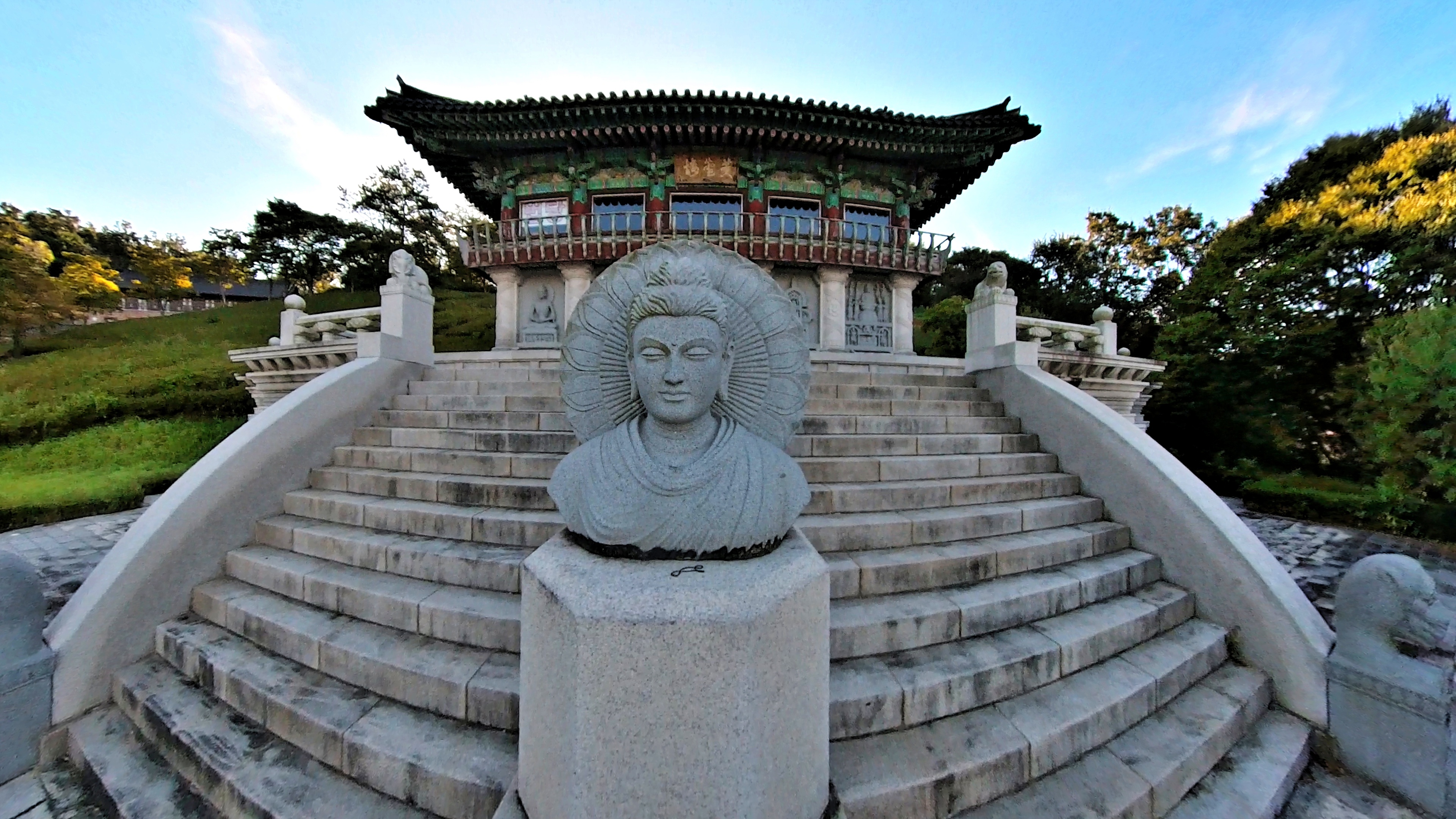 부용루 내부 한가운데에서 찍은 360도 사진부처님 반신상과 부용루탑원. 불상과 소탑을 봉안한 감실로 구성되어 있다.감실 안 불상. 간다라 풍이다.중앙 광장에서 본 부용루와 마라난타 사