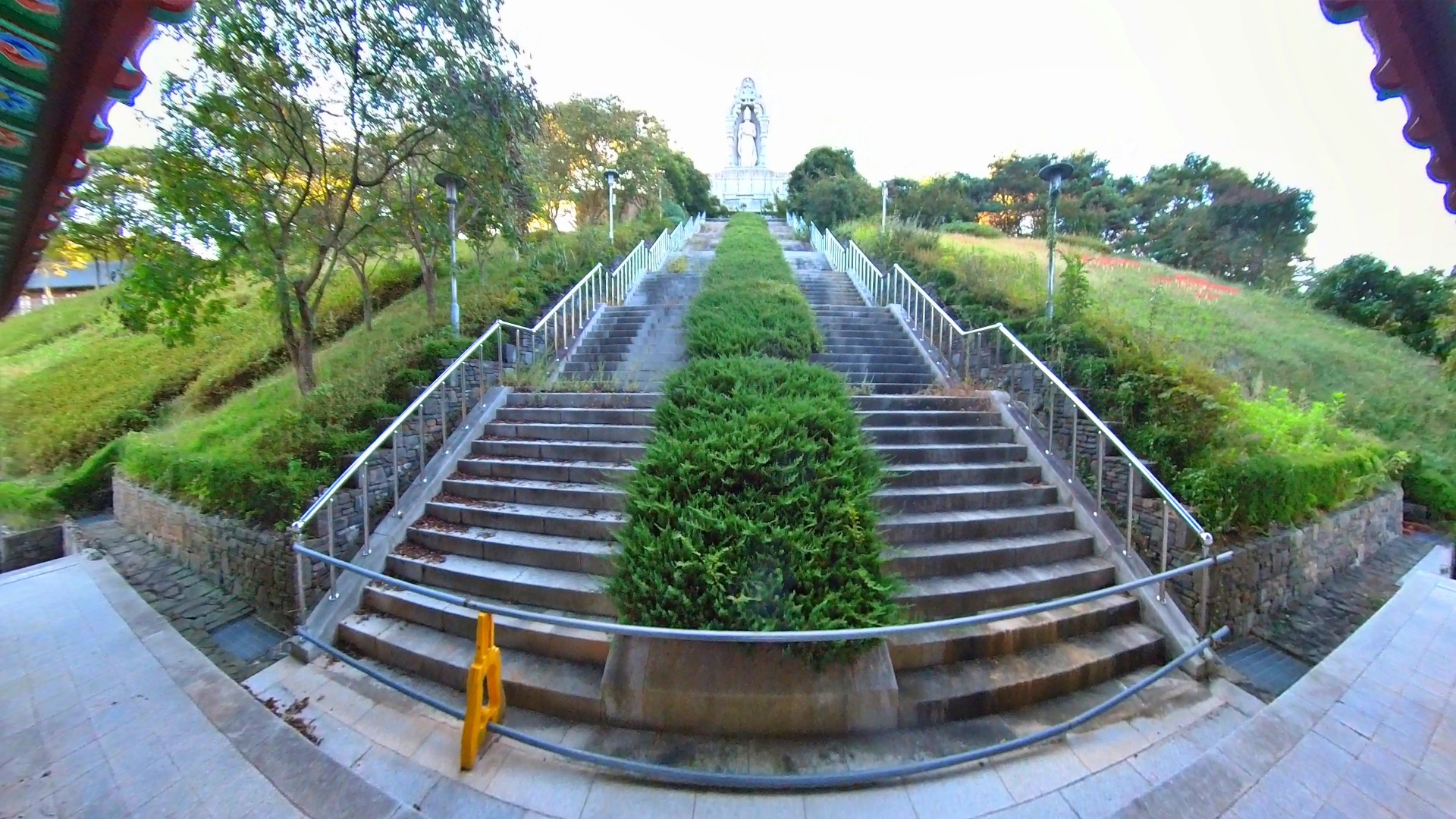 꼭대기에 우뜩하니 서 있는 아라난타사. 그 아래쪽 부용루에서 올라가는 계단은 막혀 있다. 마라난타사의 공사가 덜 끝난 탓인가보다.