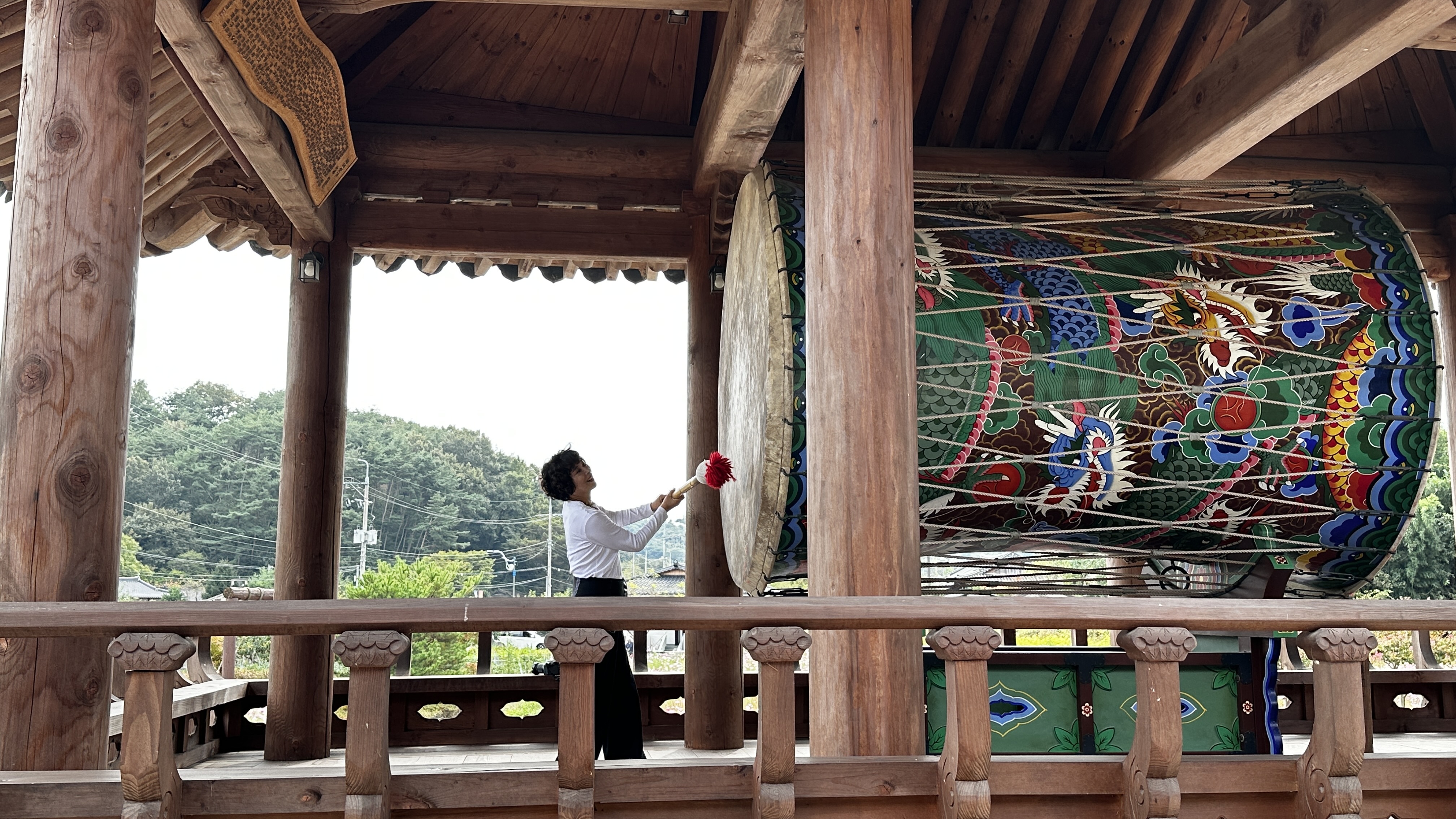 큰 북을 울리면 태평성대가 오고 소원이 성취된단다. 그러기를 바라는 마음으로 누구나 힘껏 두드려본다. 두드린 이가 스스로 놀라는 웅장한 소리!