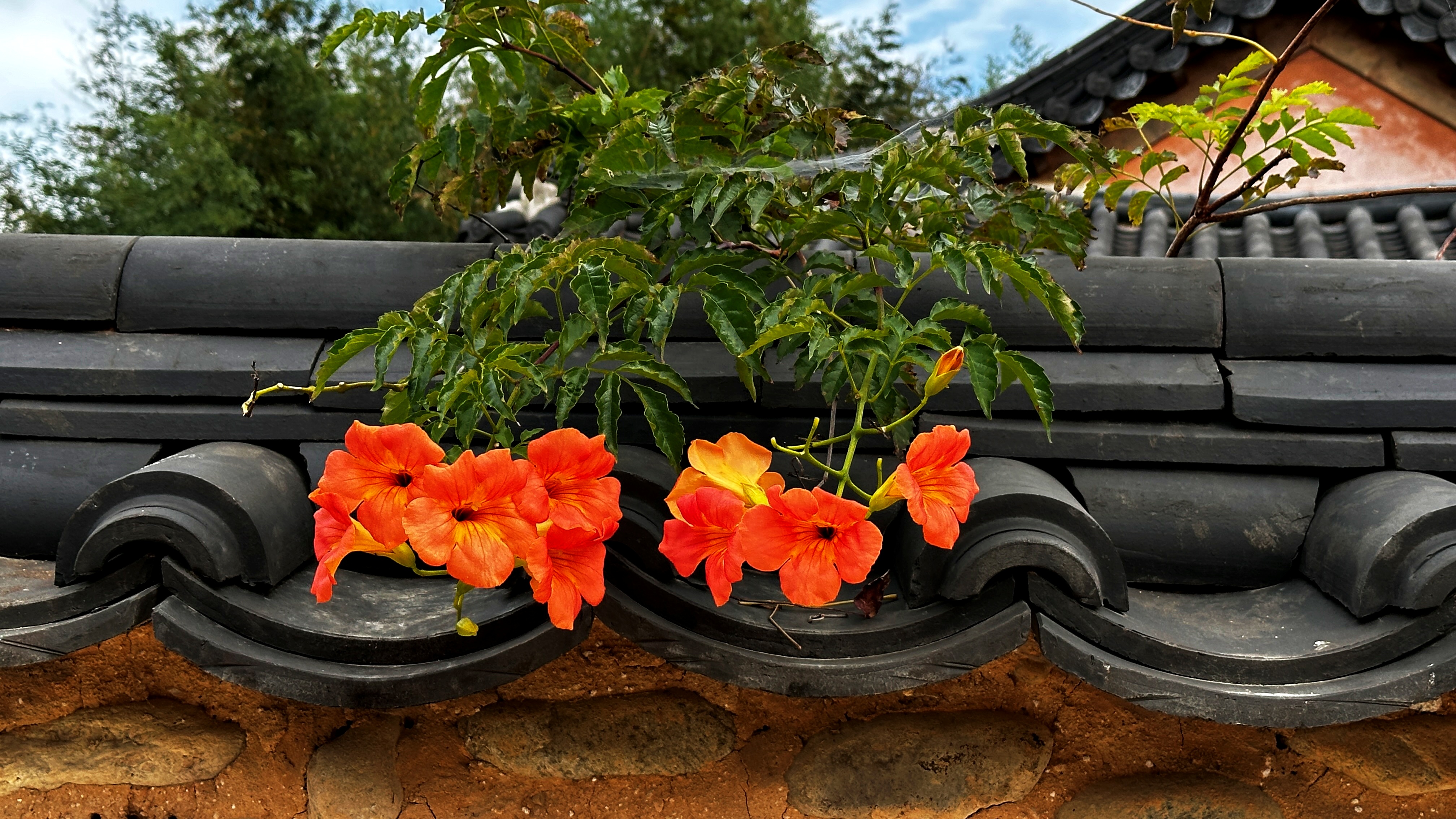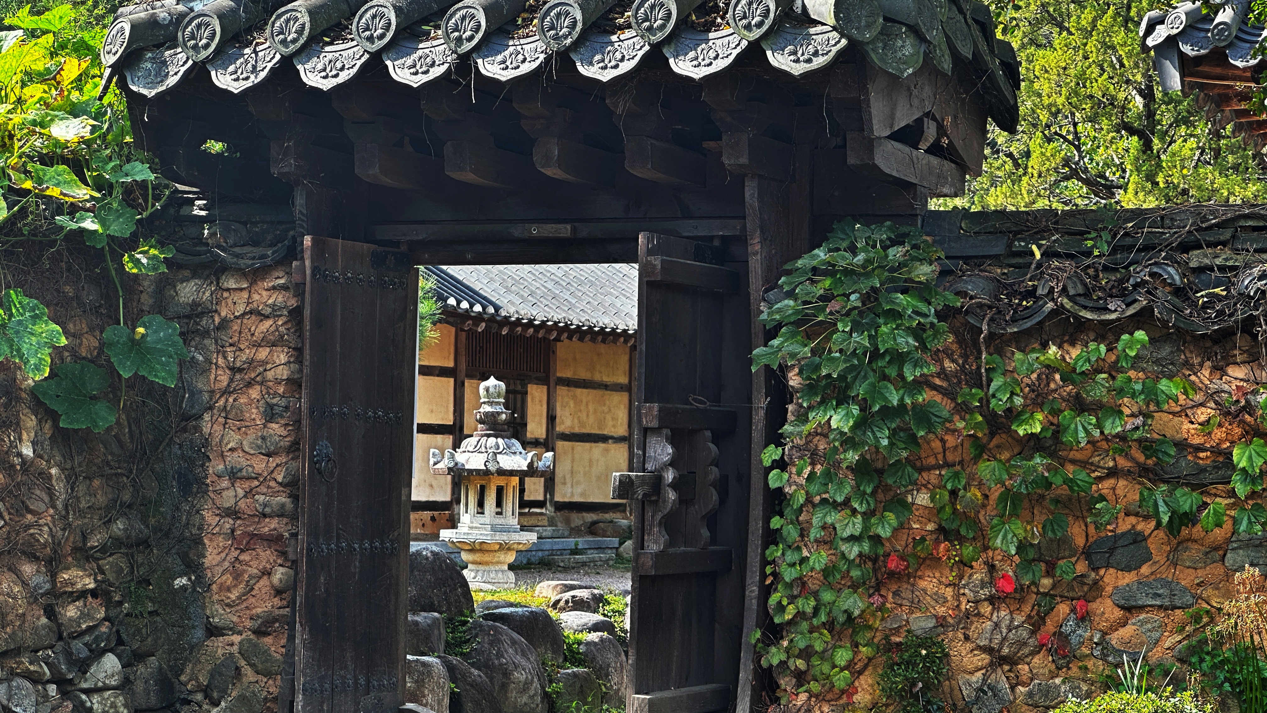 대문에 더부살이하고 있는 넝쿨들이 정겹다.
