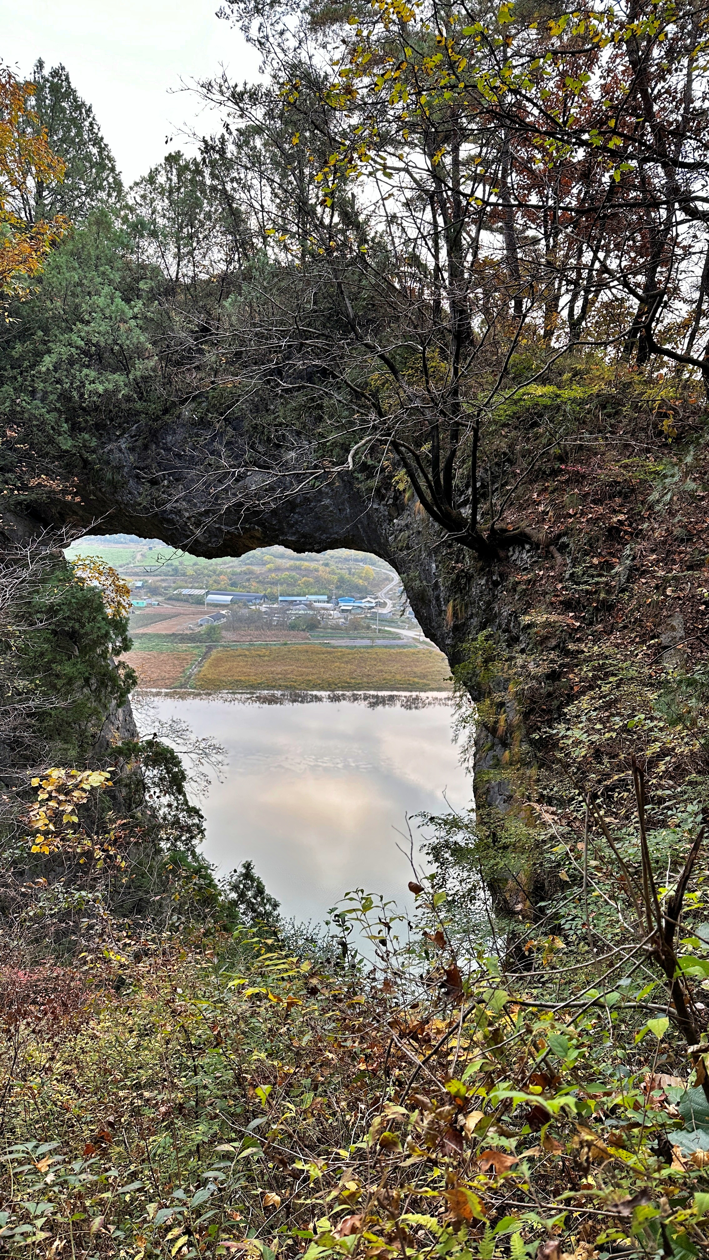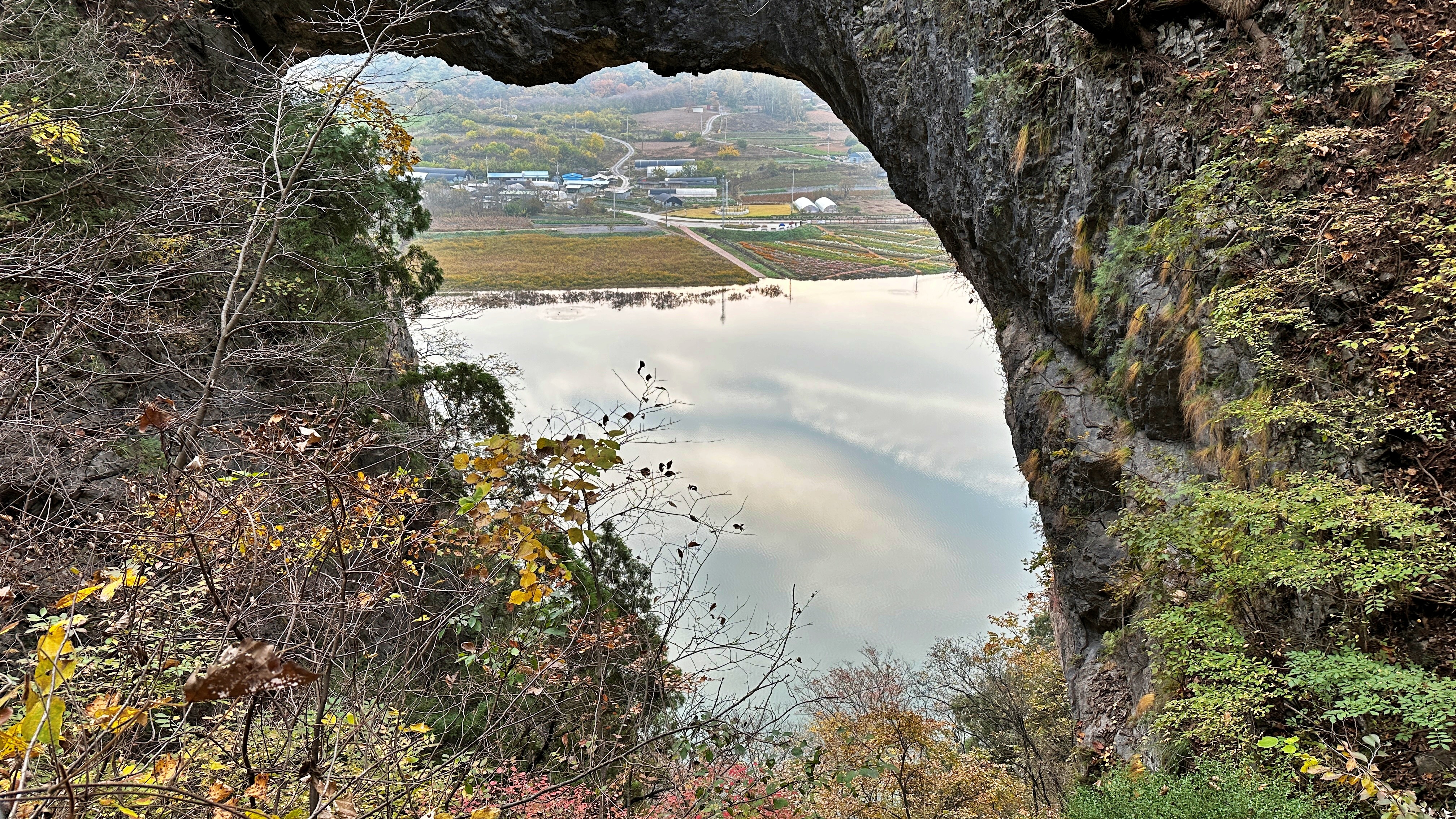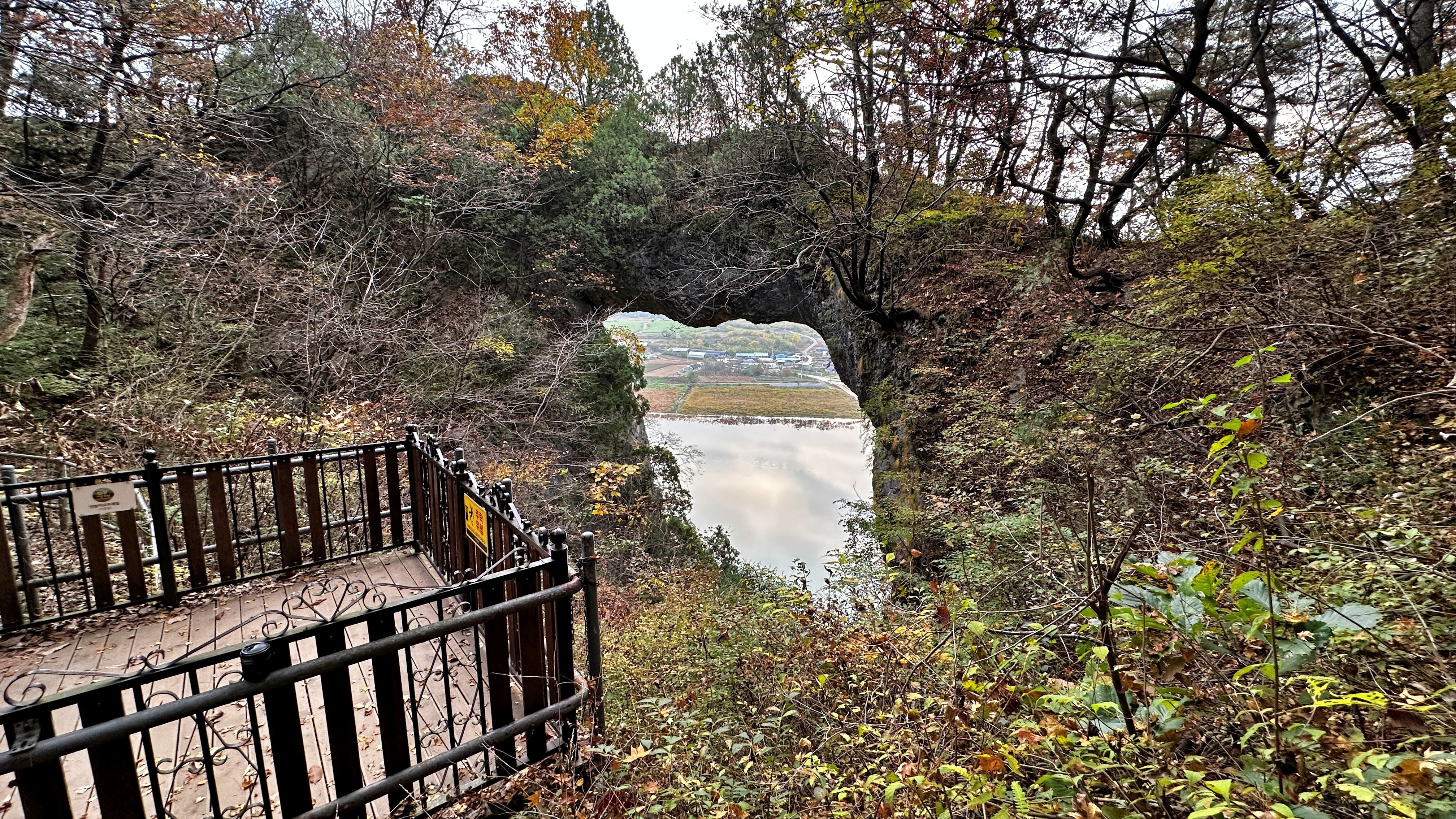 그런데 석문에 도착해보니 하늘이 보이지 않는다. 석문을 내려다볼 수 있도록 난간을 만들어두었는데 위에서 아래로 내려보게 해놓아 도저히 하늘을 담을 도리가 없다. 물에 비친 하늘로 아쉬움을 달랜다.