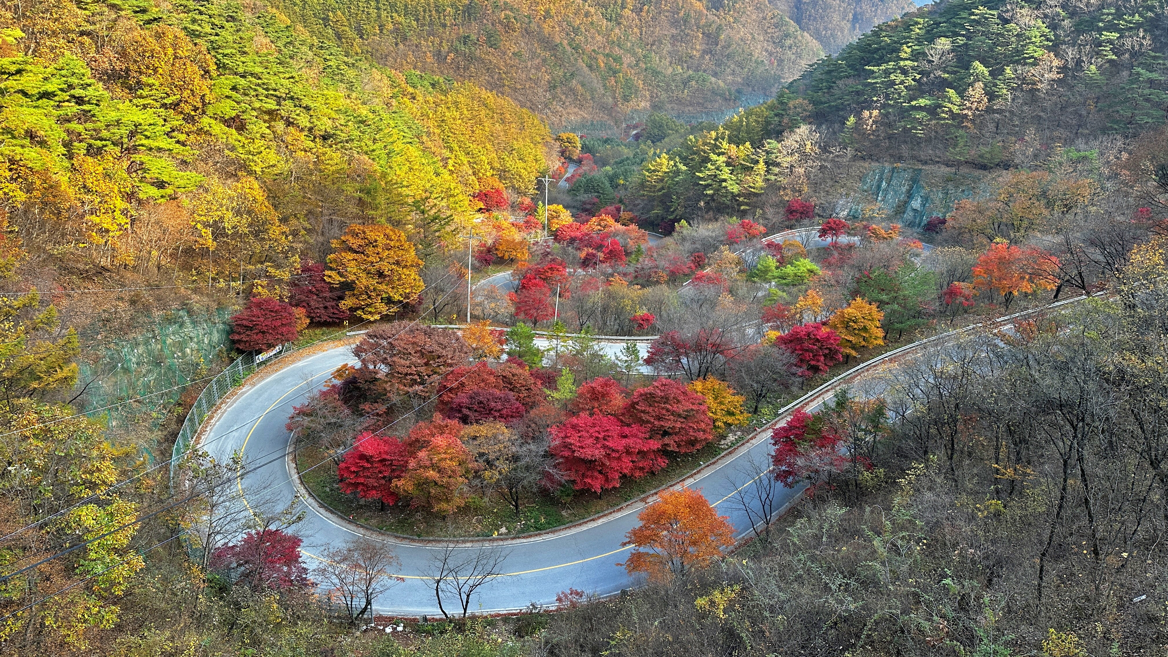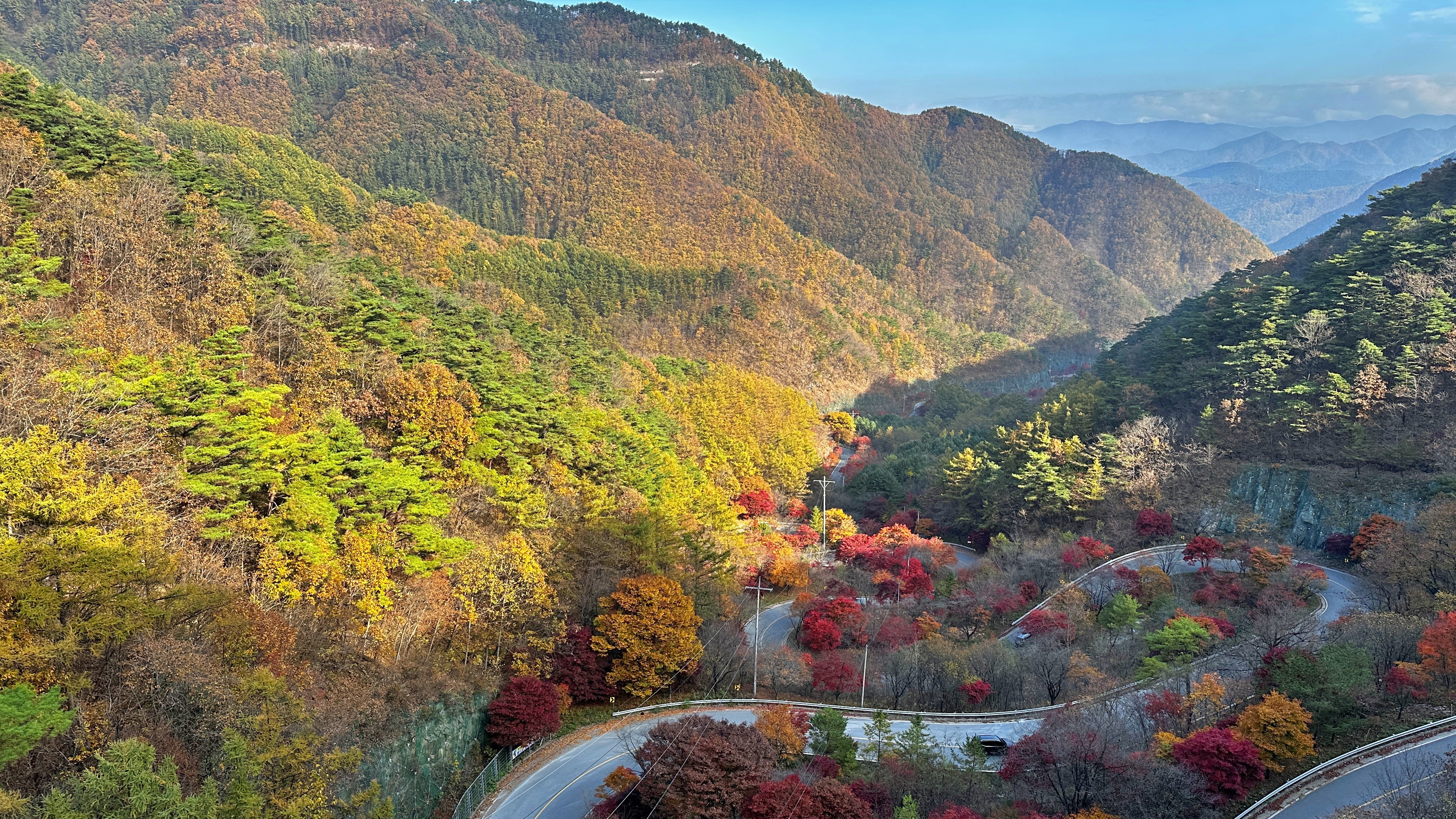보발재는 단양에서 구인사로 넘어가는 길에 있다. 고드너머재라고도 한다는데 어원이 궁금해서 찾아보니 곧오미재 > 고드미재 > 고드너머재로 바뀌어왔다는데 원 뜻은 신라군이 곧 온다는 의미란다. 이곳의 구인사 쪽 자락은 뱀이 또아리 튼 듯하다. 길가에 단풍나무를 일부러 심은 듯한데, 어쨋든 전망대에서 내려다보는 풍경은 말 그대로 절경이다.