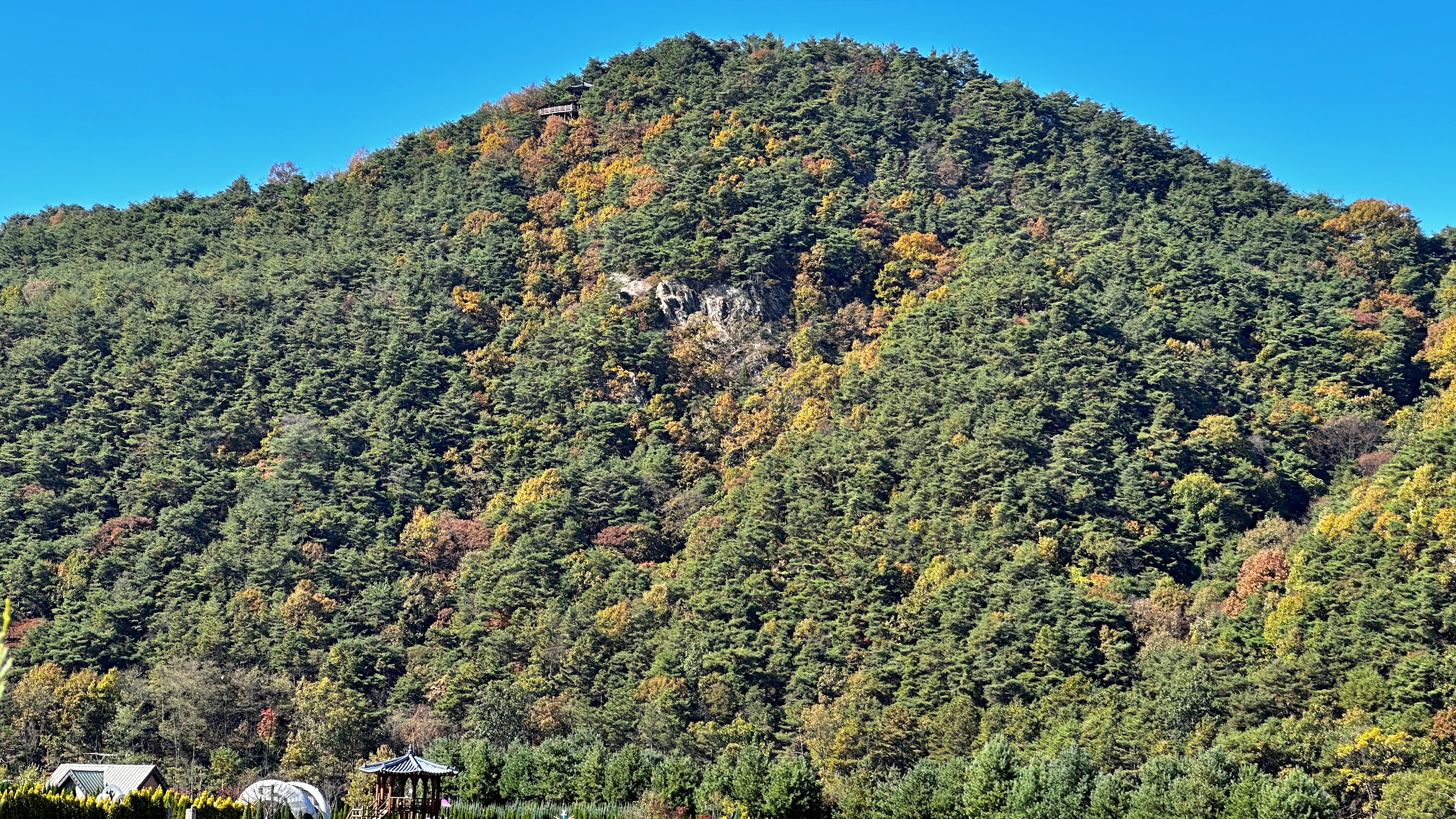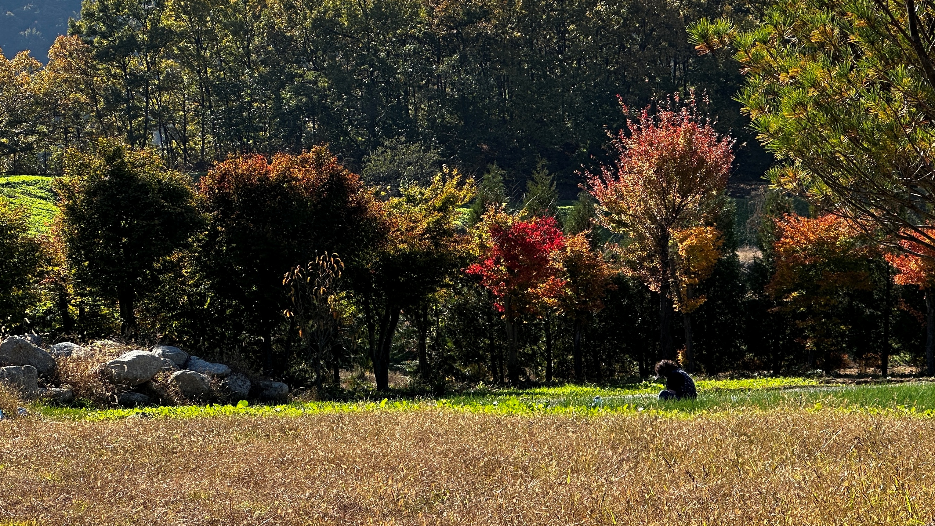 마늘밭을 가꾸고 있는 저 분은 바로 옆의 황홀한 단풍을 즐기면서 일을 하고 계실까?