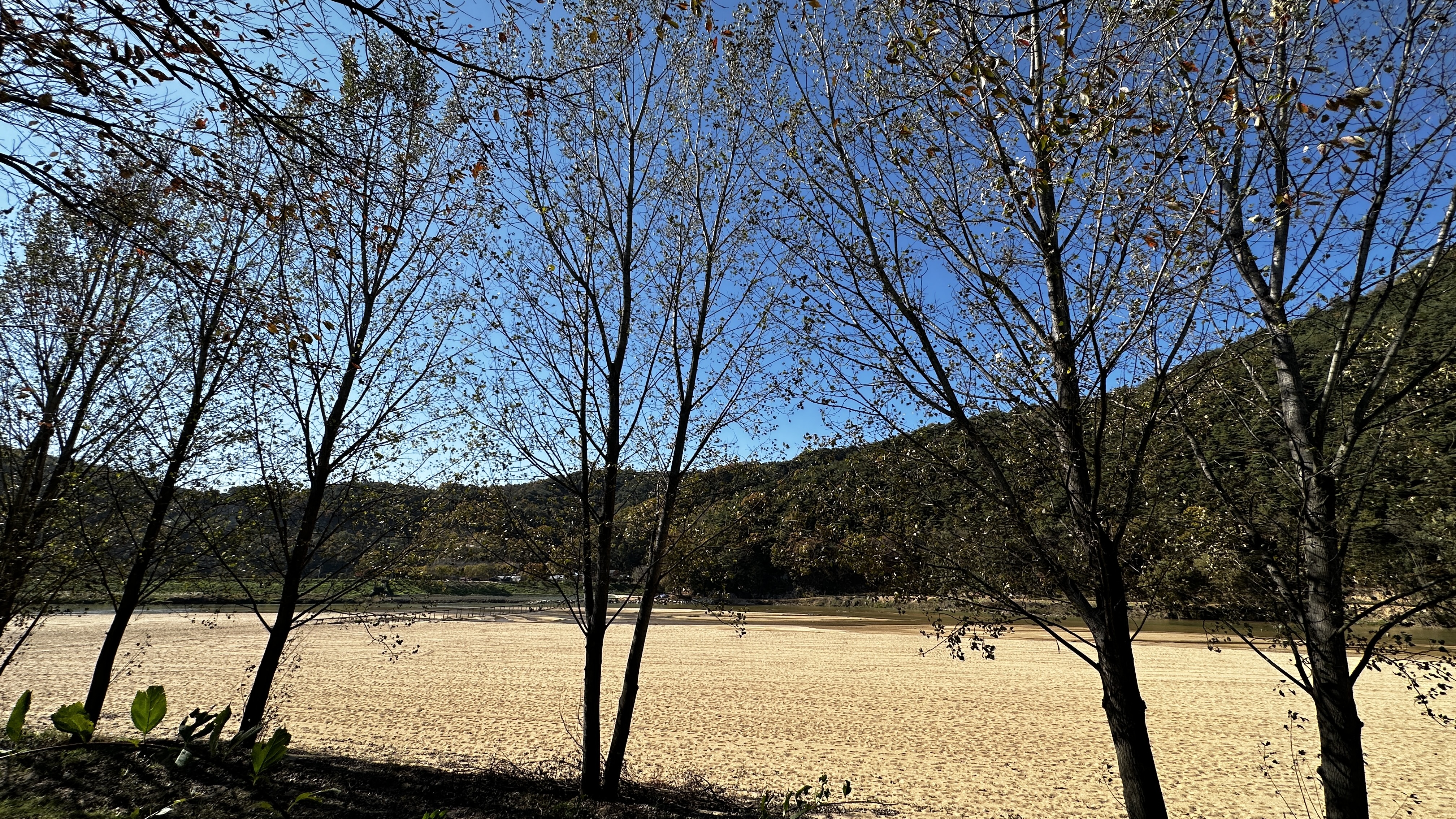 모래밭과 둑 사이에 미류나무가 몇 그루 있다. 미류나무는 시끄럽다. 미풍에도 잎들이 손뼉 치는 소리를 낸다. 그 소리가 곁에 있는 사람을 심심하지 않게 해준다.
