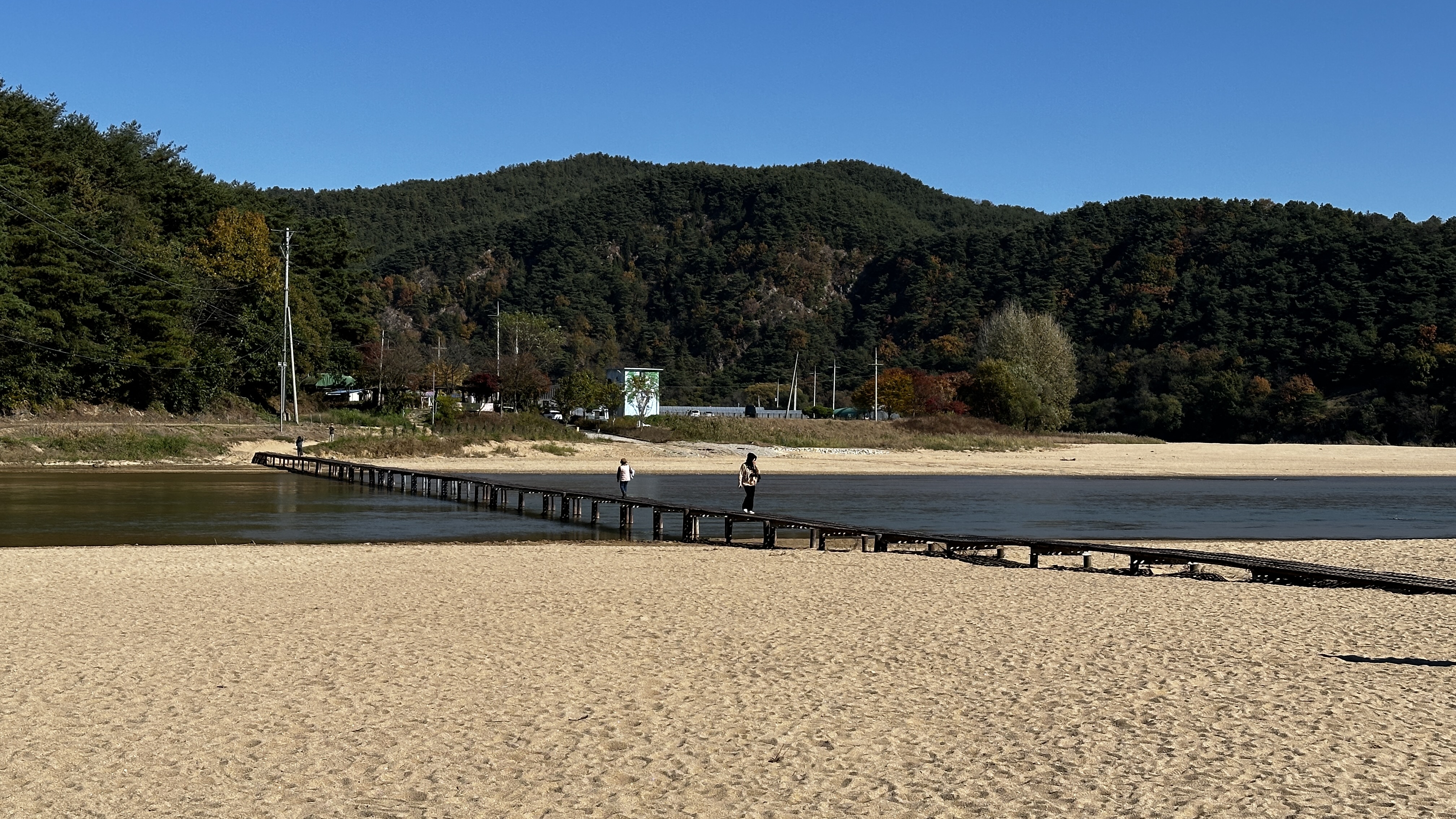 내성천 강물이 무척이나 깨끗하다. 그 물에서 송사리들이 천진난만하게 놀고 있다. 뿅뿅다리라 함은 둥근 구멍이 뿅뿅 난 철판을 이어붙여서 만들었다고 해서 이름 붙였다고 한다.