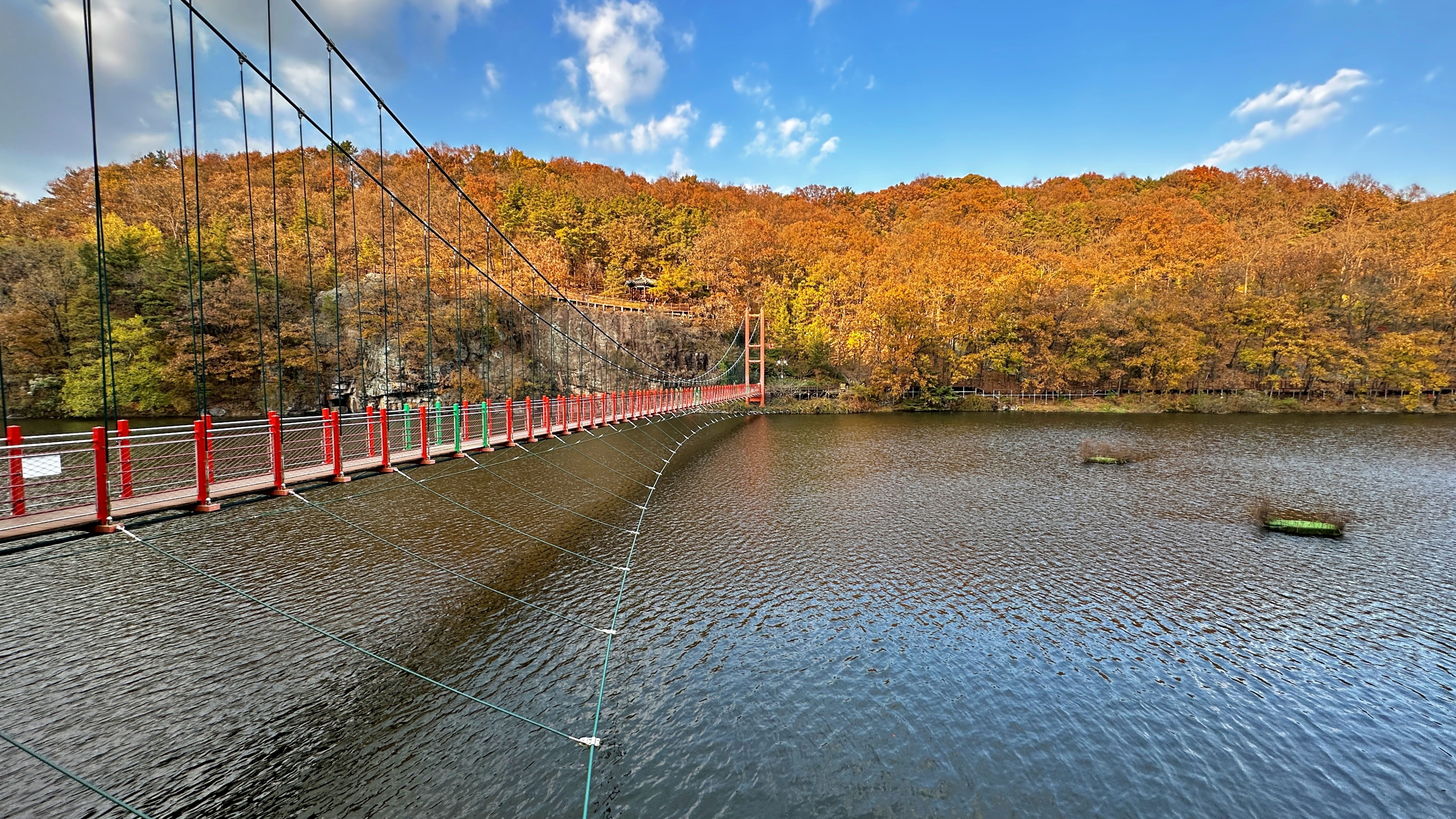 이곳의 명물인 출렁다리. 이 다리는 생긴 지 제법 오래됐다. 이후에 전국적으로 출렁다리 붐이 일어나 아주 흔하게 되었지만 이 다리 생길 당시는 희소 가치가 있어 많은 사람들이 일부러 찾아와 건너보기도 하던 곳이다.