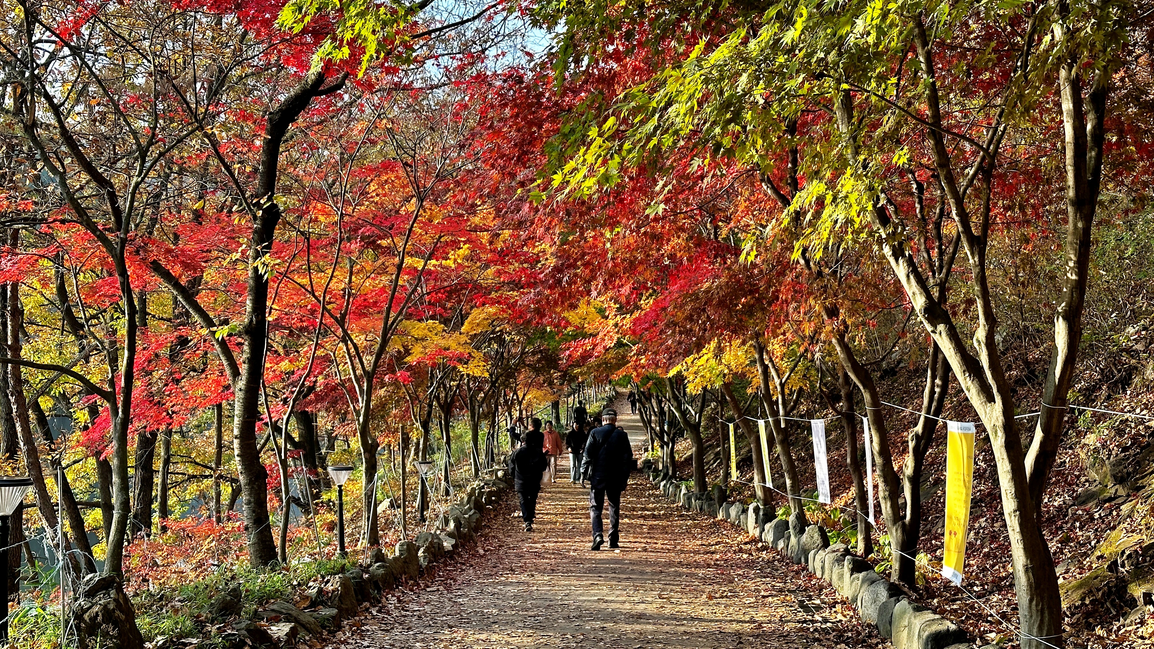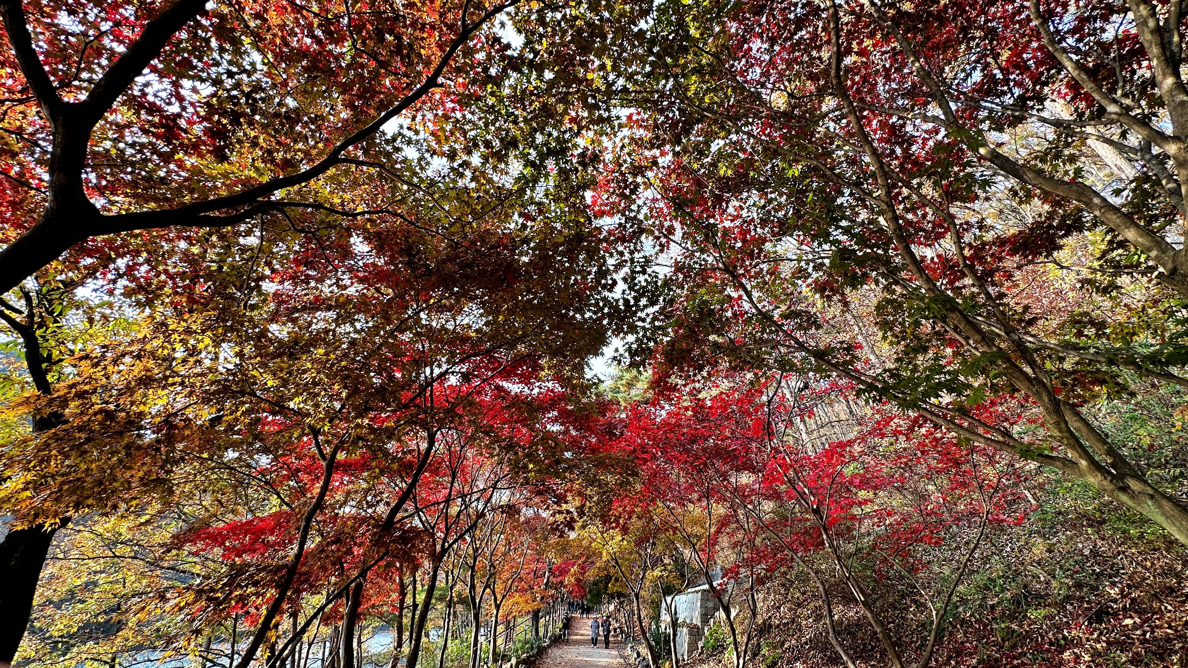 내 기억으로는 약 50미터 정도 단풍길이 조성되어 있었는데, 올해 가보니 출렁다리까지 단풍나무 터널이 만들어져 있었다.