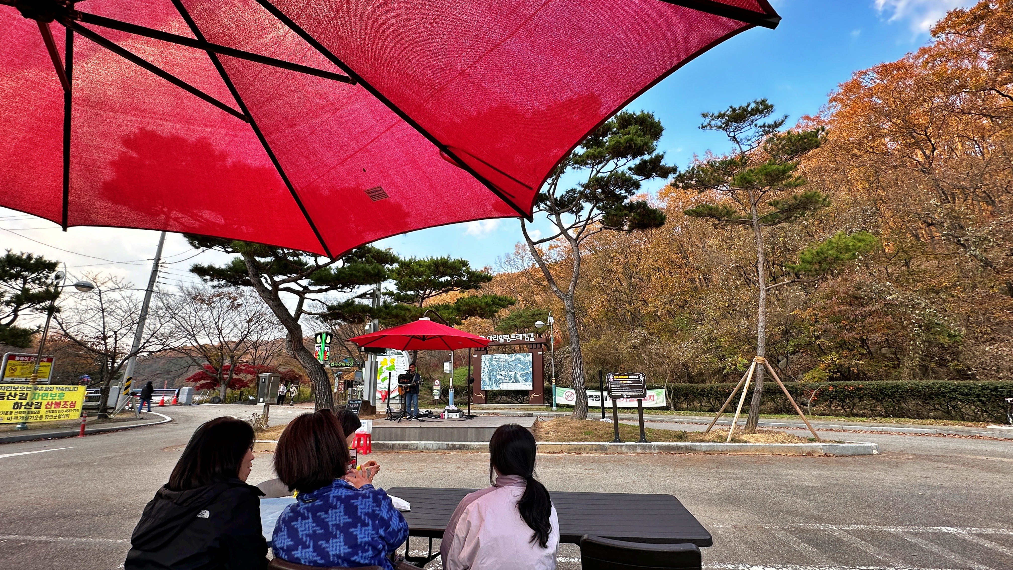 사진 속에는 관객이 몇 안되지만 이곳에 앉아서 밤이며 어묵을 사서 먹는 동안 제법 많은 사람들이 저 분의 노래를 즐겼다.