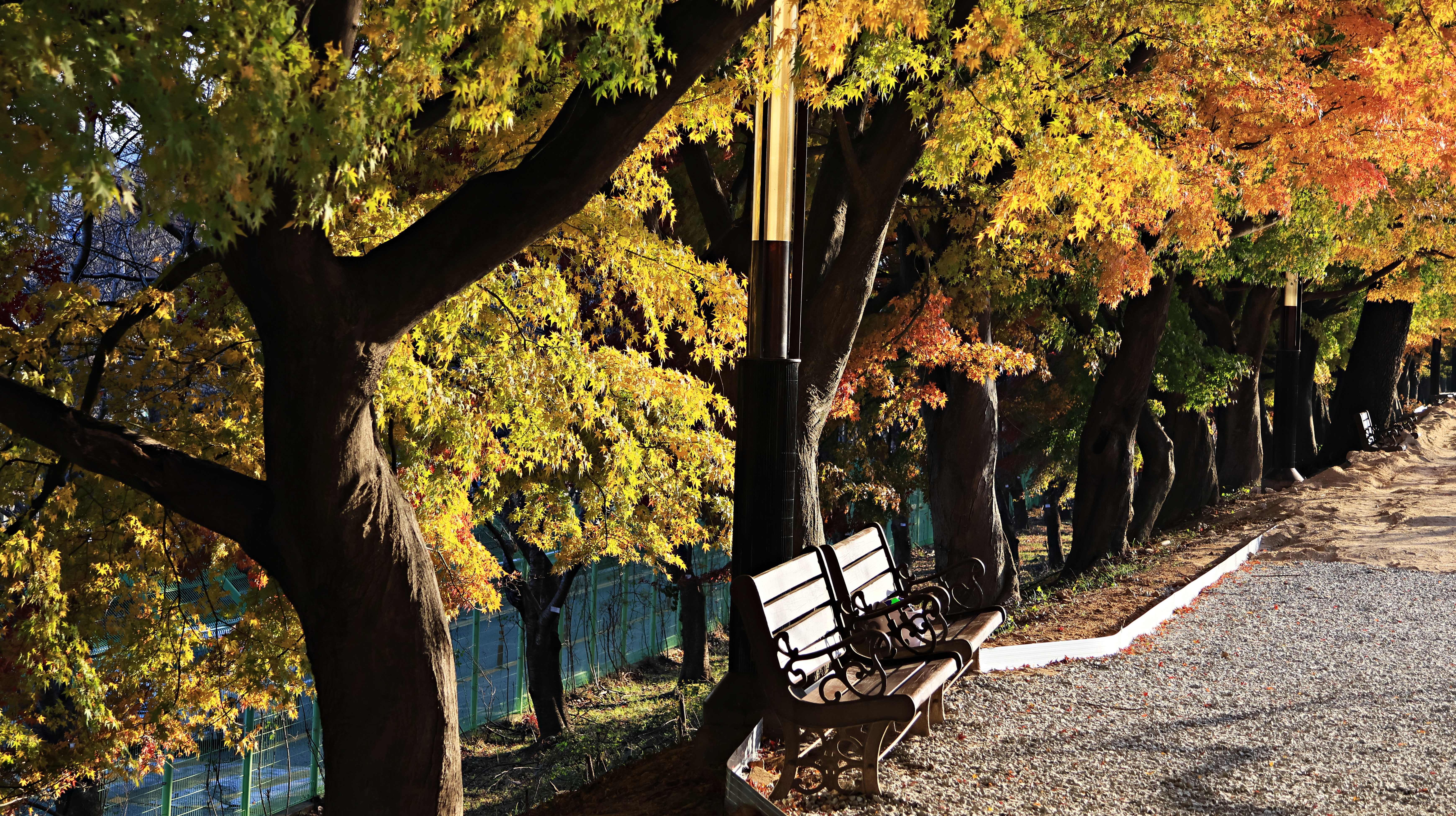 같은 장소를 이틀 건너 간다. 떨어지는 다홍 잎이 못내 아쉬워서다. 이번에는 아내도 동반했다.
