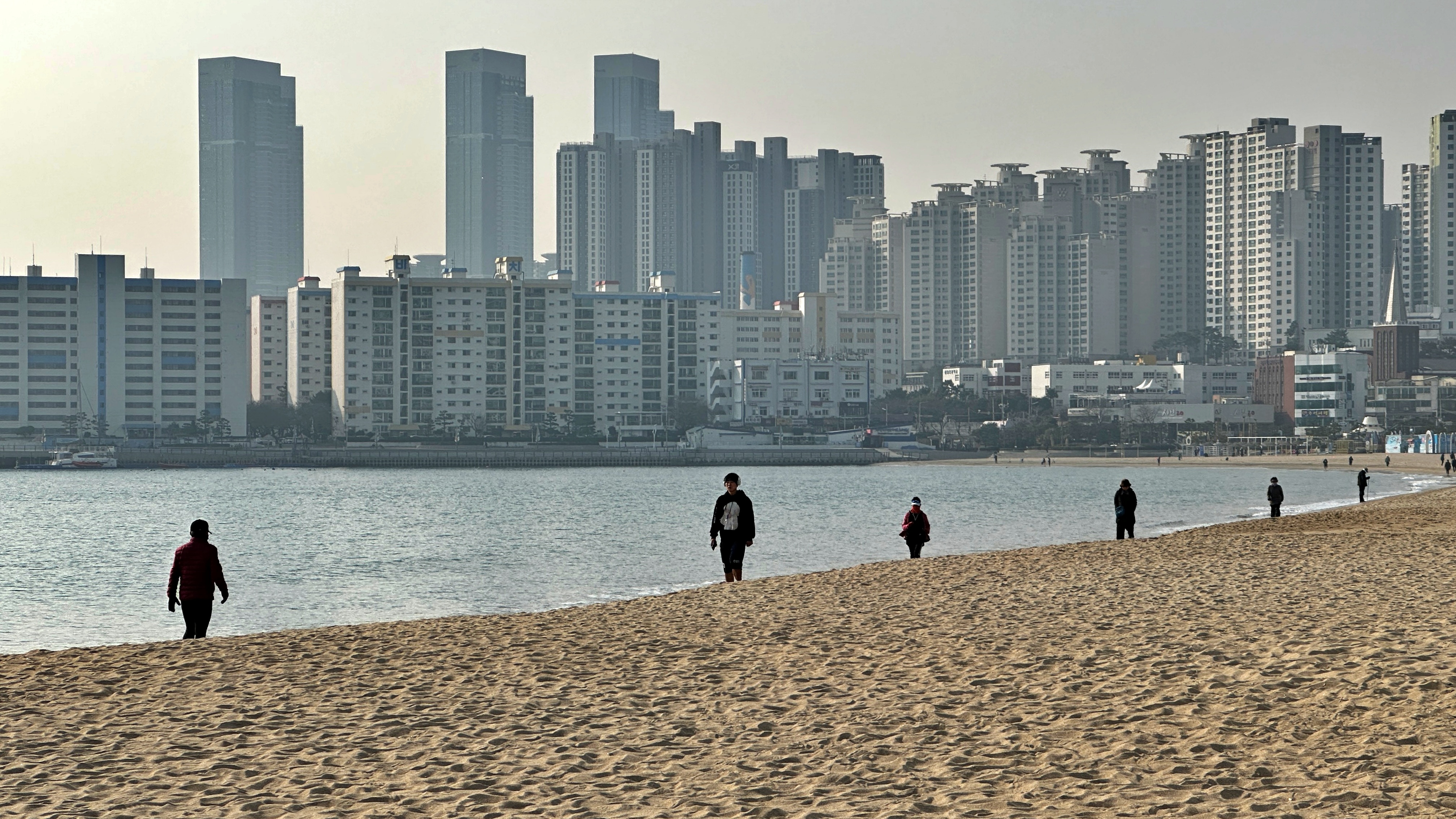 모래가 물기를 머금고 있는 바다물 언저리로 사람들이 맨발걷기를 하고 있다. 맨발걷기에 더 없이 좋은 환경인 것 같다. 하지만 기울어진 모래톱을 오래 걸으면 허리 쪽에 무리가 오지 않을까 염려스럽기도 하다.
