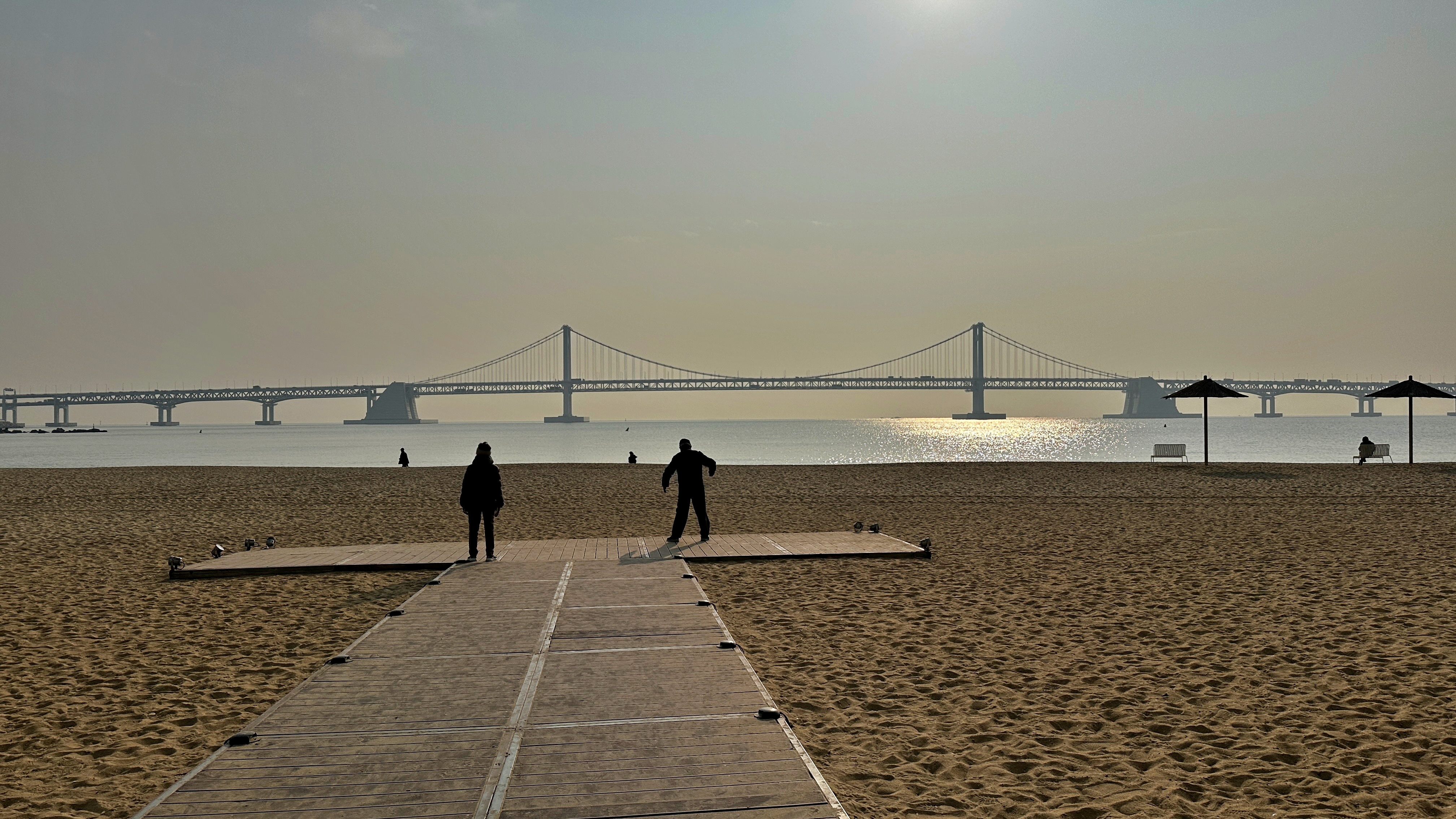 수리하는데 걸리는 시간이 2시간이라고 해서 500여미터 떨어져 있는 광안리 해수욕장으로 가본다.