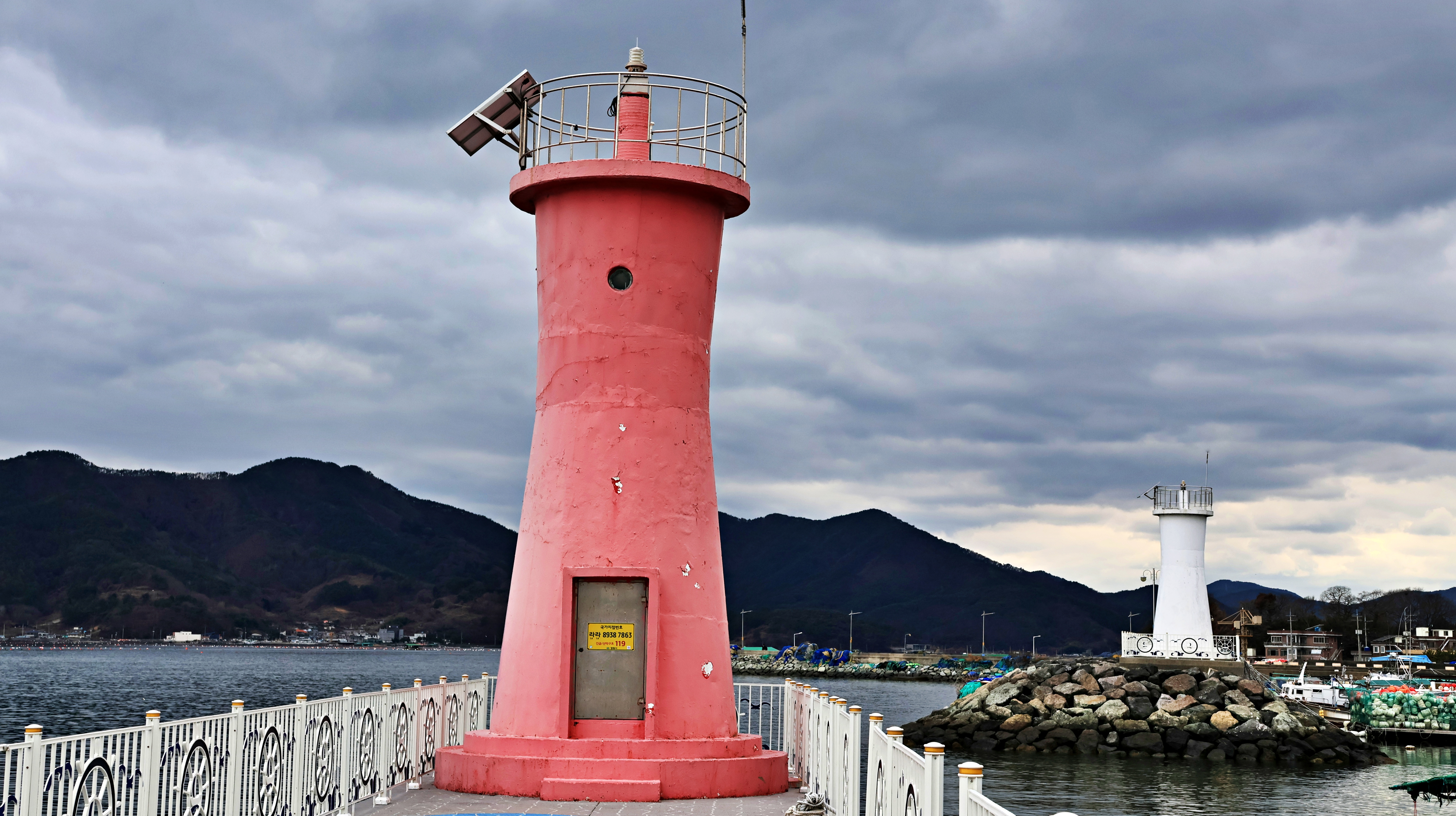 마을 입구 바다를 막고 있는 방파제 양끝에는 빨강, 하양 등대가 있어 이색적이다.